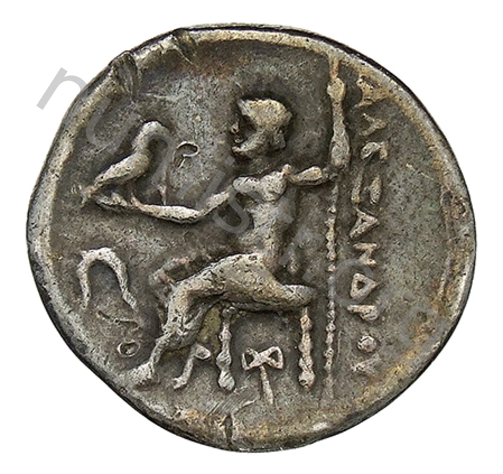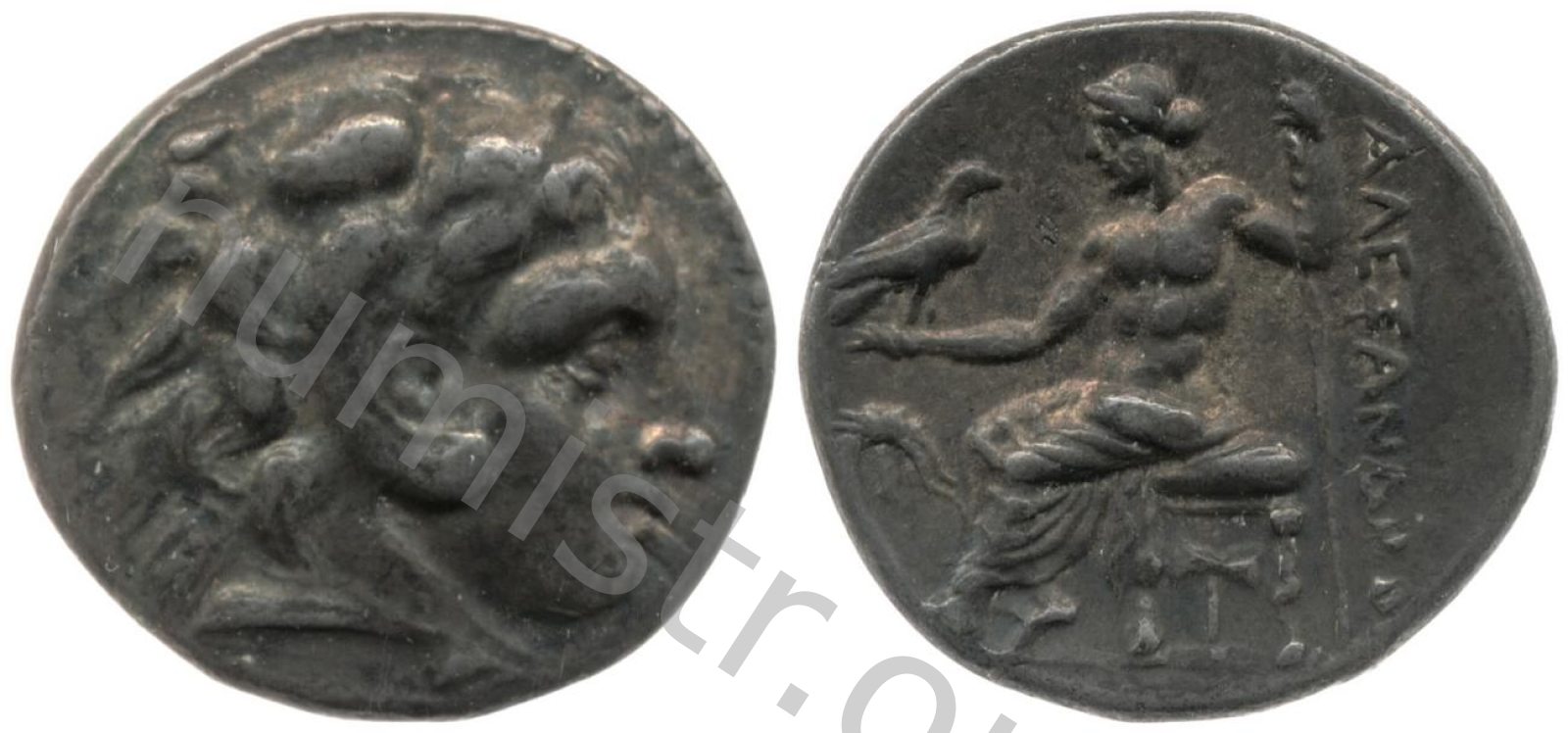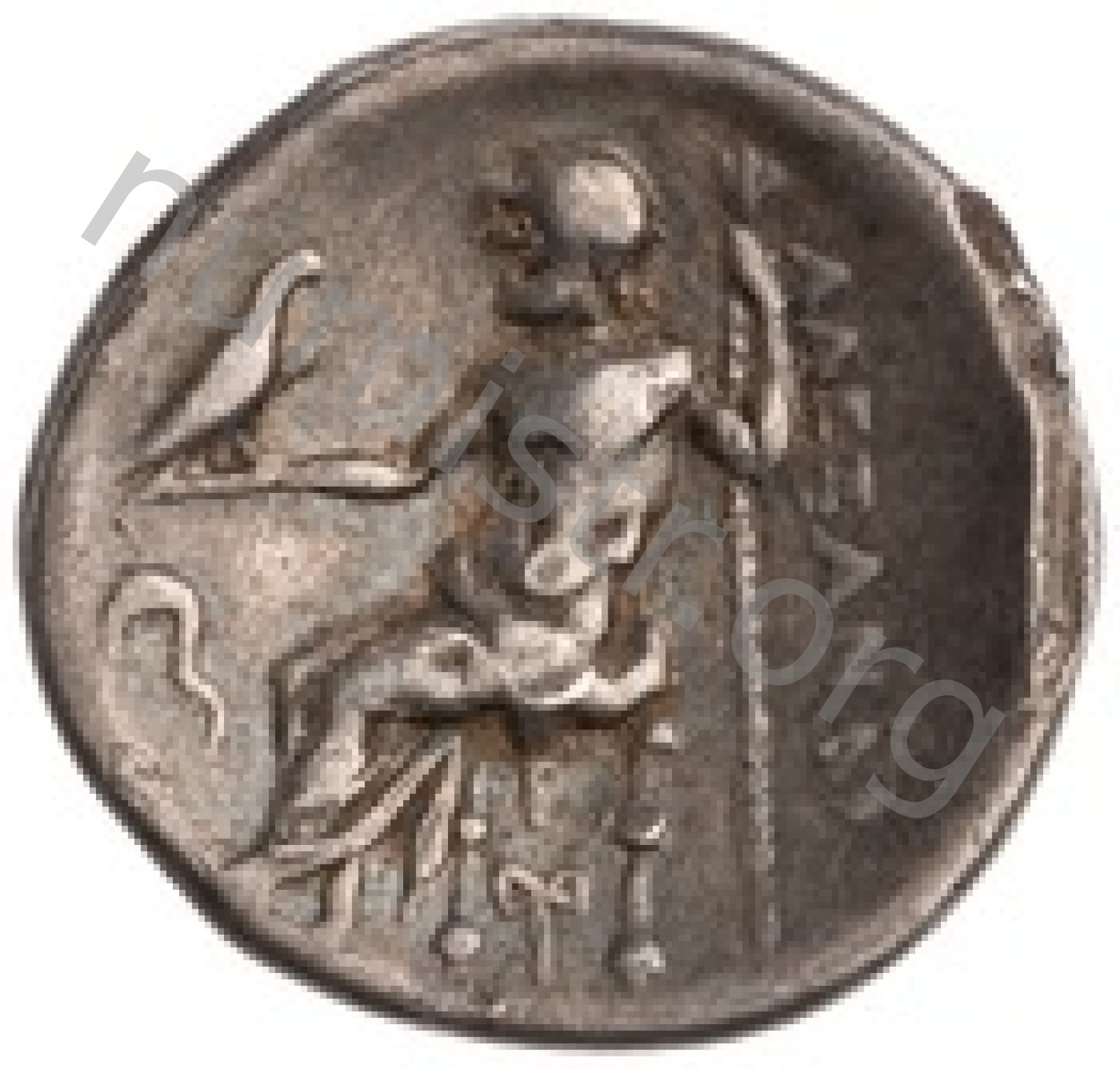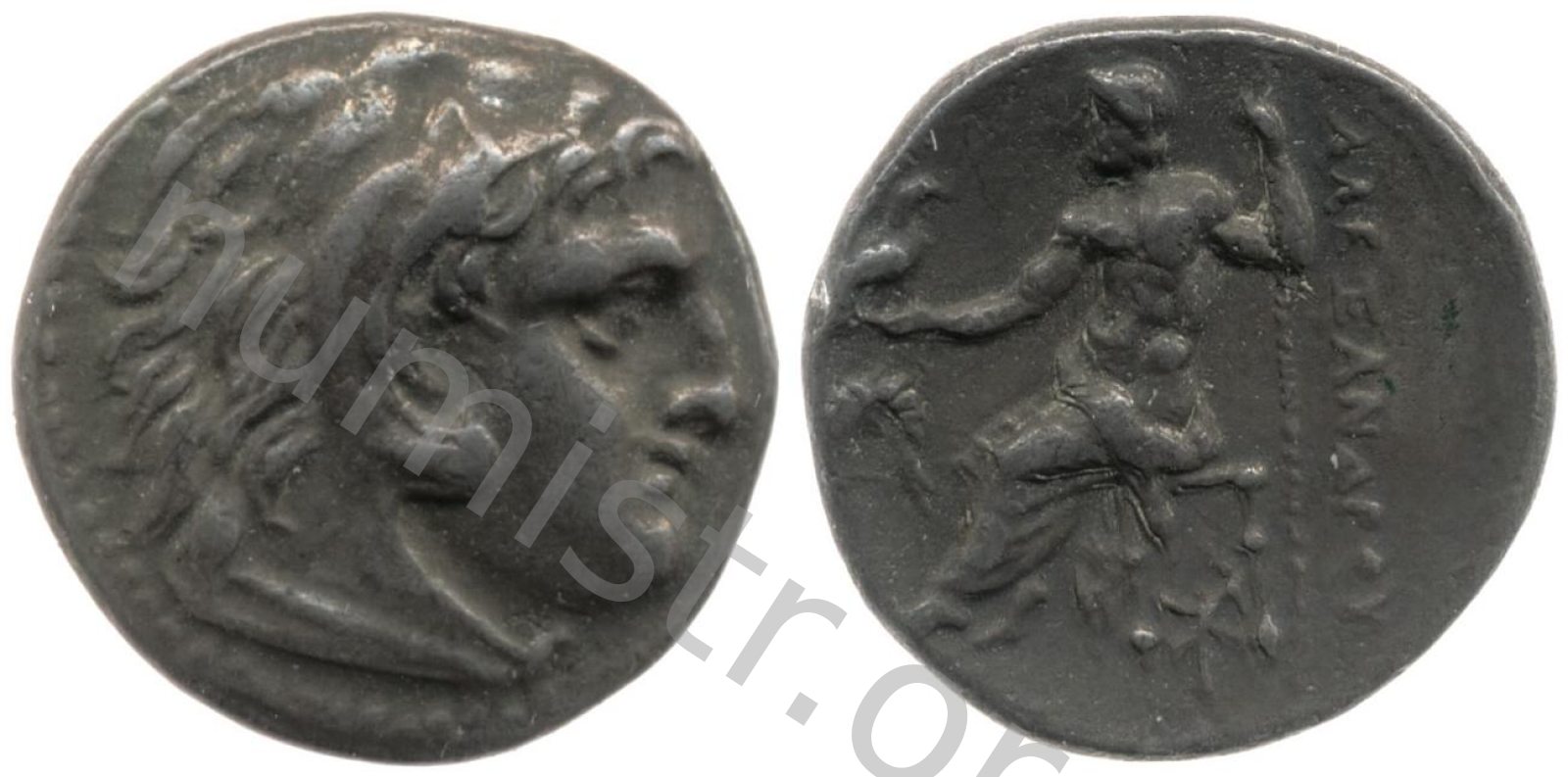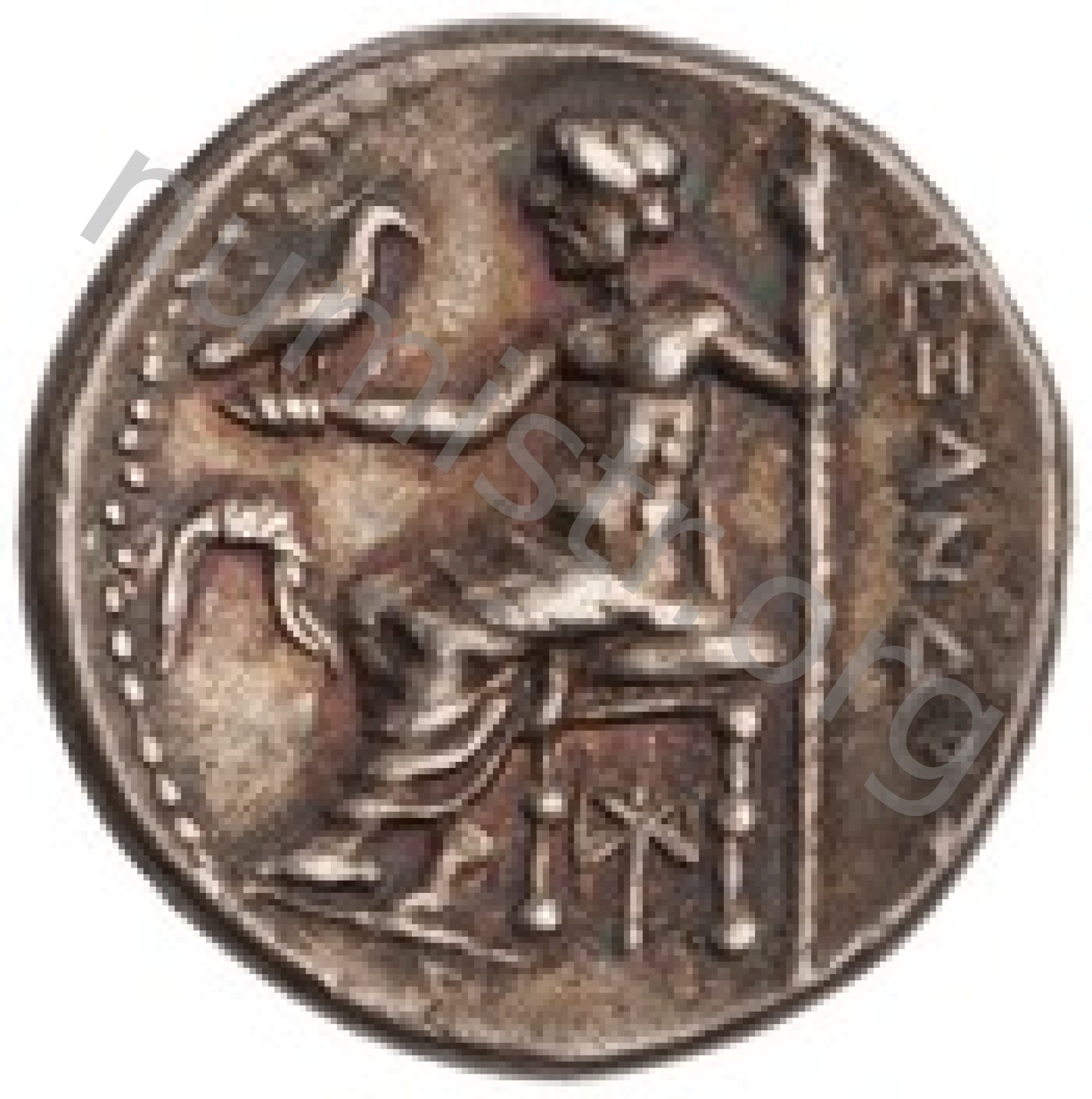 Head of beardless Heracles right wearing lion skin headdress -[en]