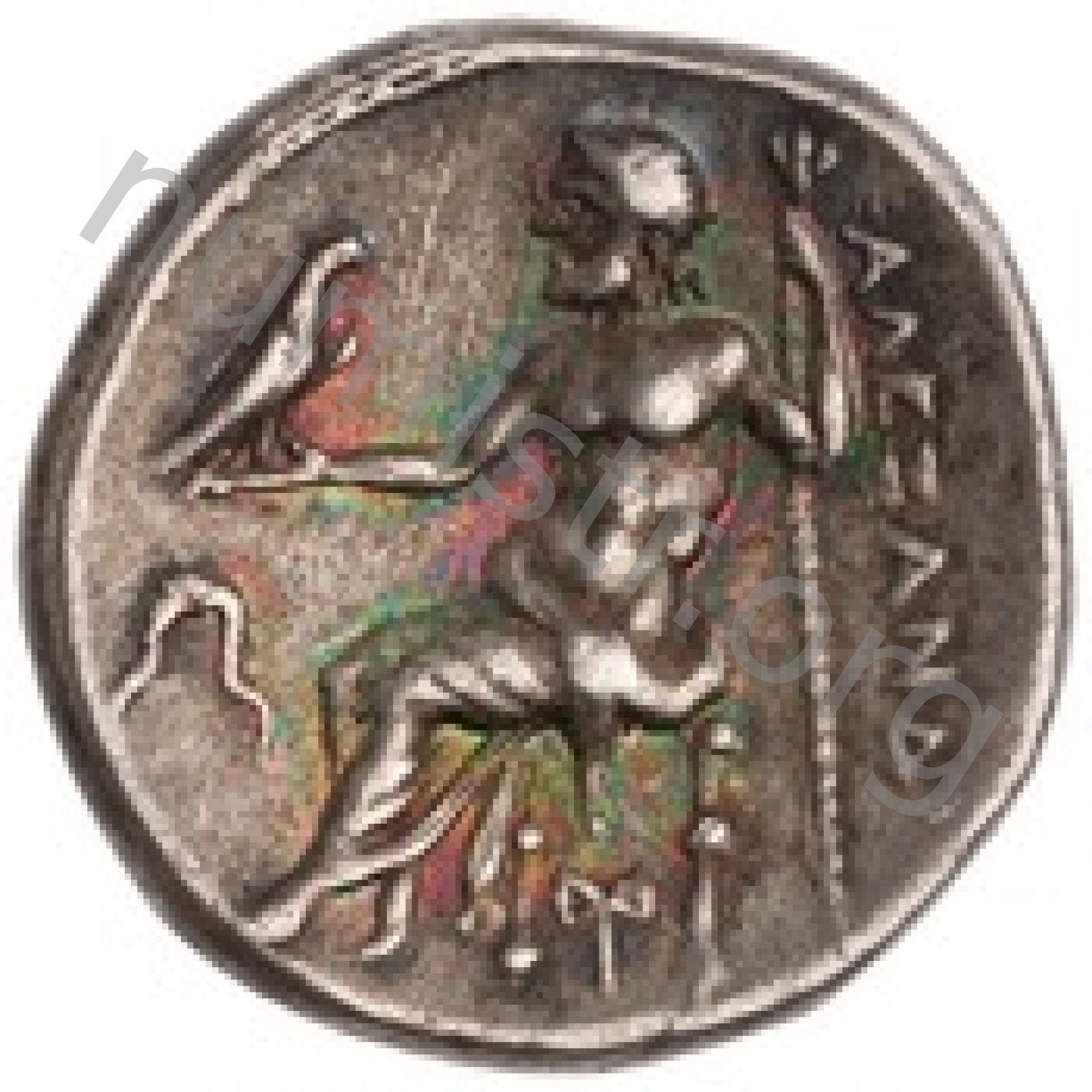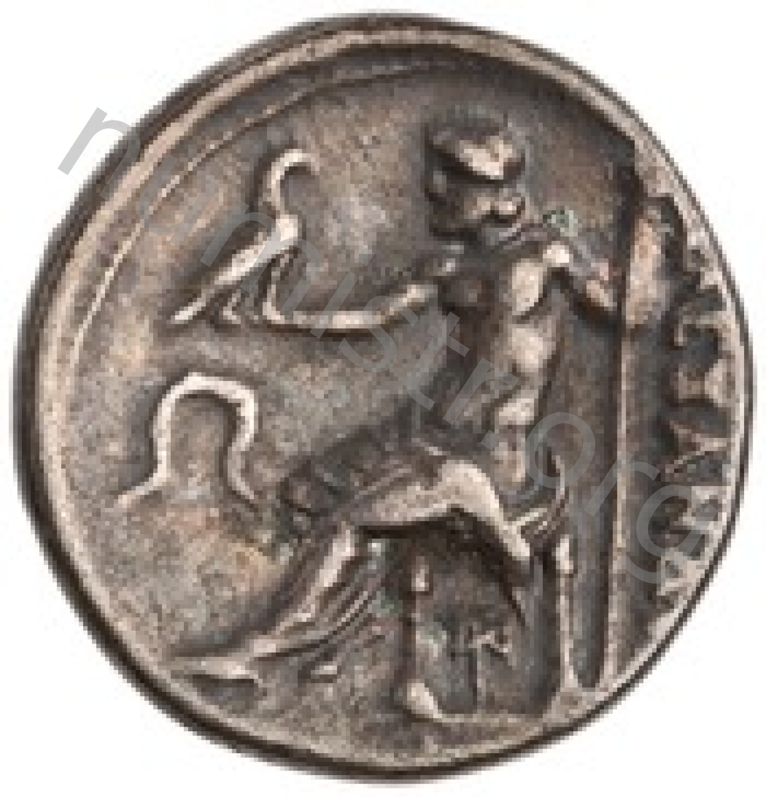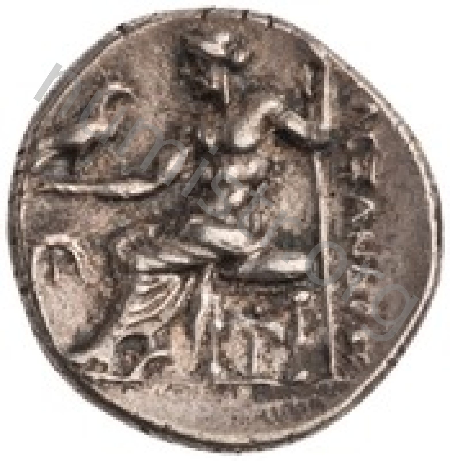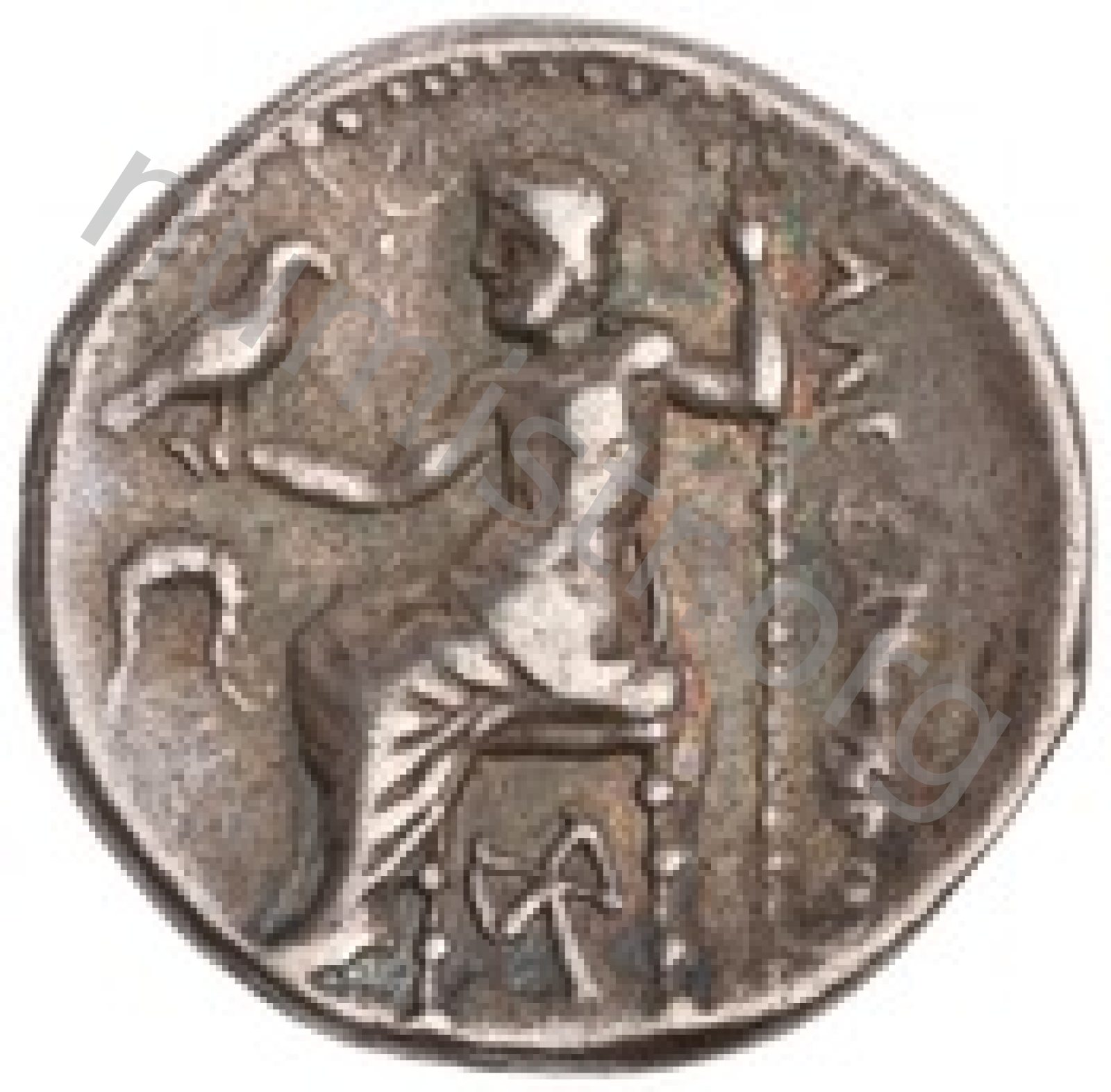 Zeus tabure-tahtta oturuyor sol elinde kartal sağ elinde asa var.