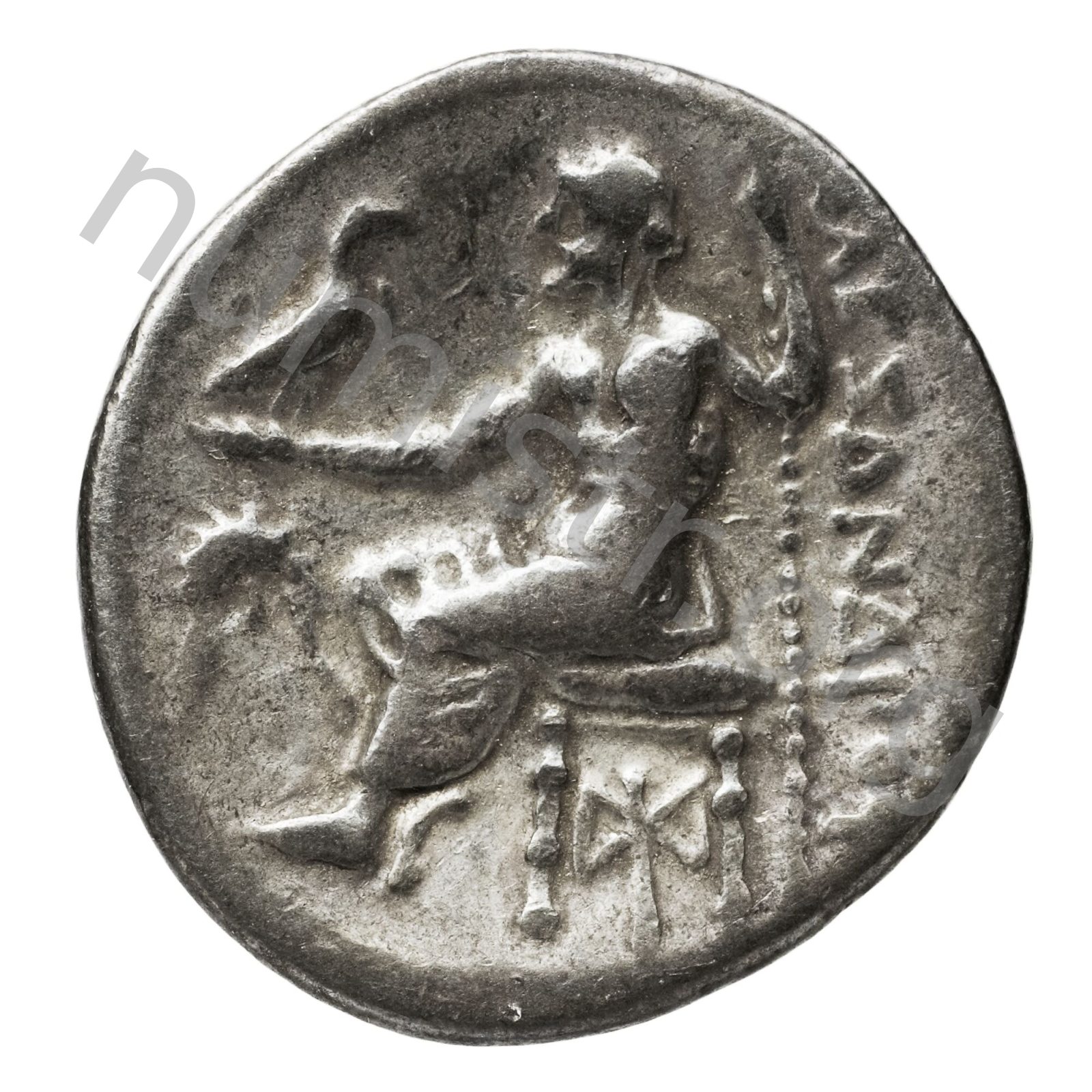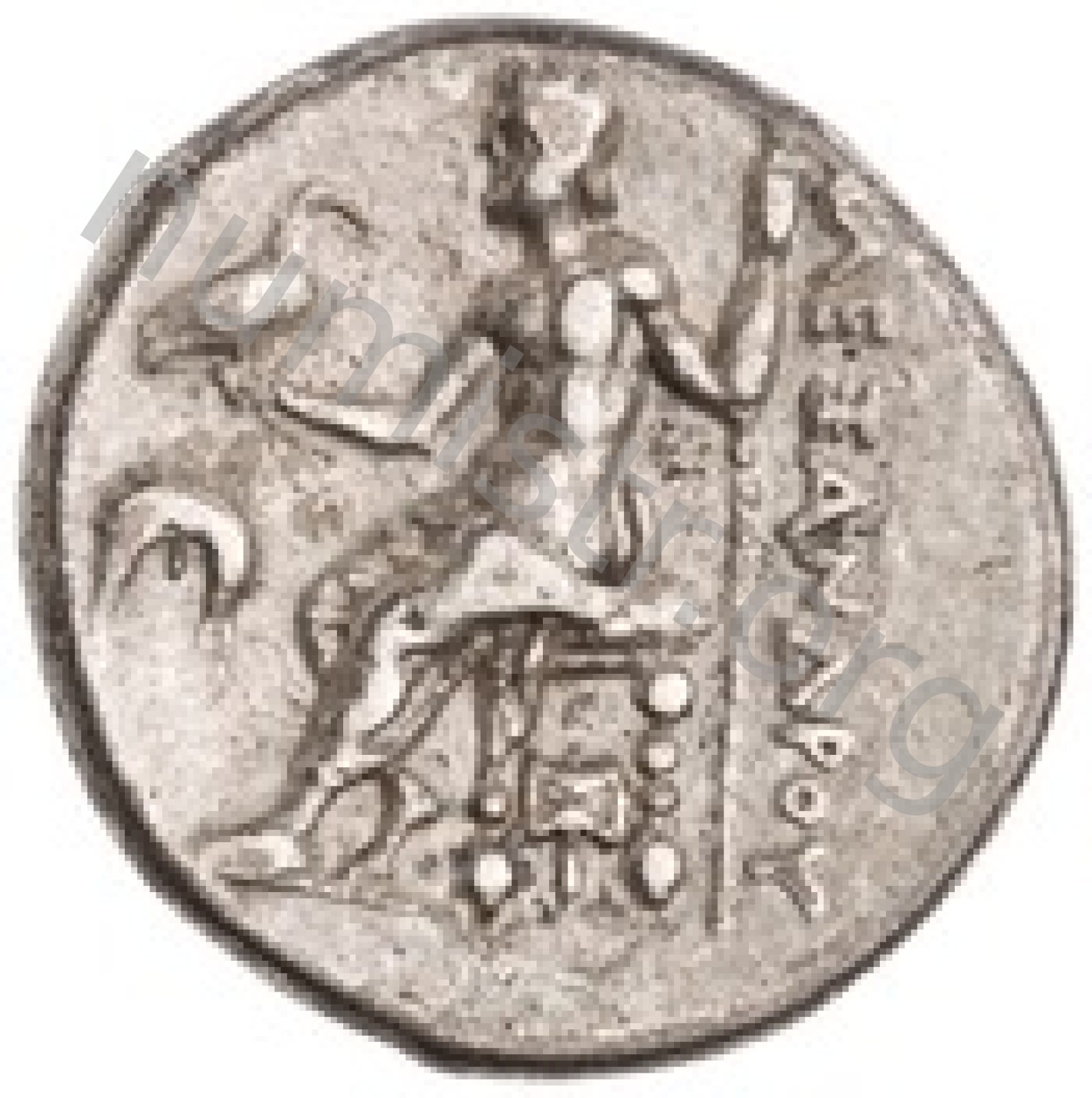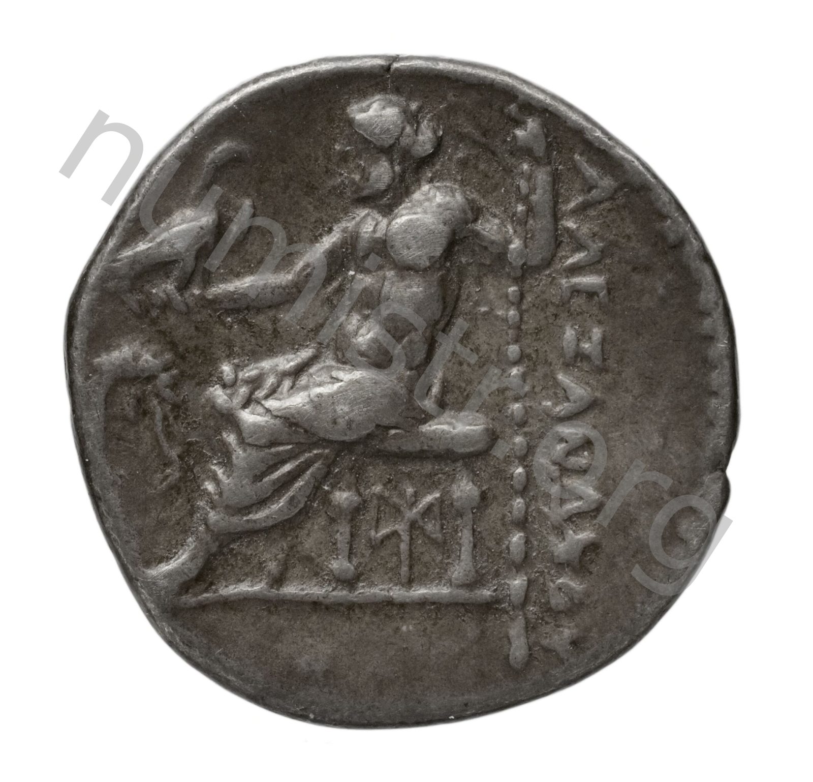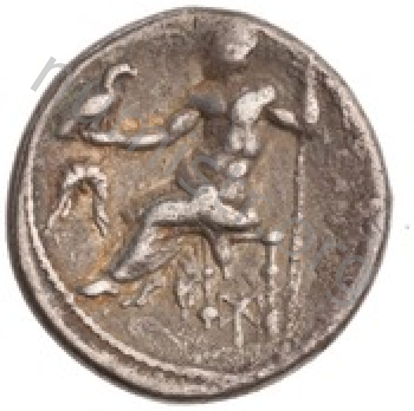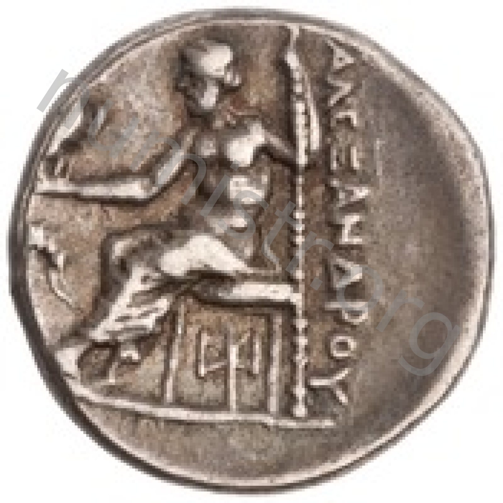 Zeus seated on stool-throne left eagle on outstretched right hand sceptre in left hand -[en]