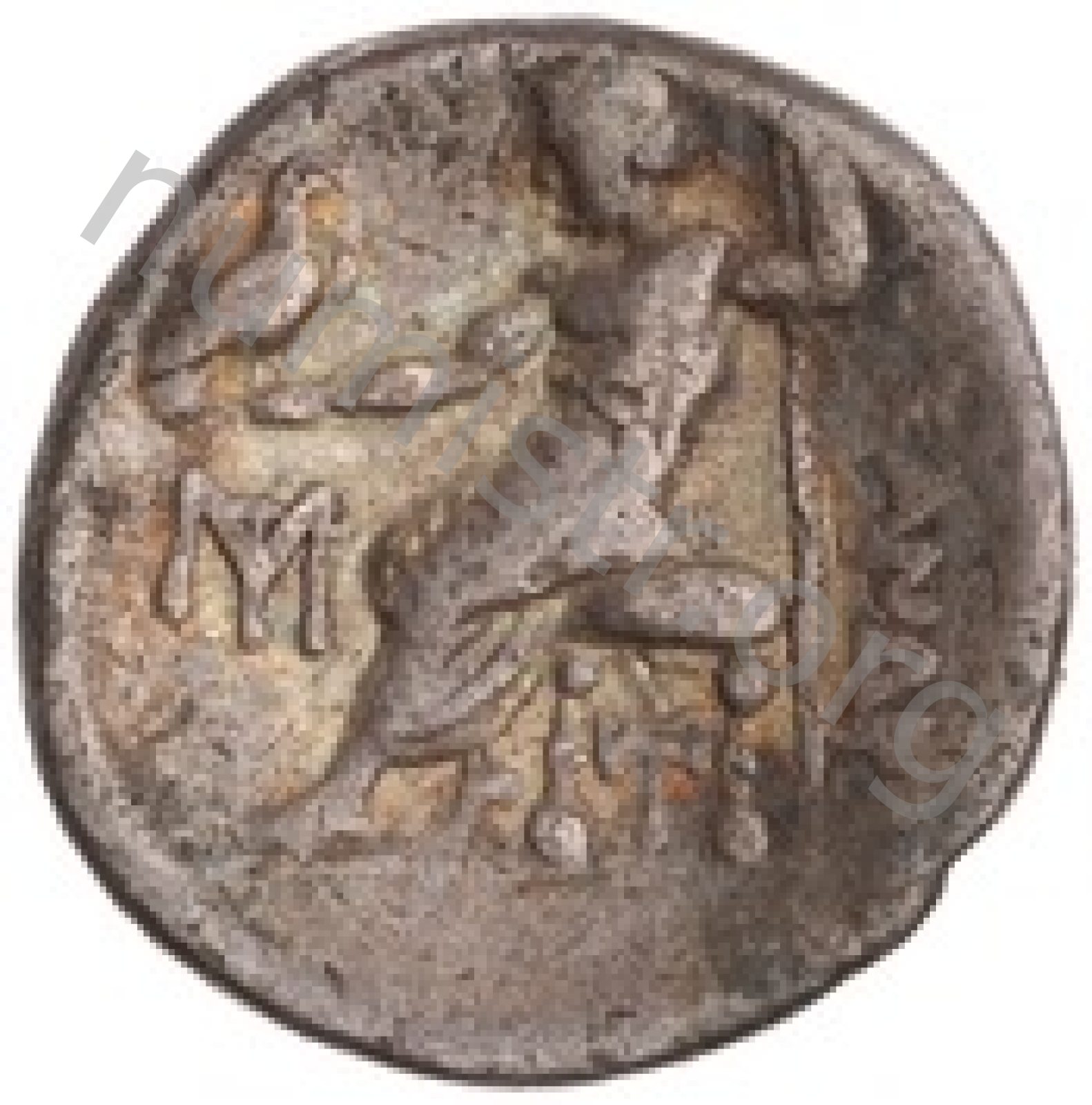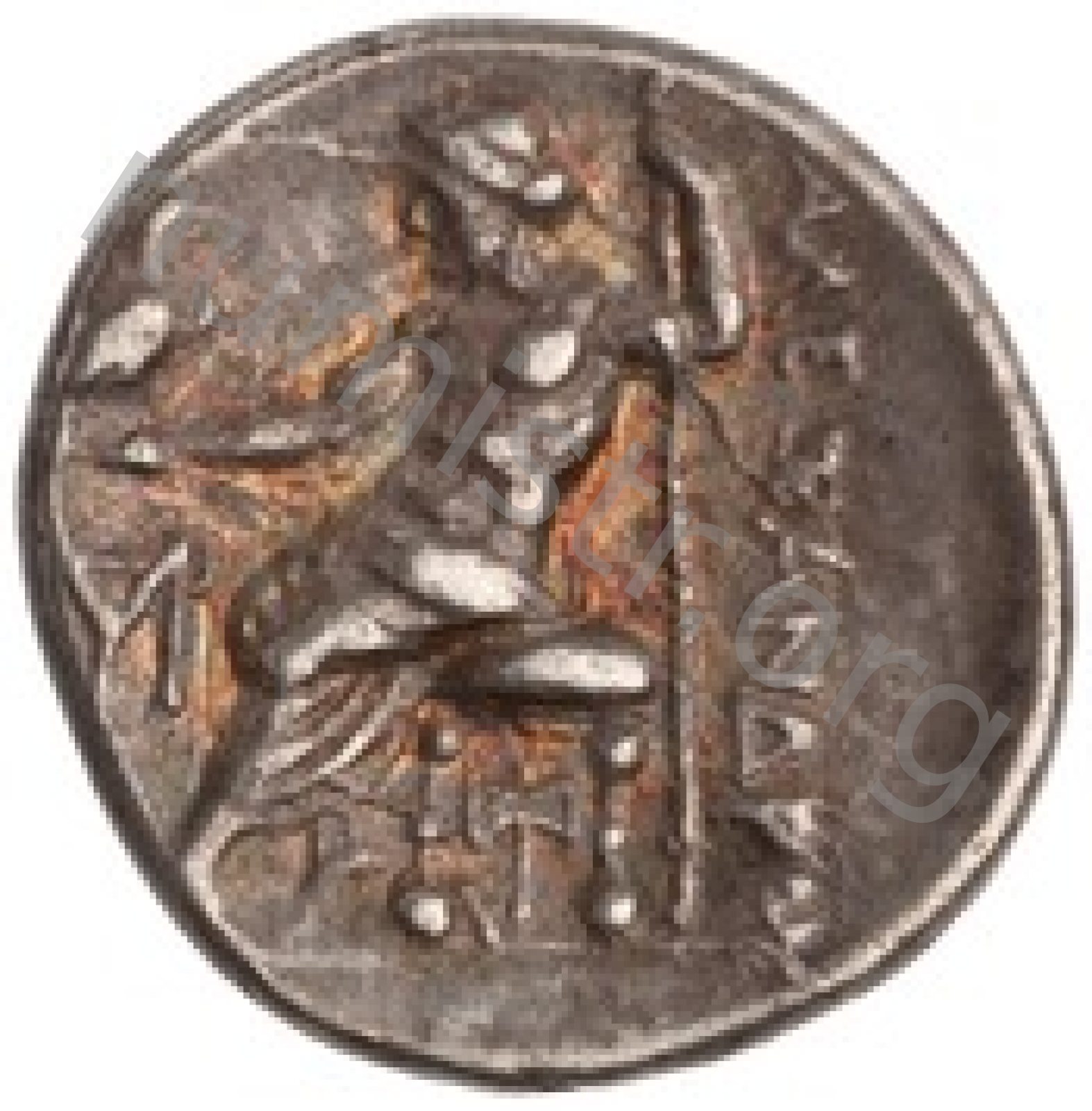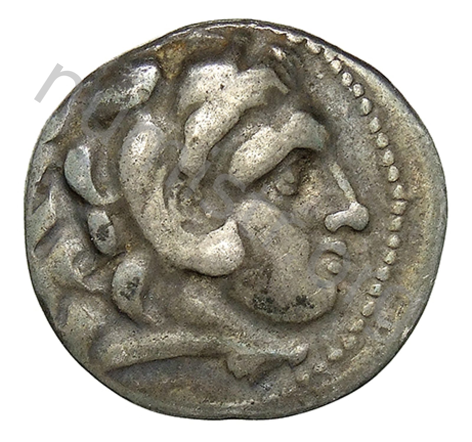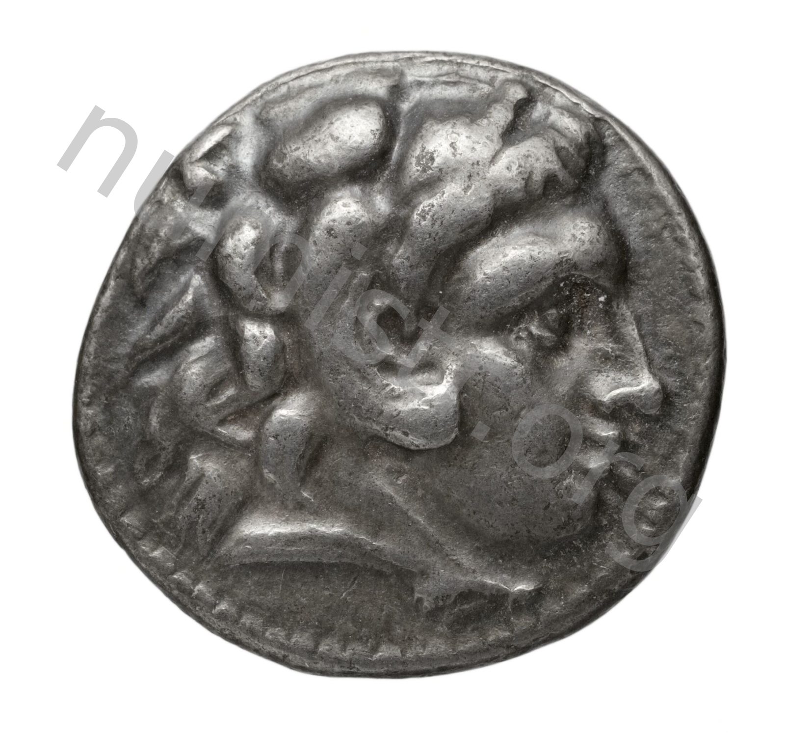Head of beardless Heracles right wearing lion skin headdress -[en]