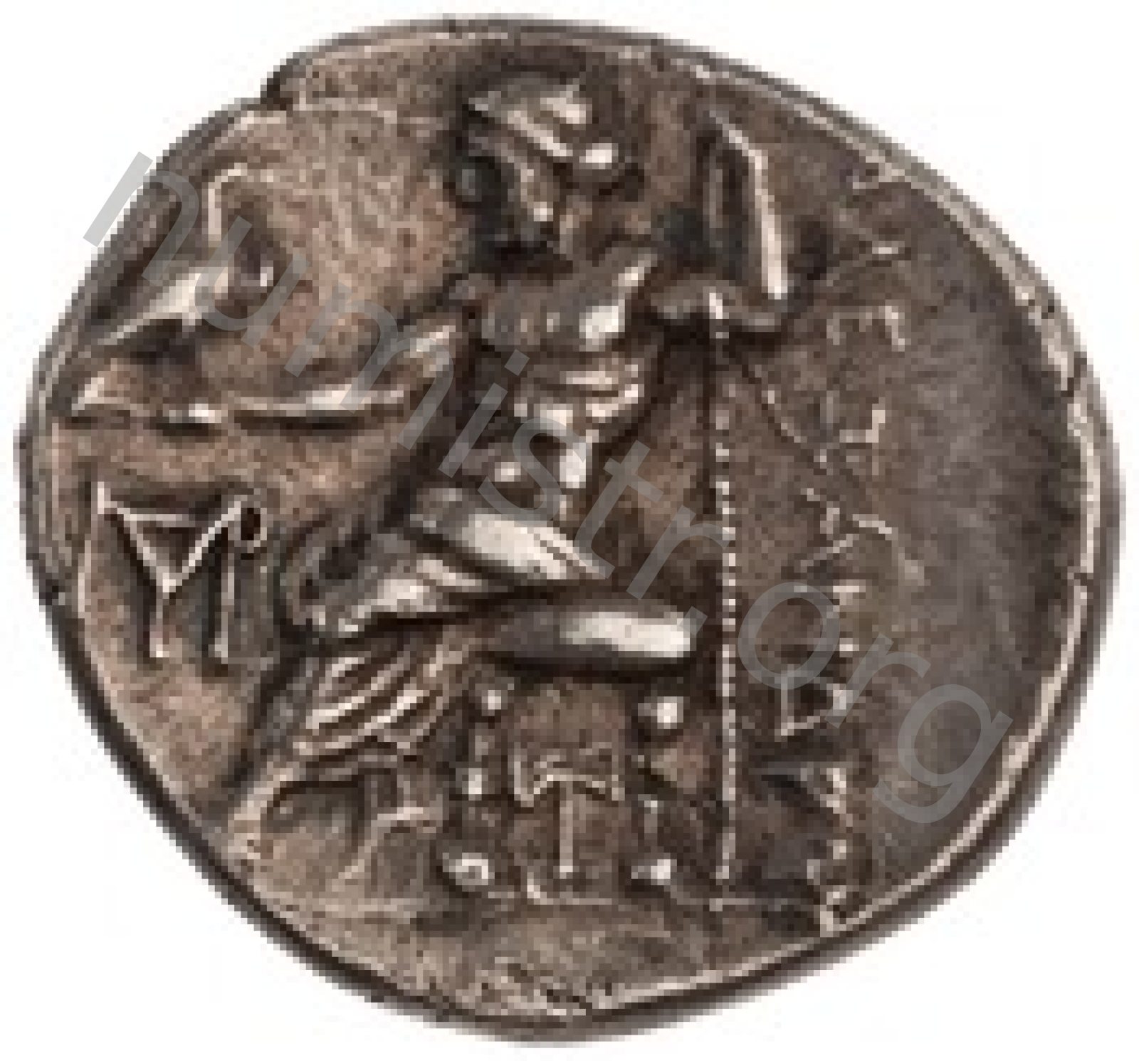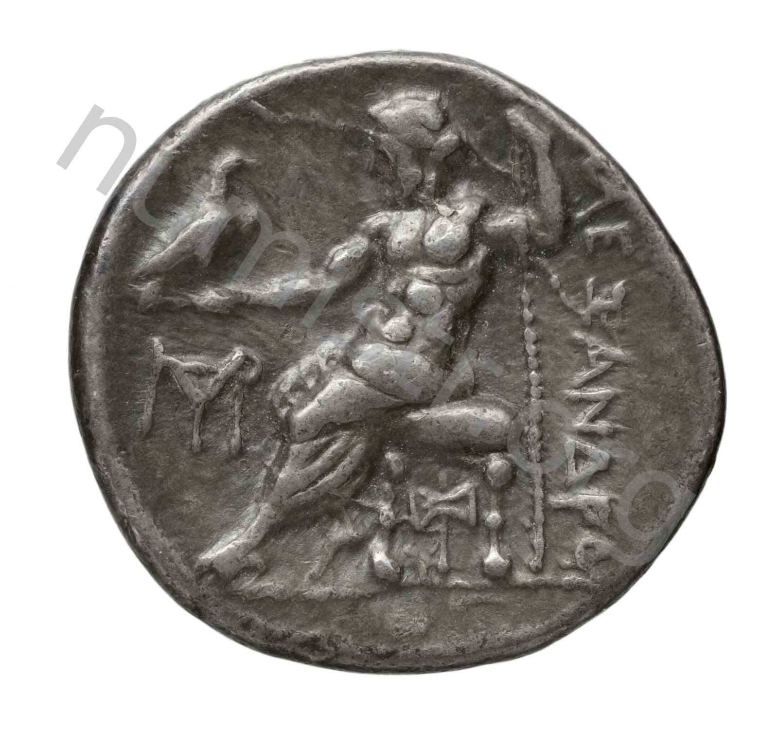 Zeus tabure-tahtta oturuyor sol elinde kartal sağ elinde asa var