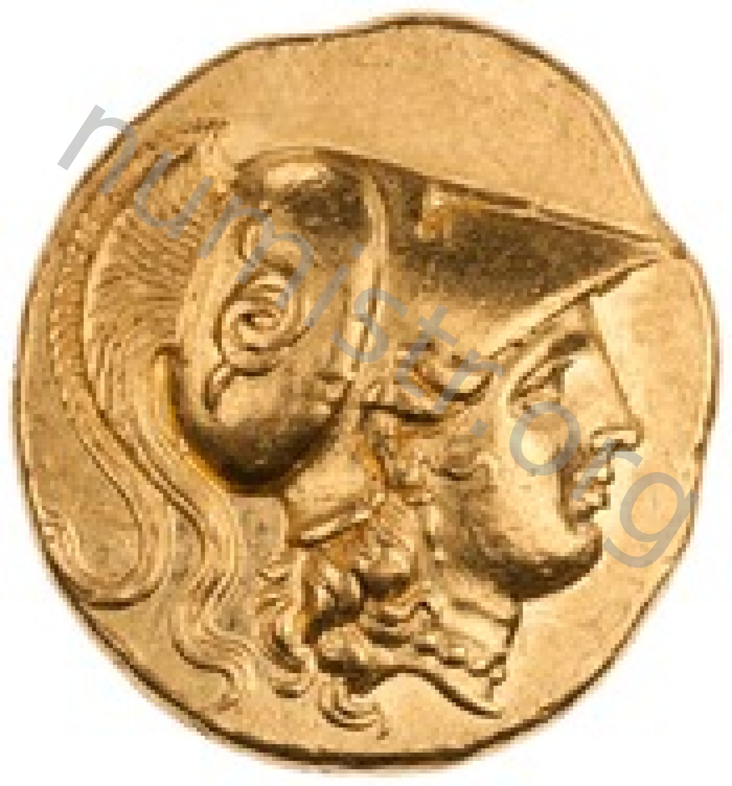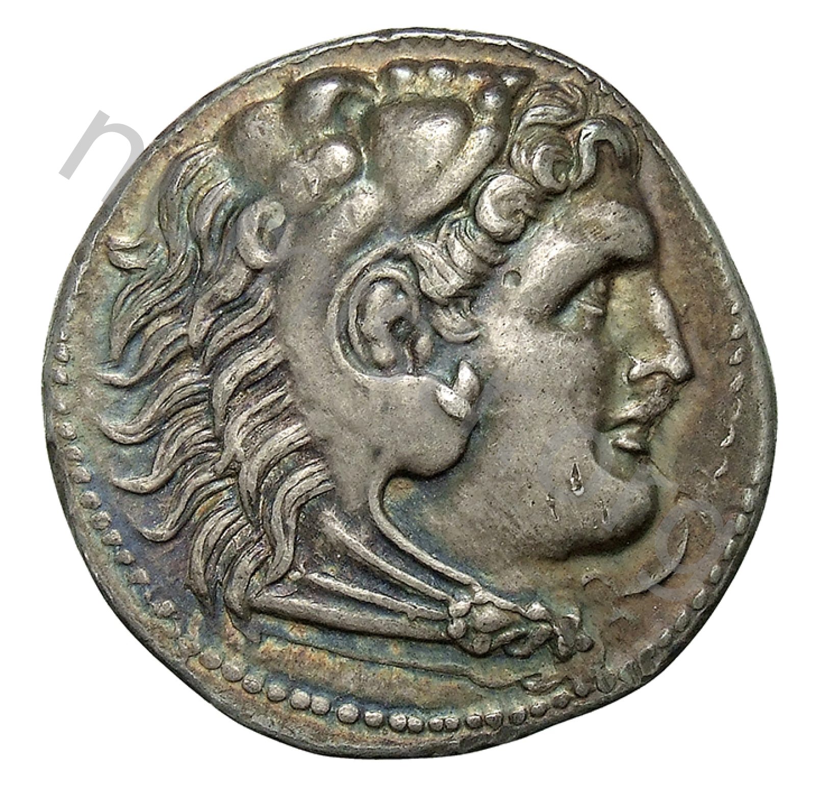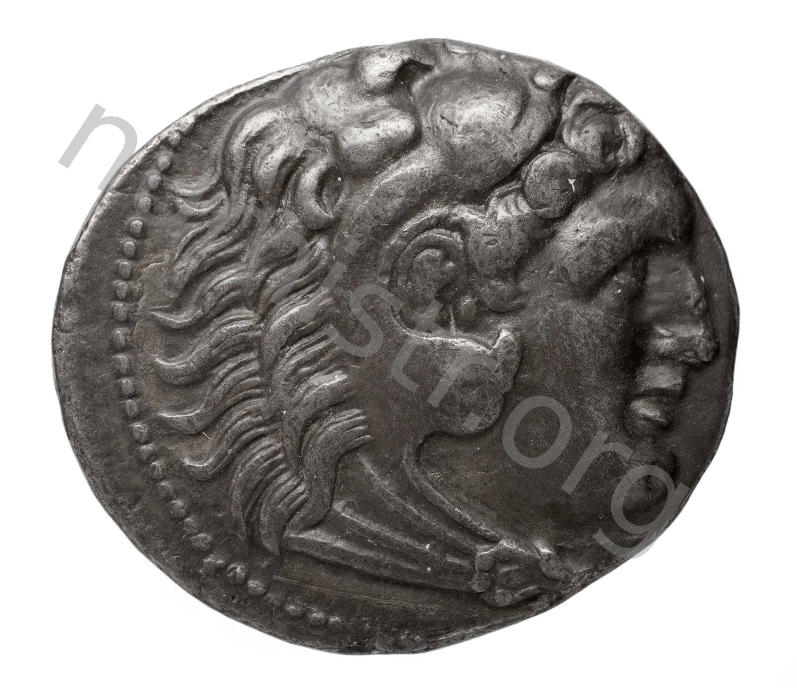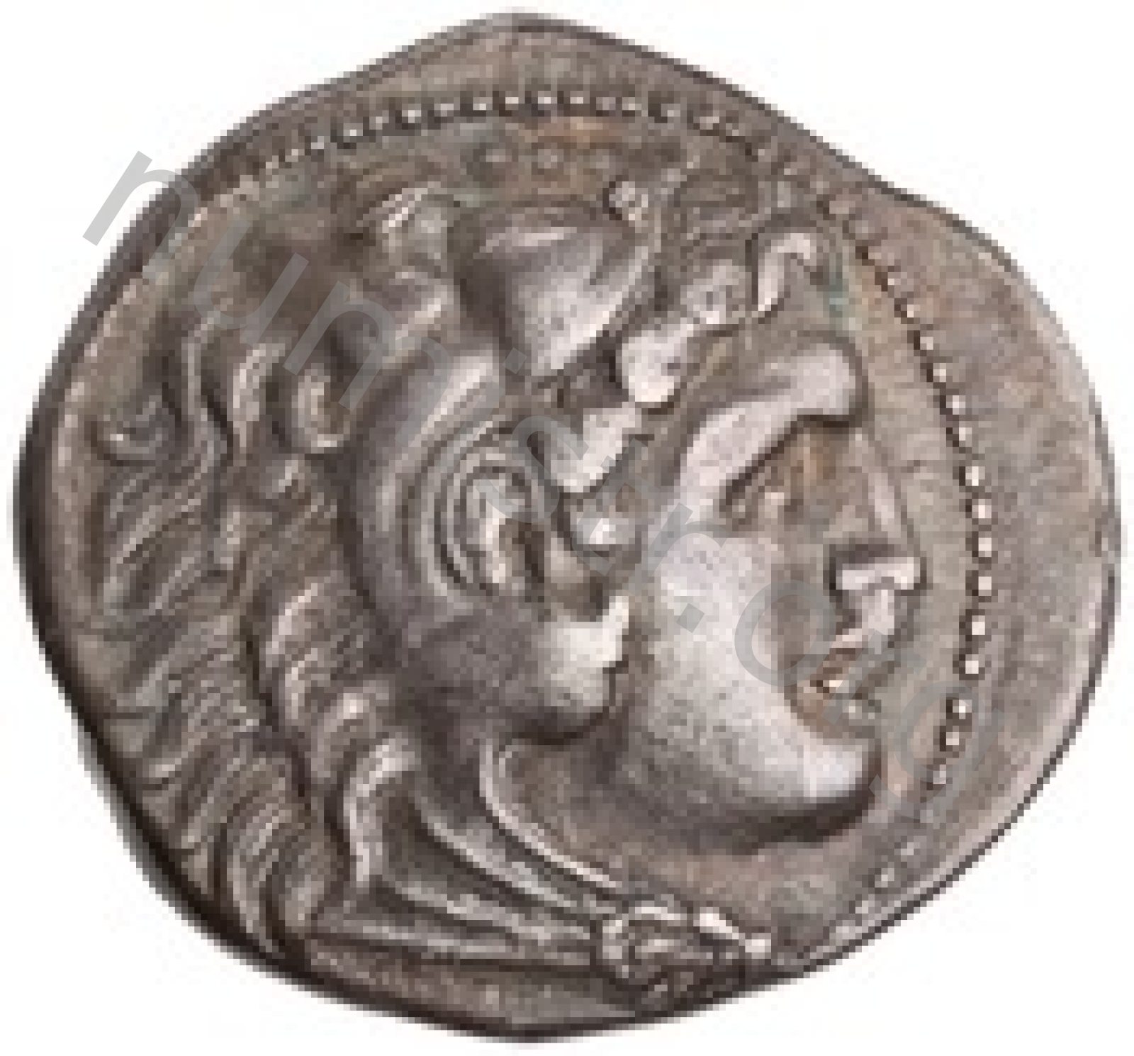 Head of beardless Heracles right wearing lion skin headdress -[en]