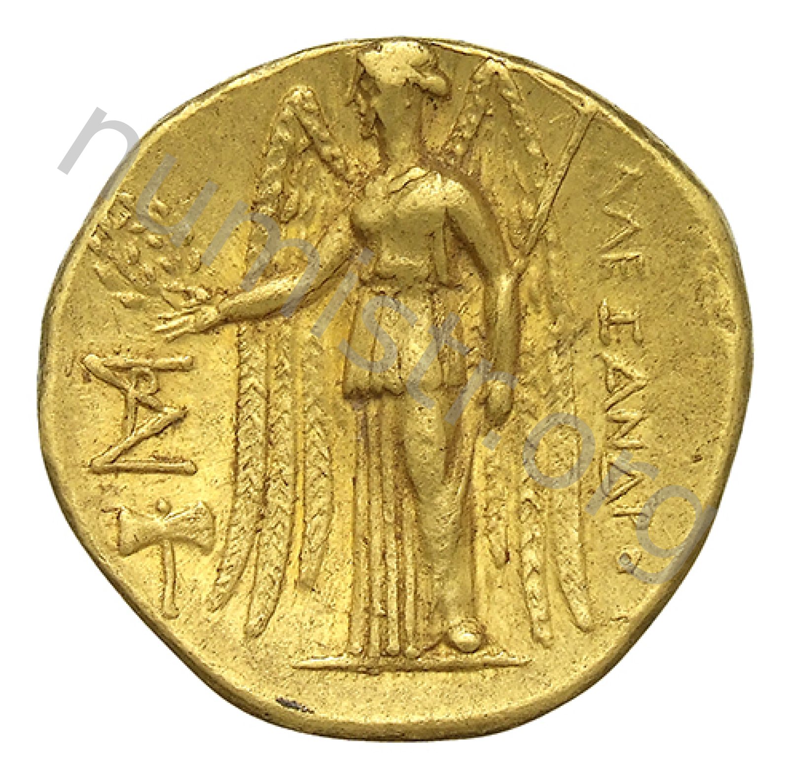 Nike standing left holding wreath in right hand and stylis in her left hand -[en]