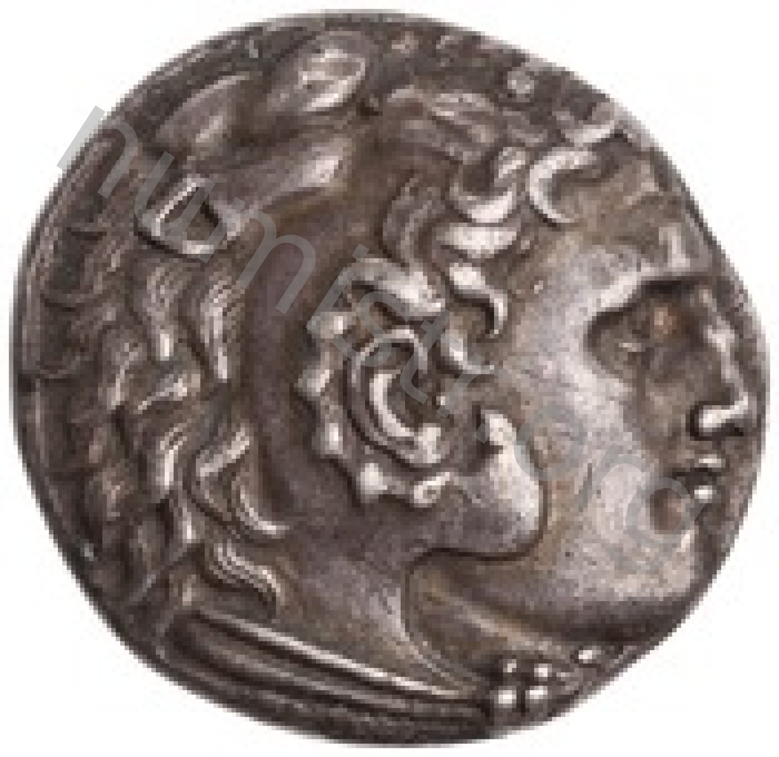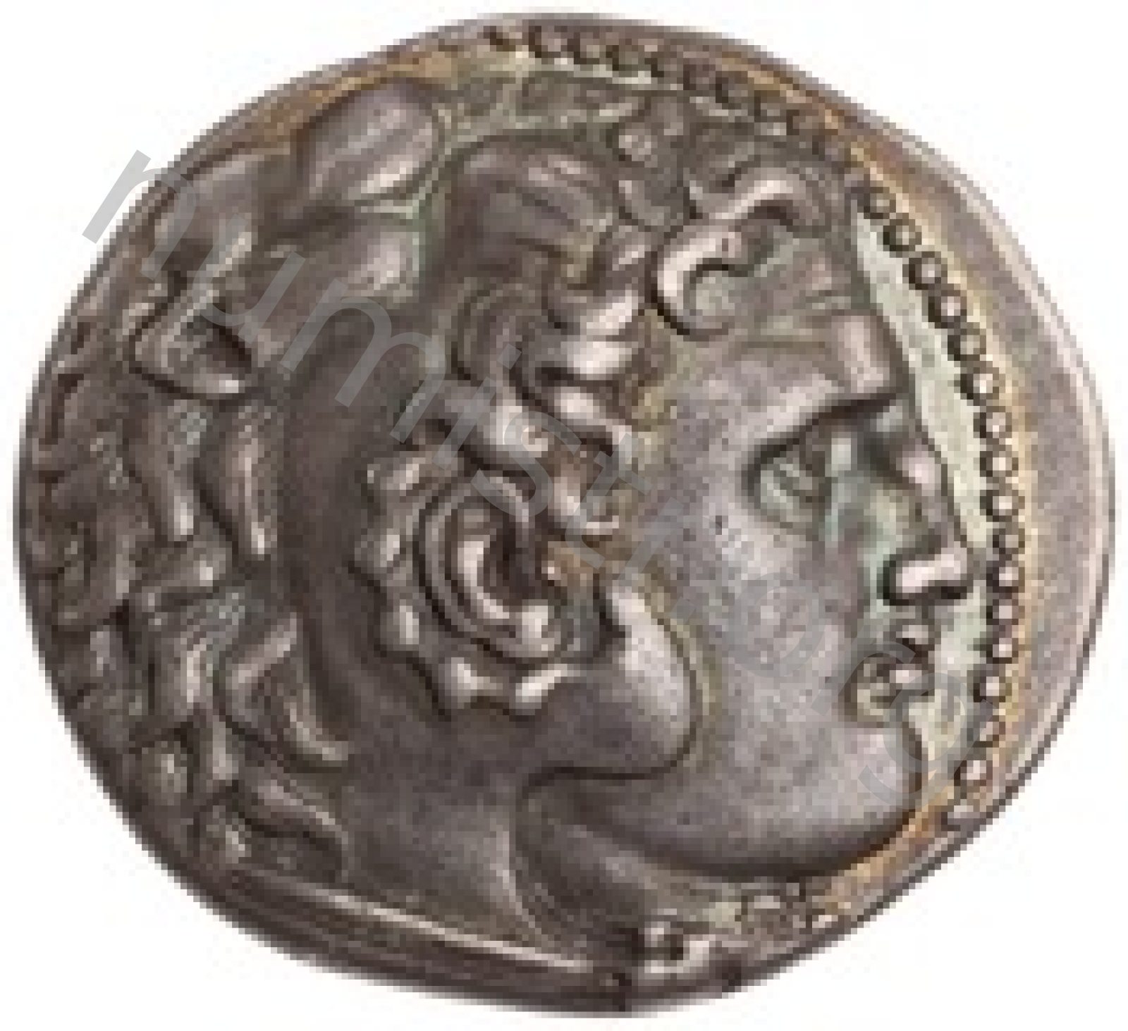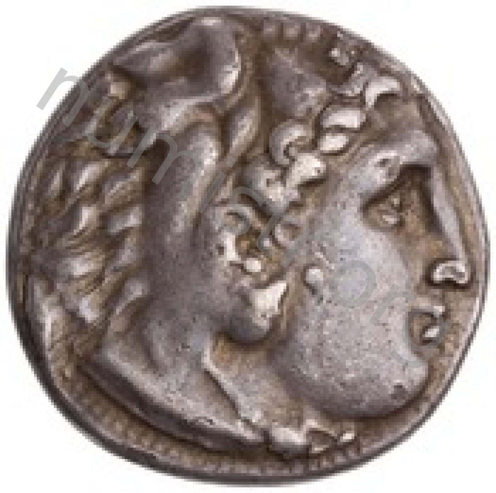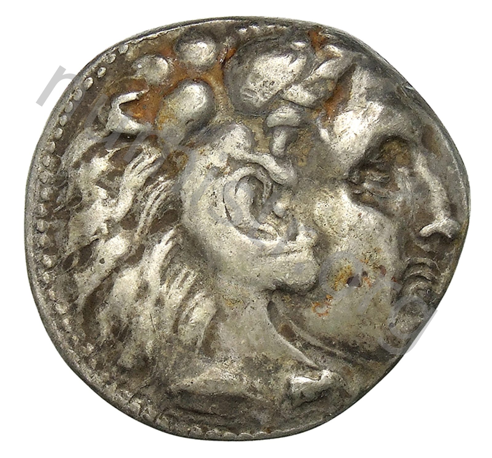 Head of beardless Heracles right wearing lion skin headdress -[en]