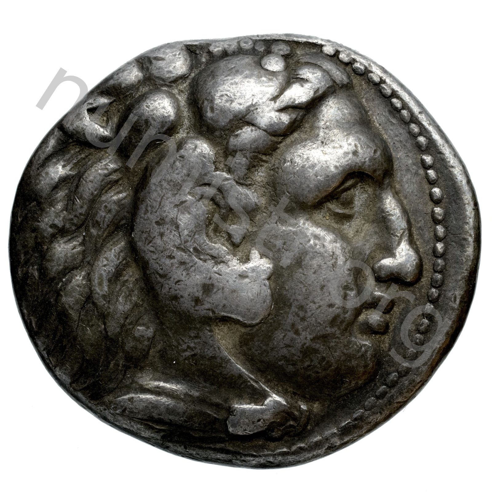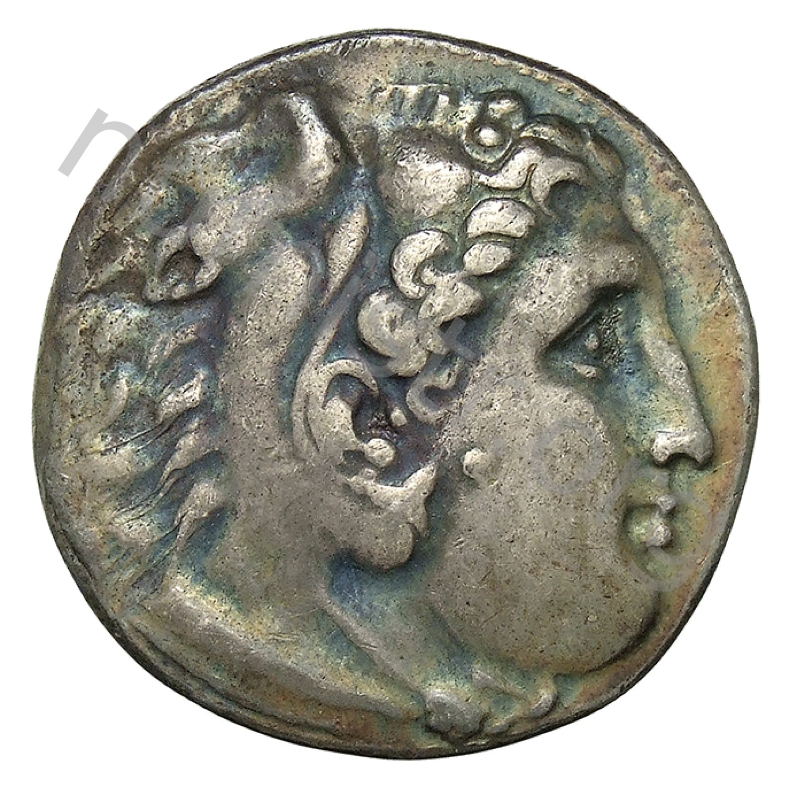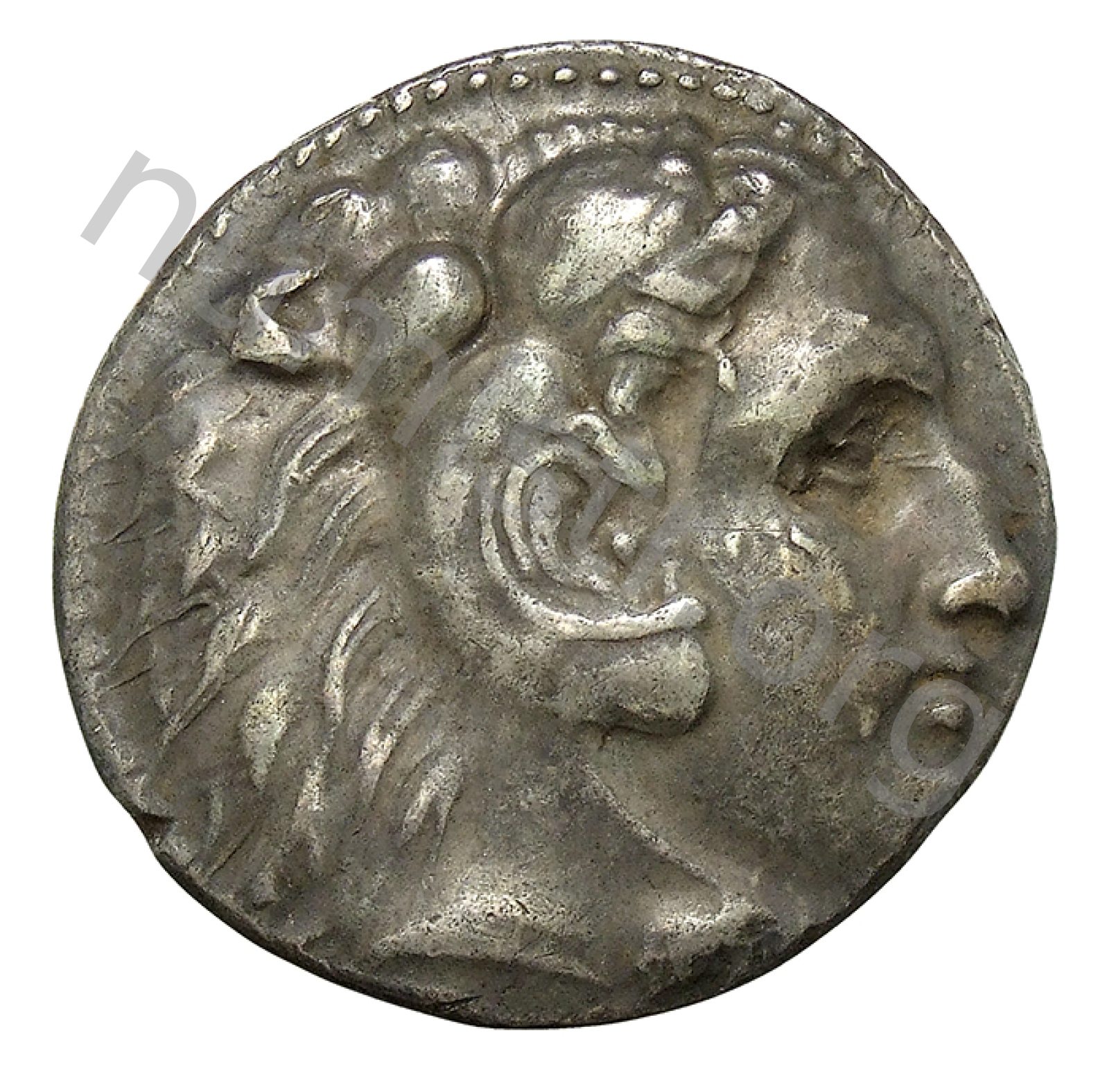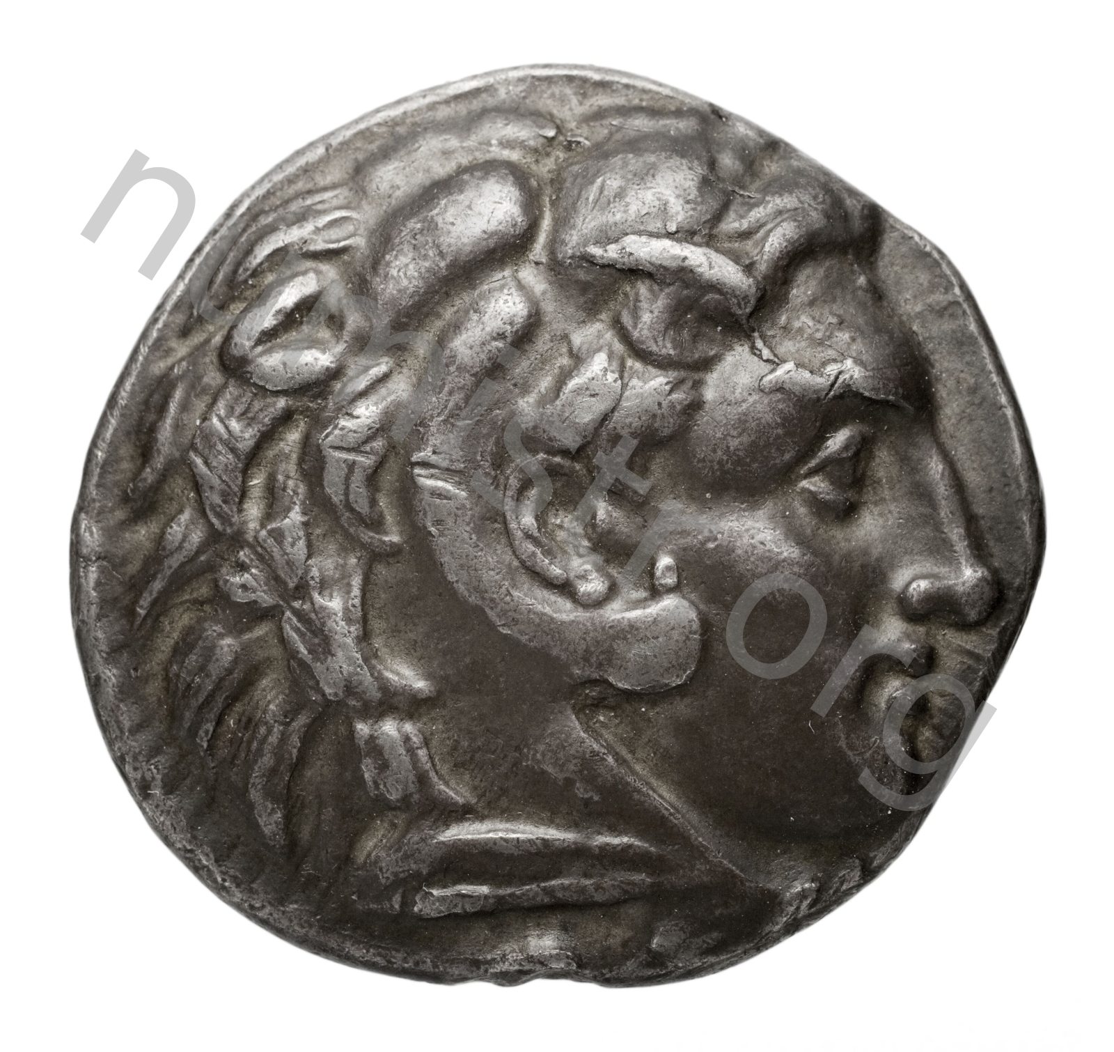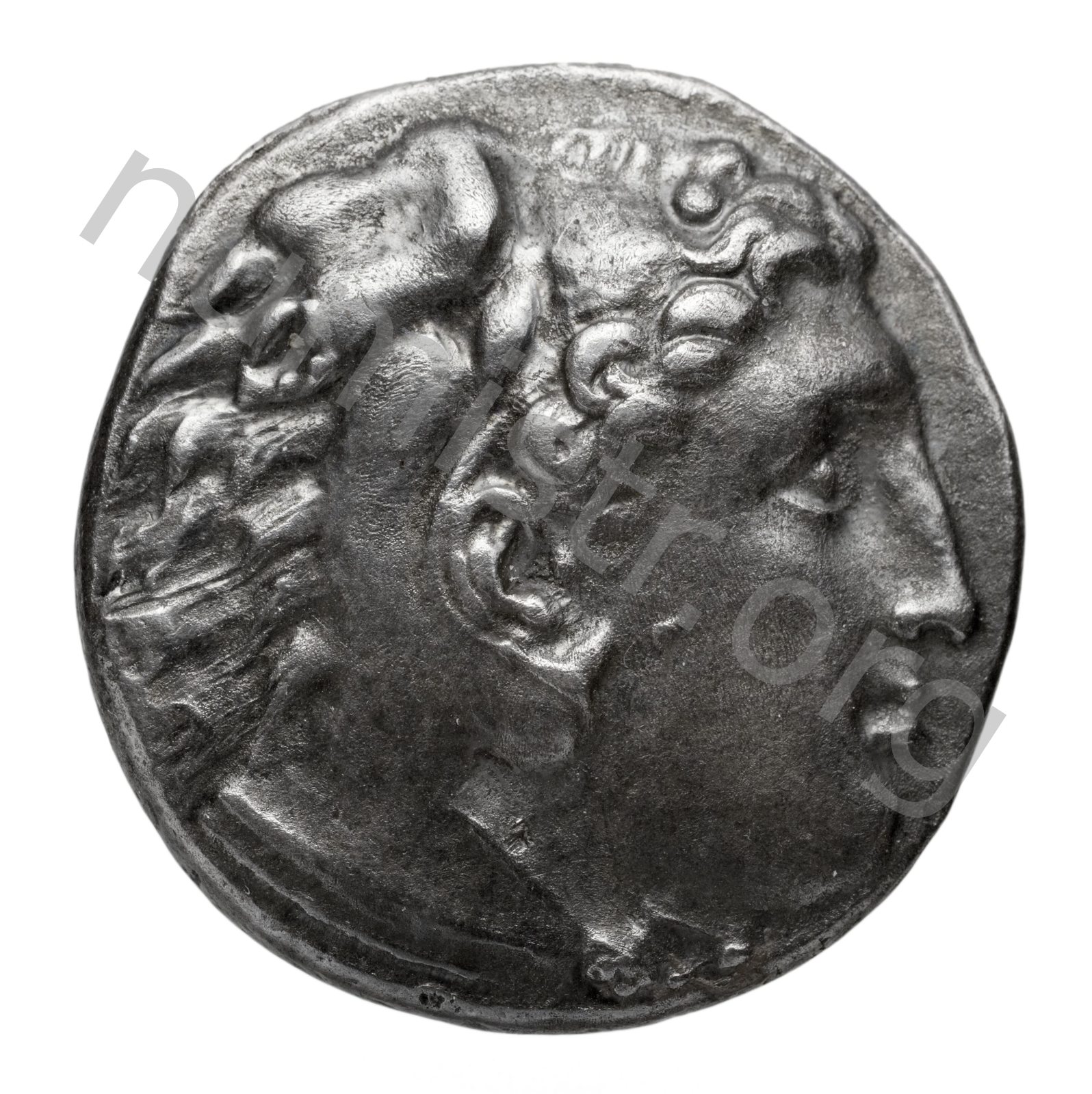 Head of beardless Heracles right wearing lion skin headdress -[en]