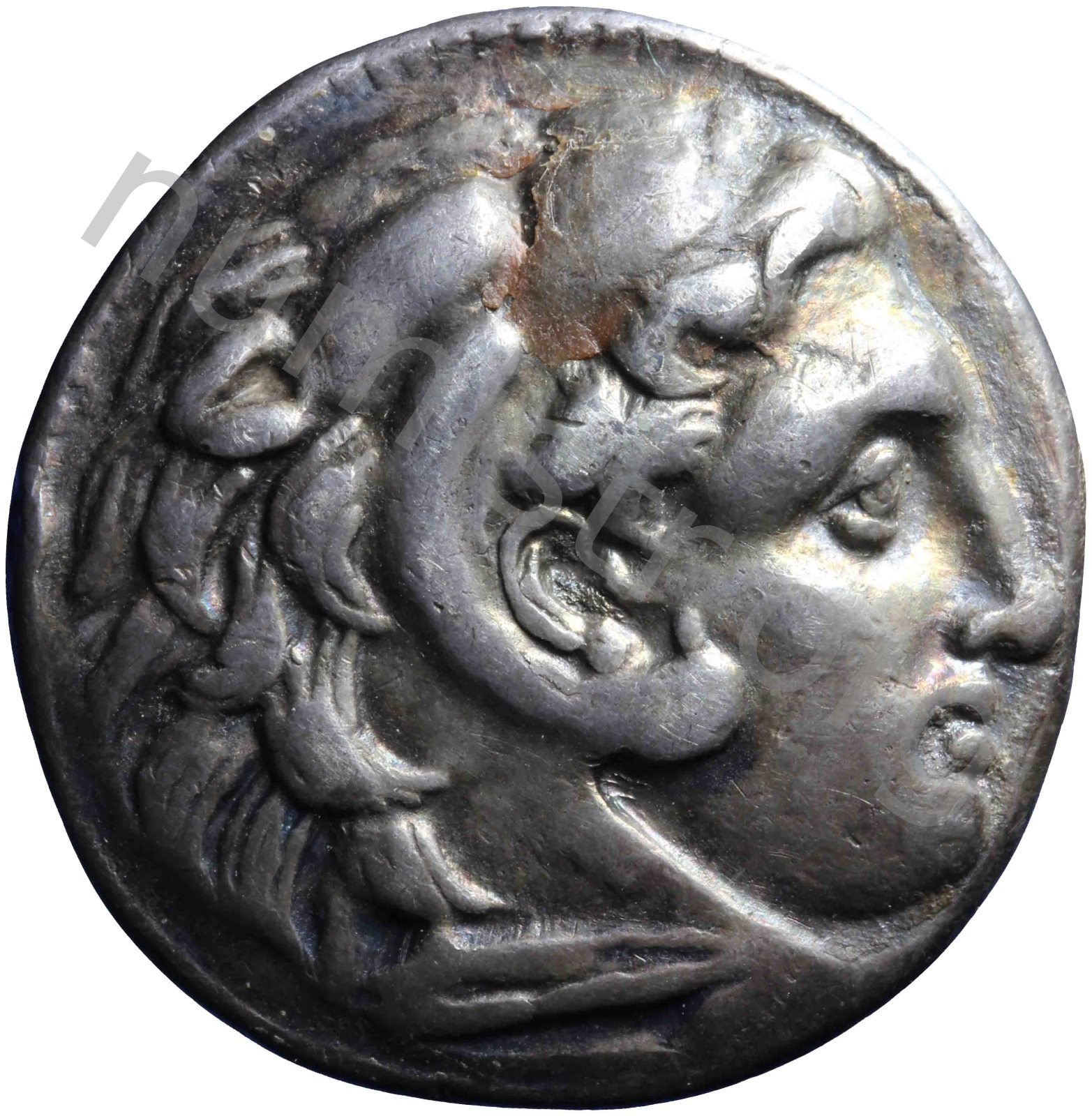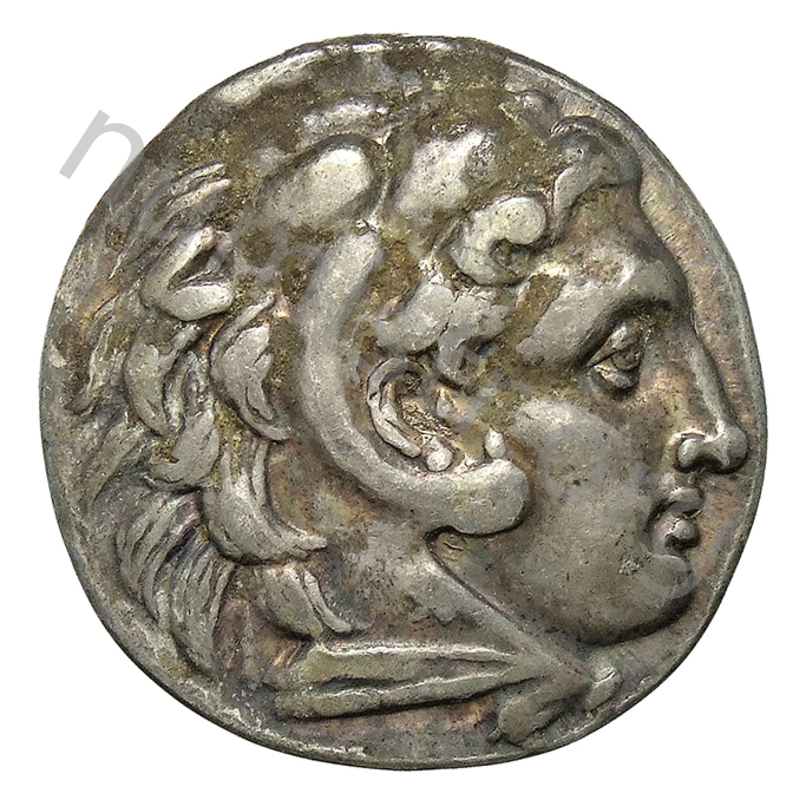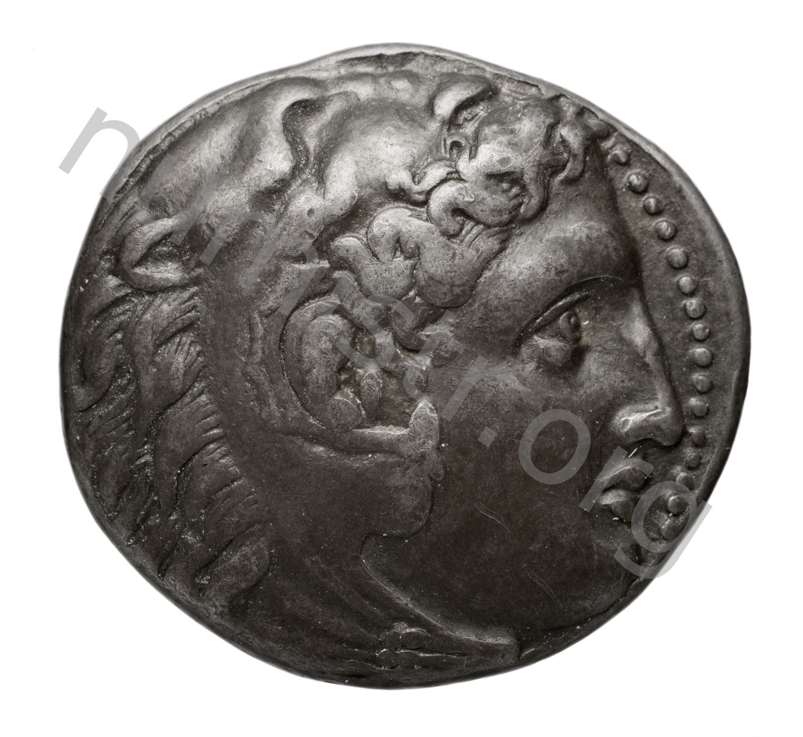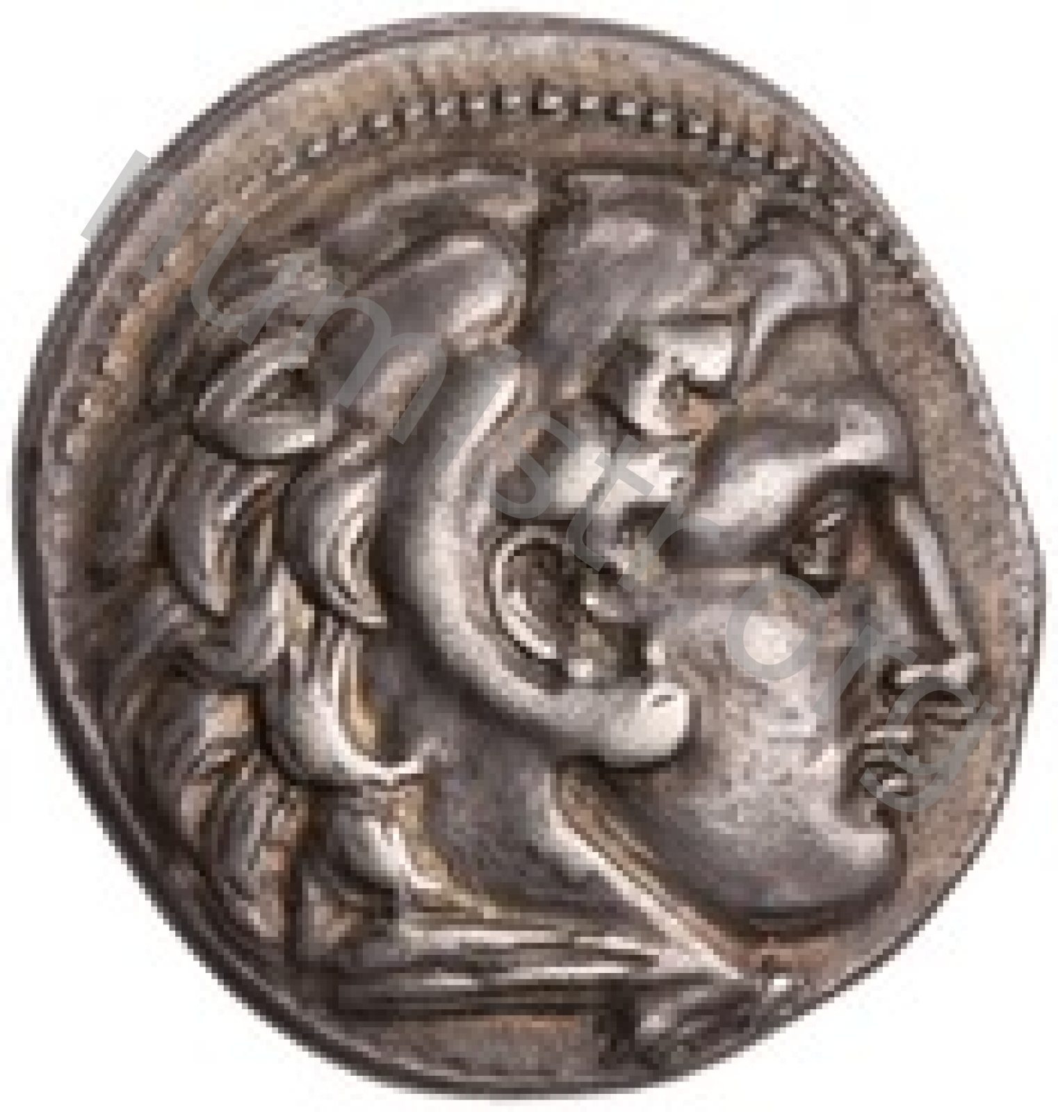 Head of beardless Heracles right wearing lion skin headdress -[en]