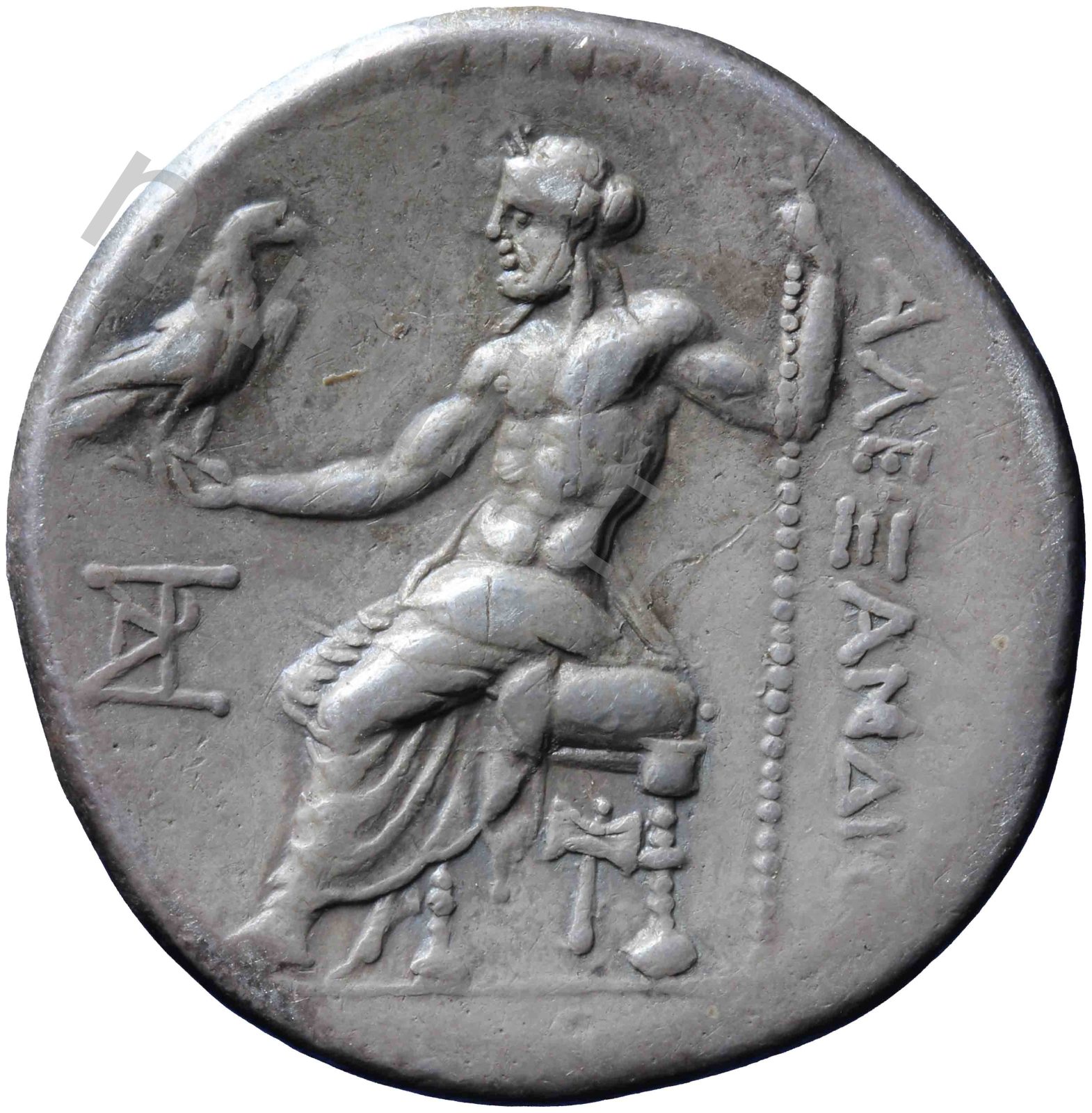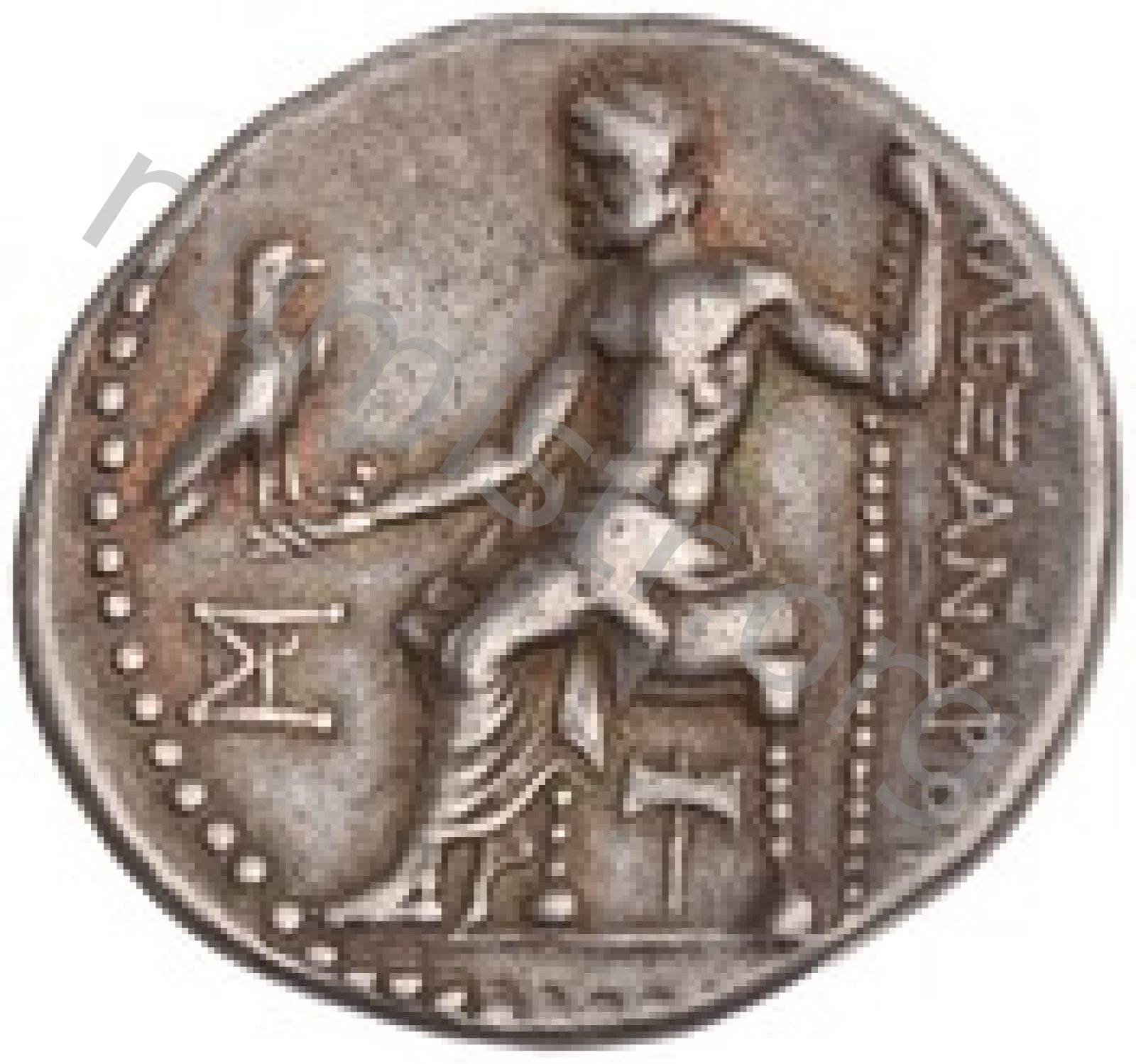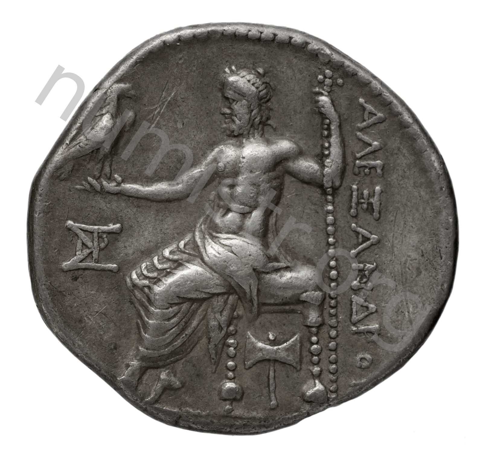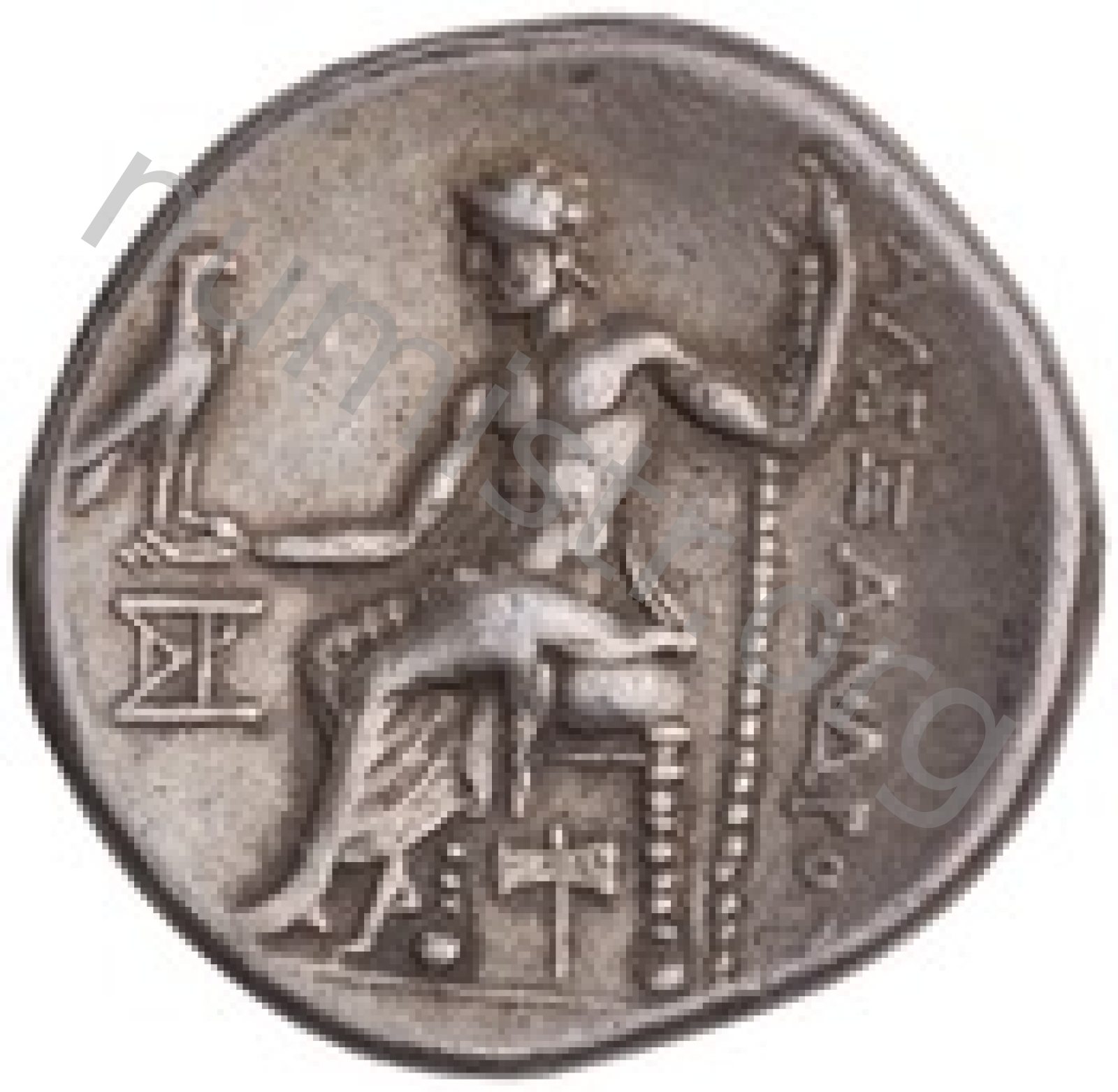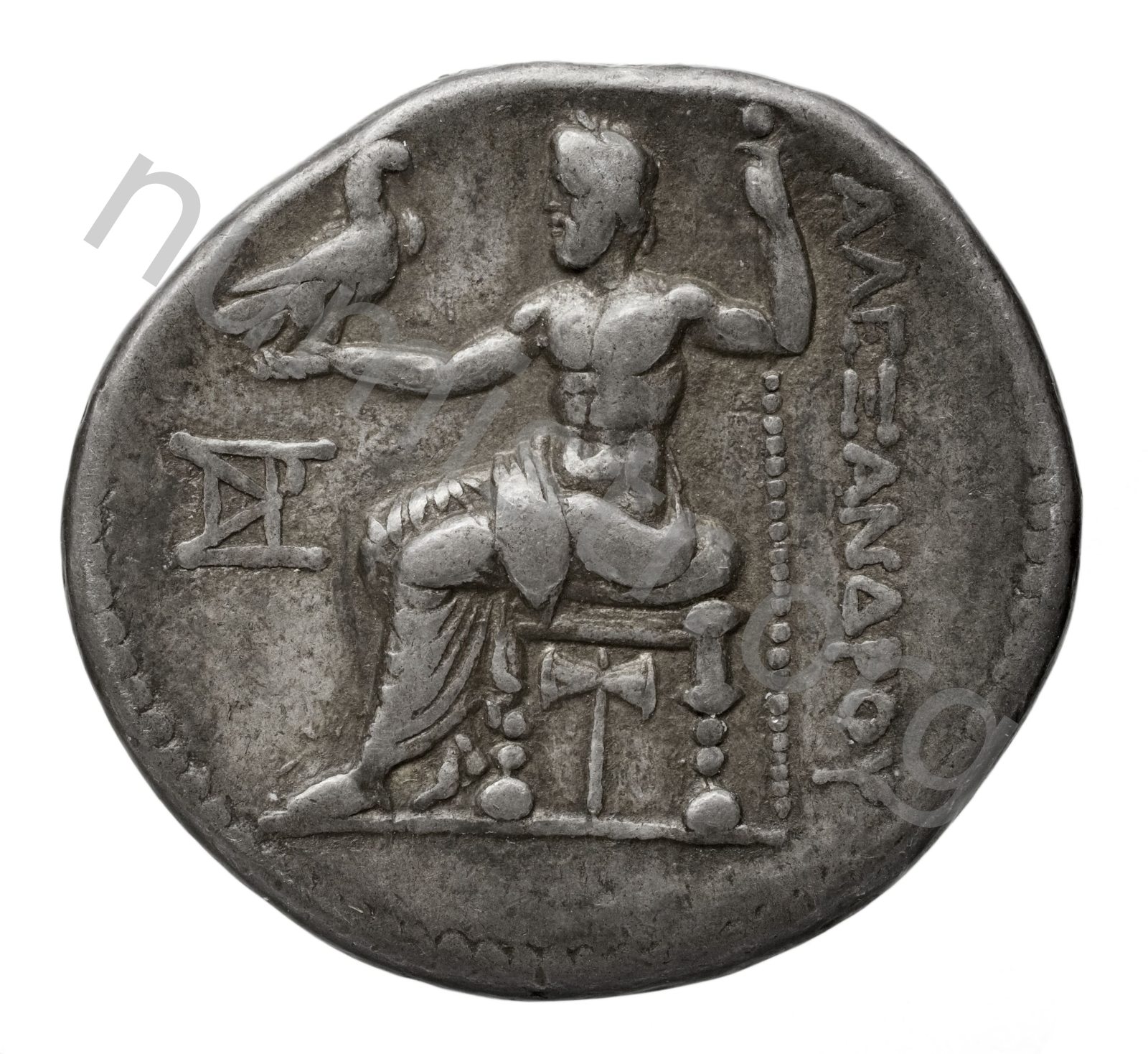 Zeus tabure-tahtta oturuyor sol elinde kartal sağ elinde asa var.