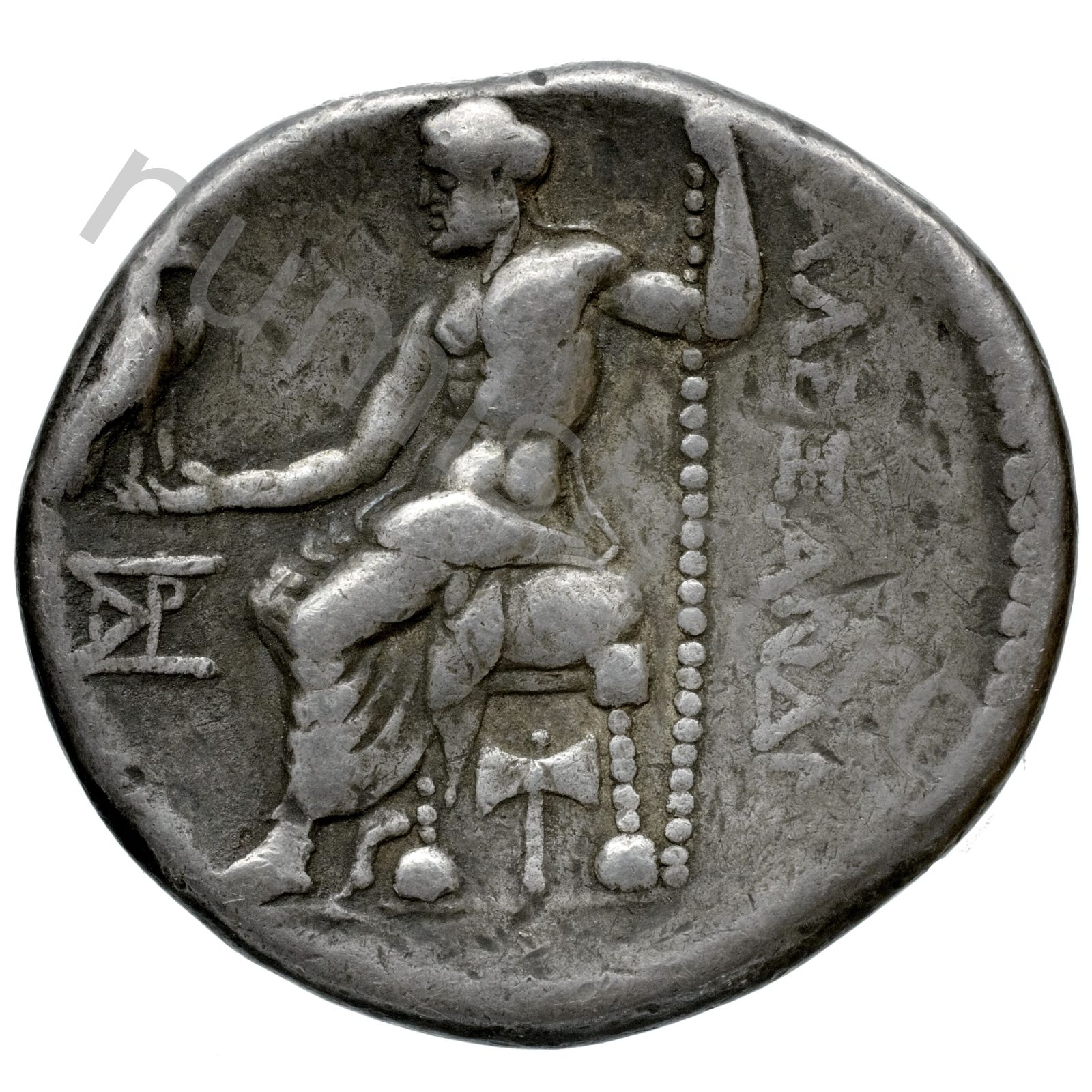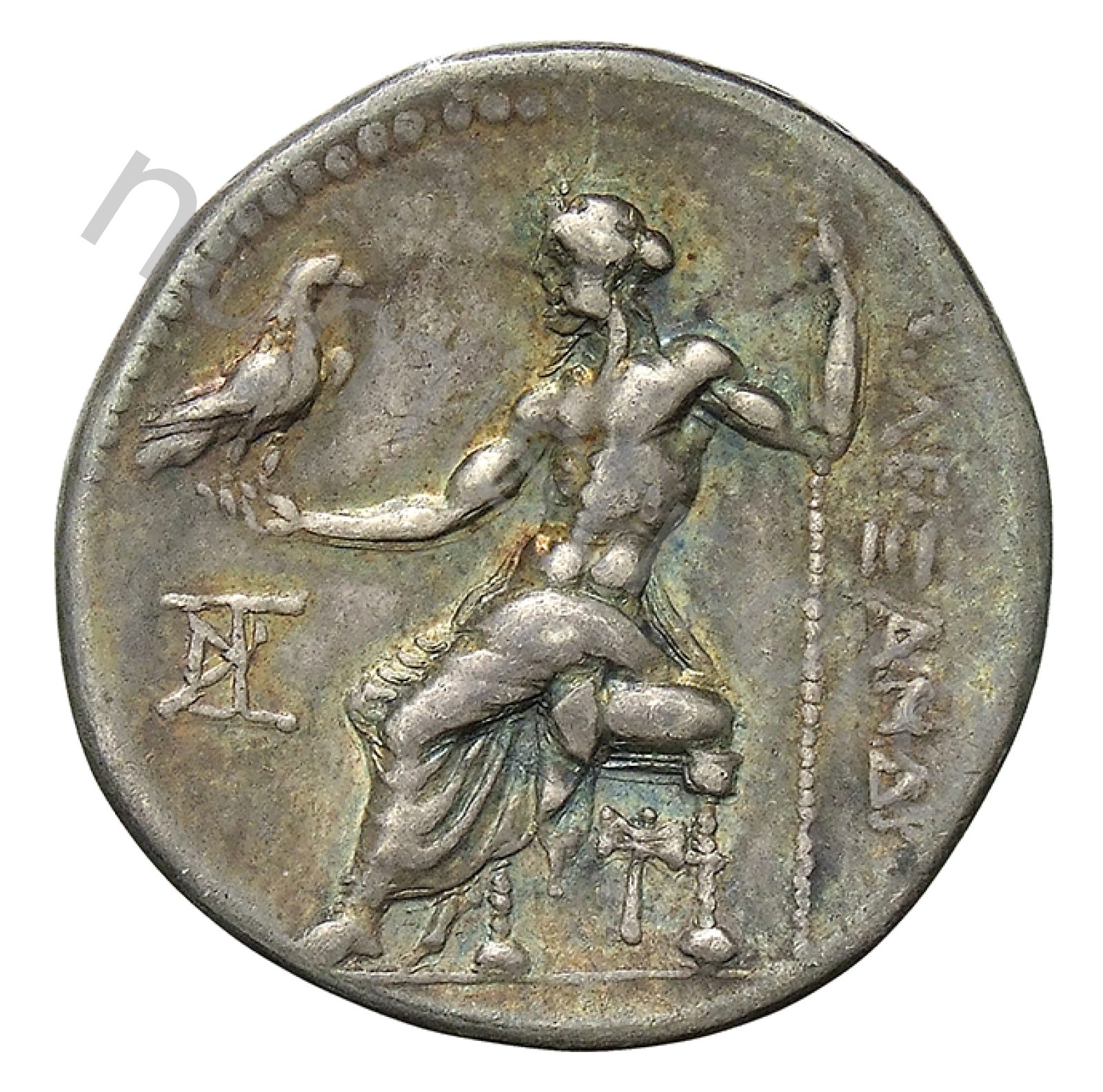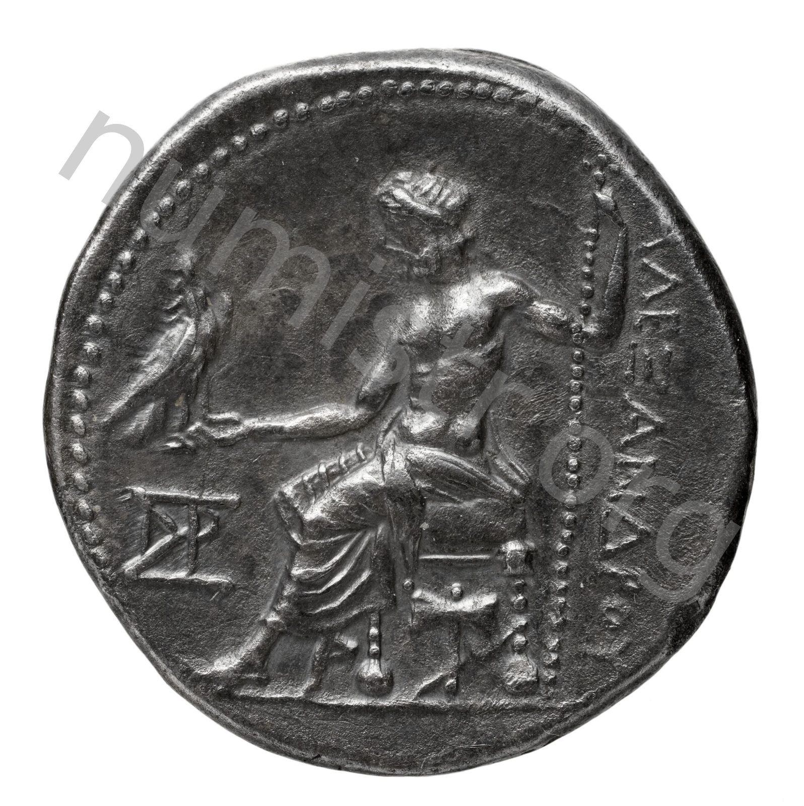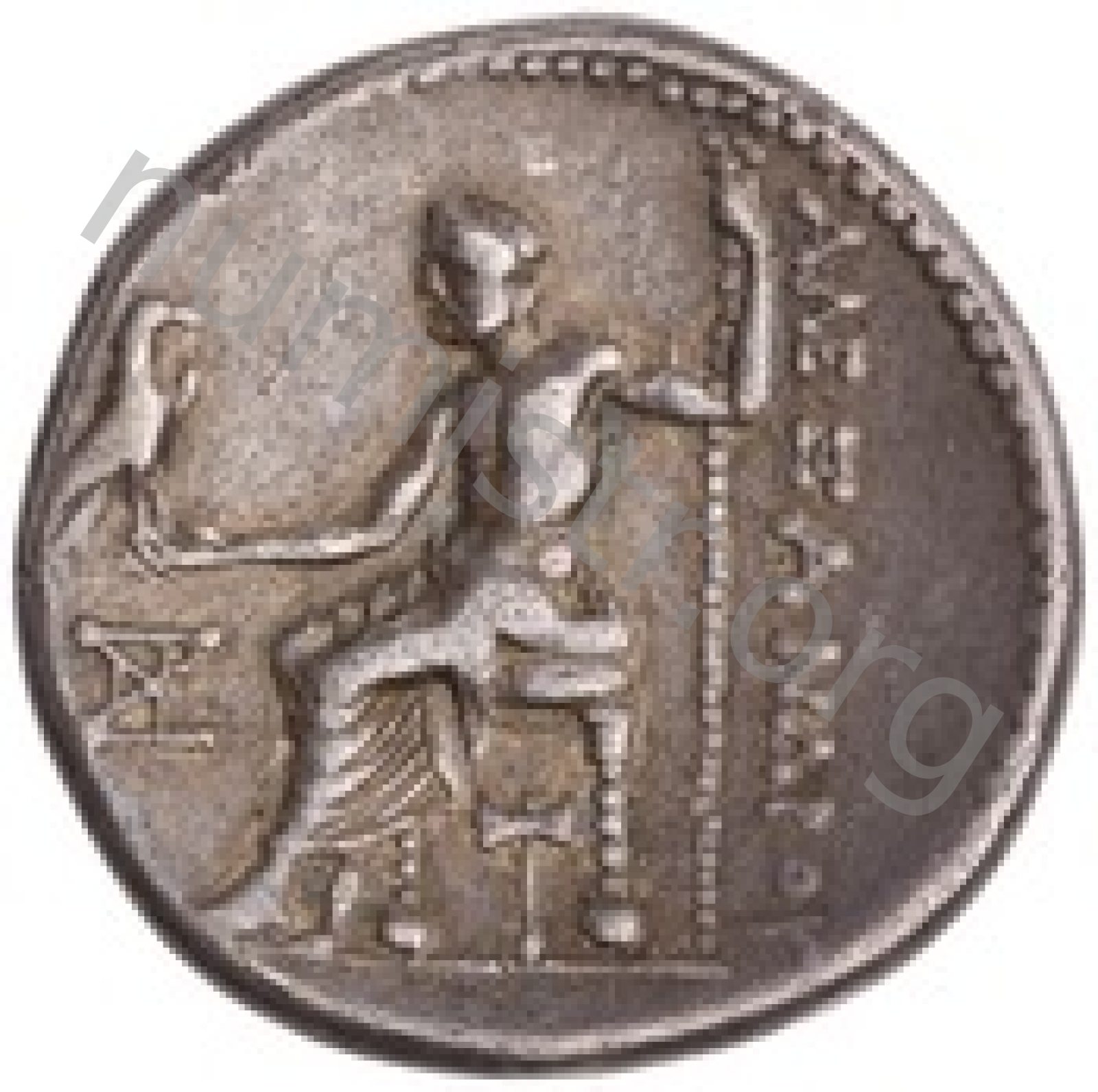 Zeus tabure-tahtta oturuyor sol elinde kartal sağ elinde asa var.