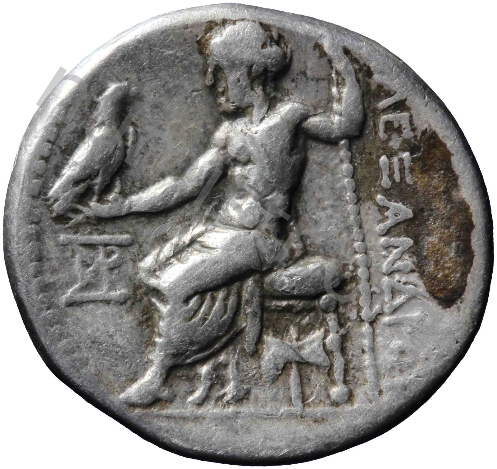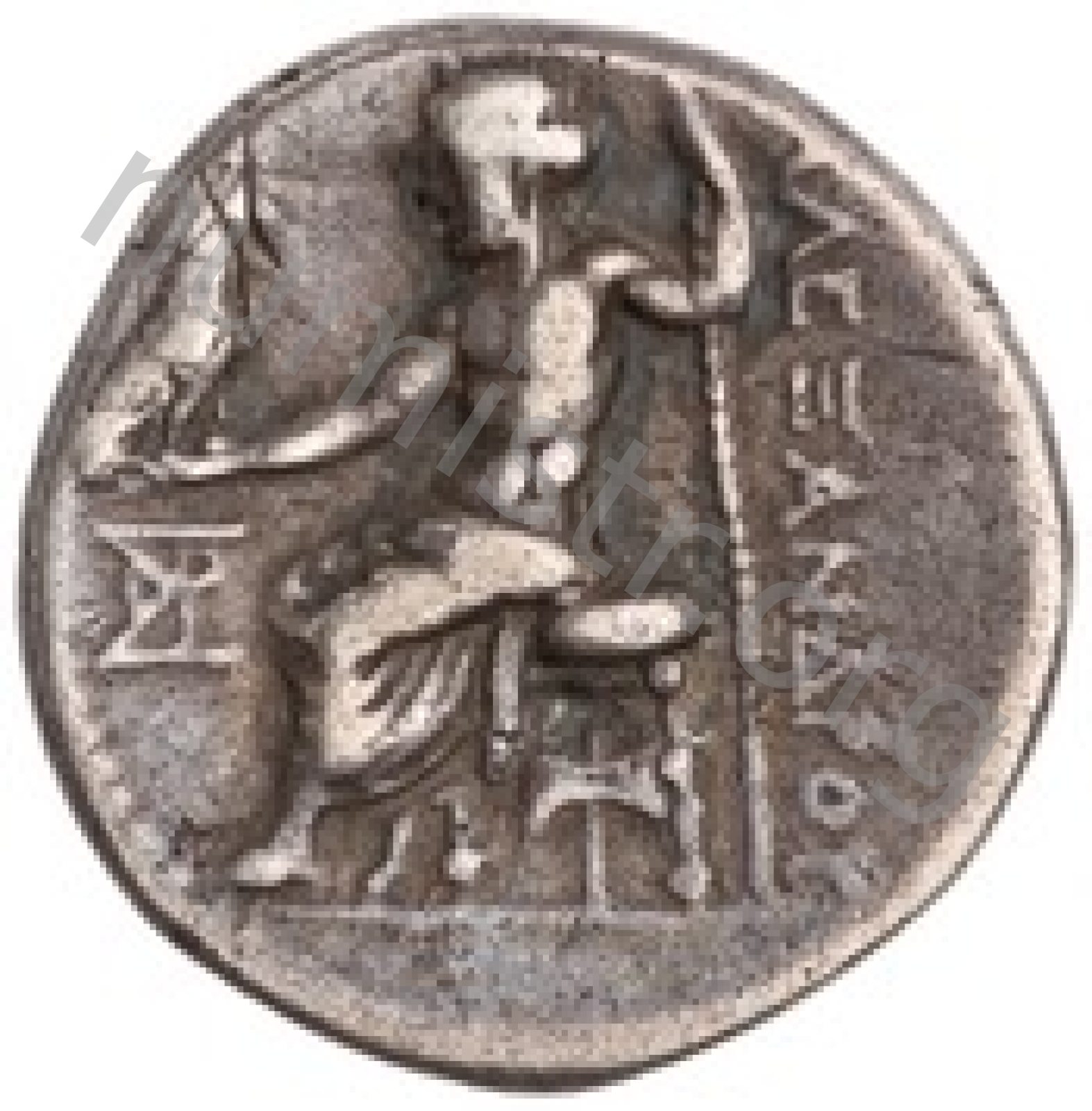 Zeus seated on stool-throne left eagle on outstretched right hand sceptre in left hand -[en]