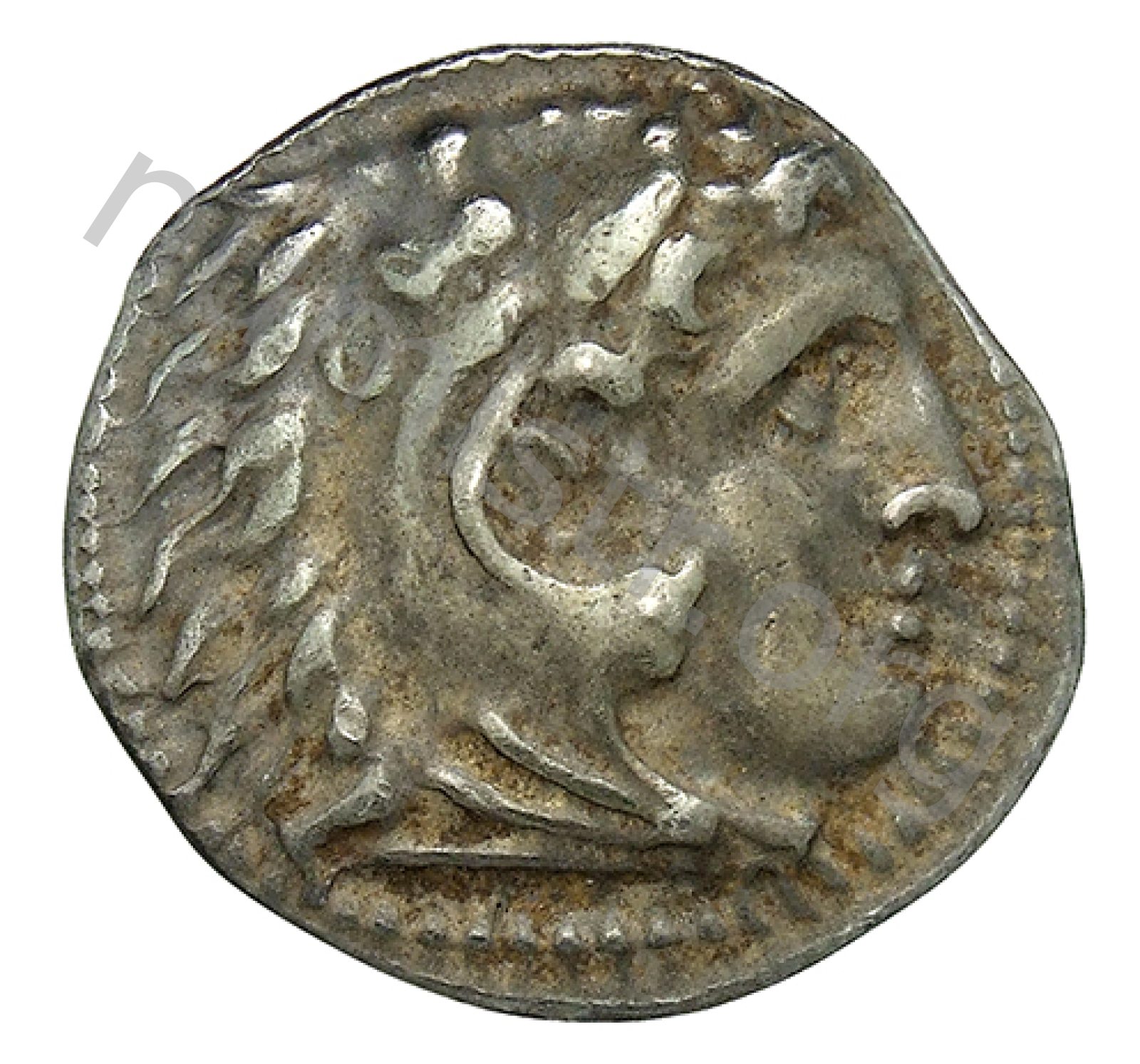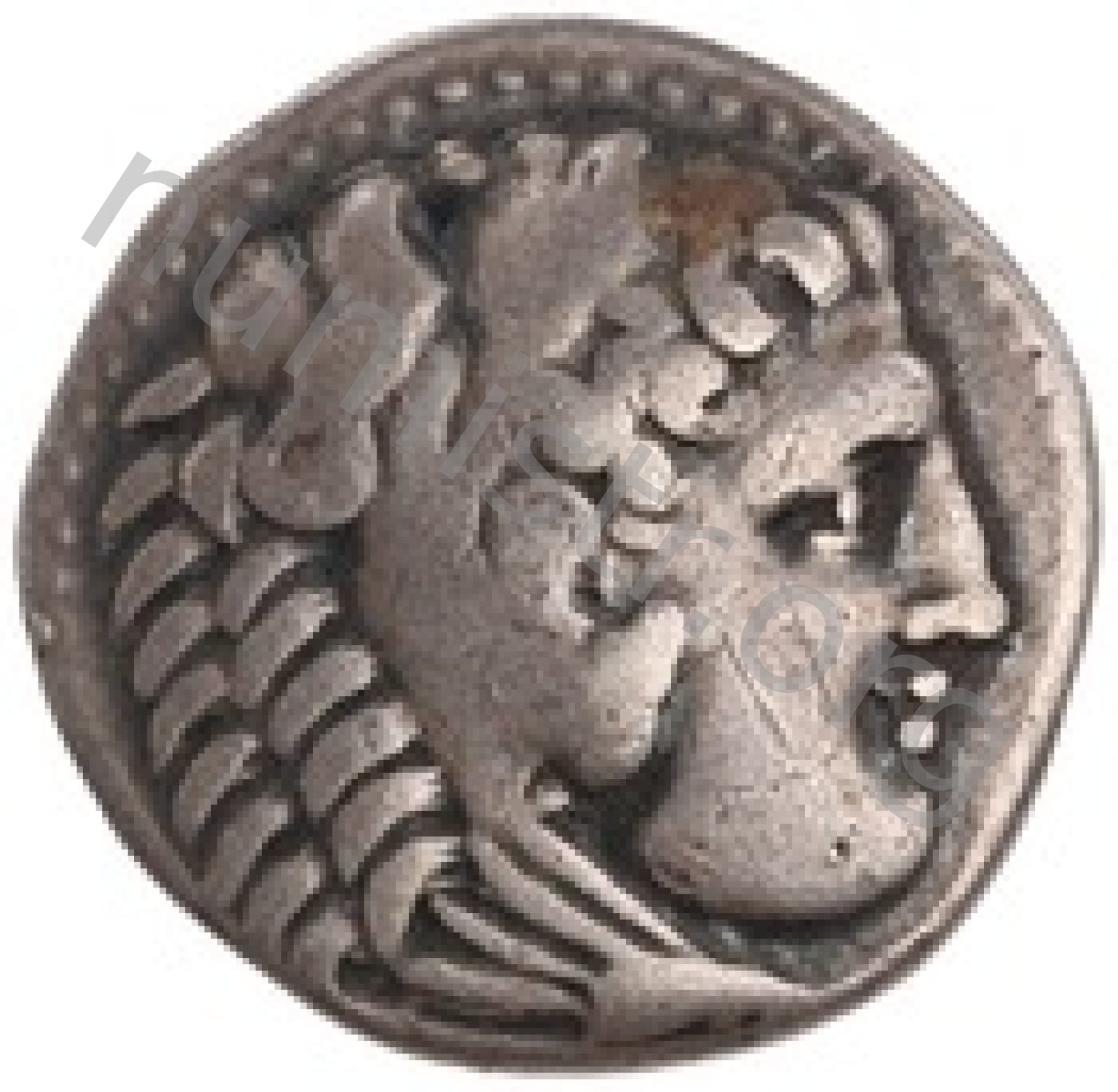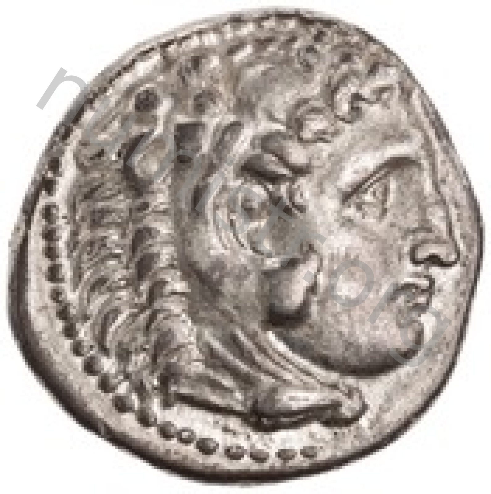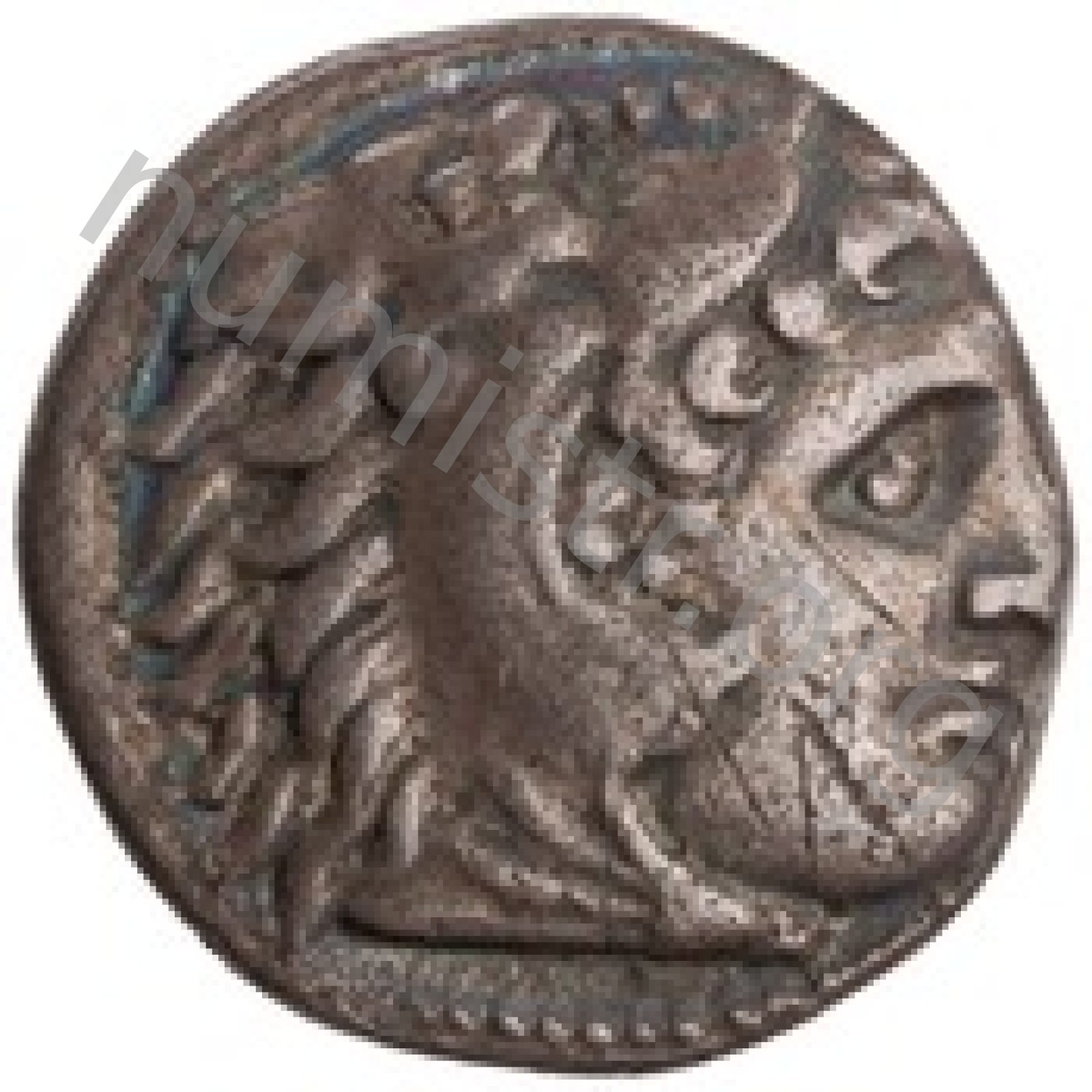 Head of beardless Heracles right wearing lion skin headdress -[en]