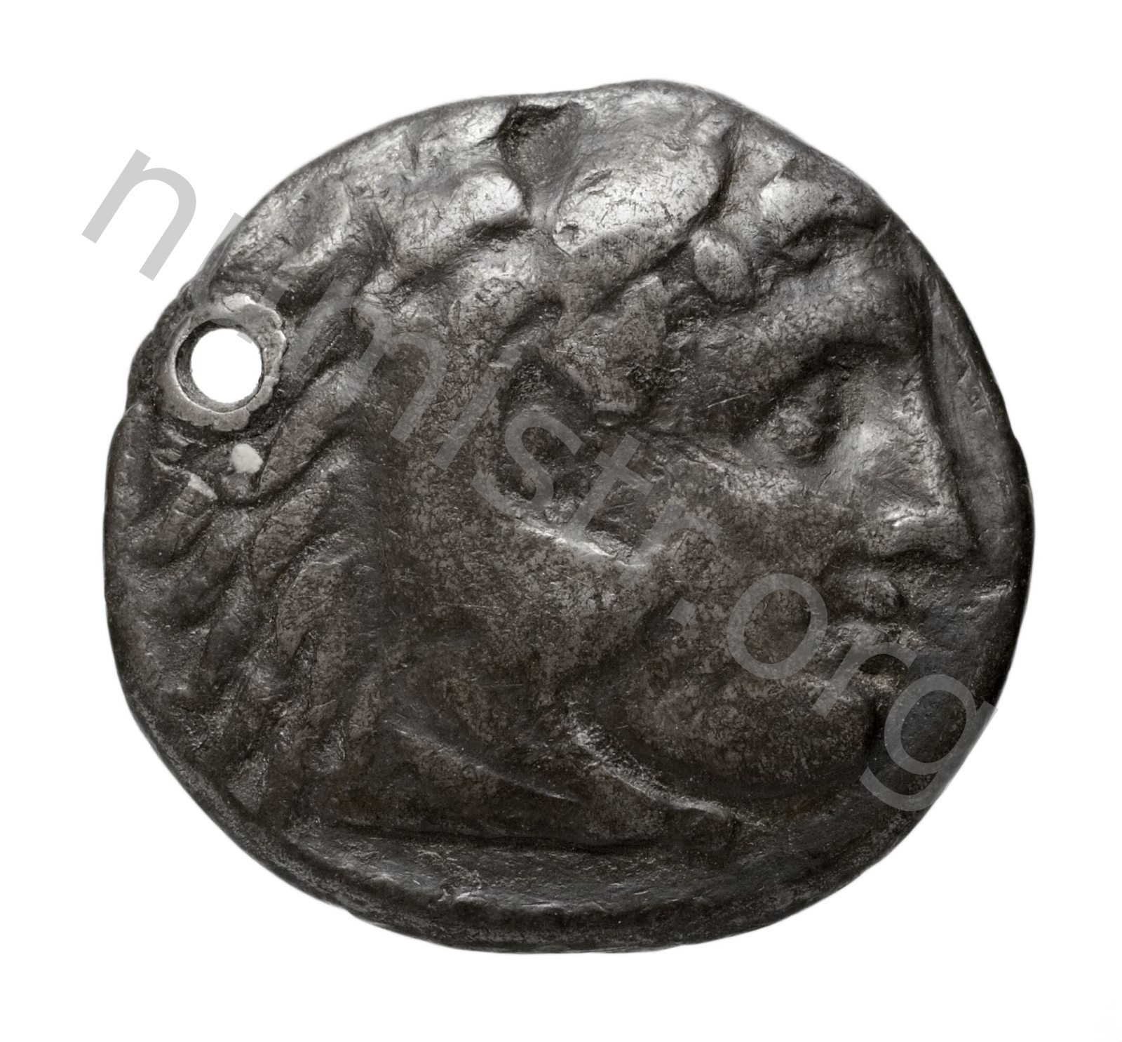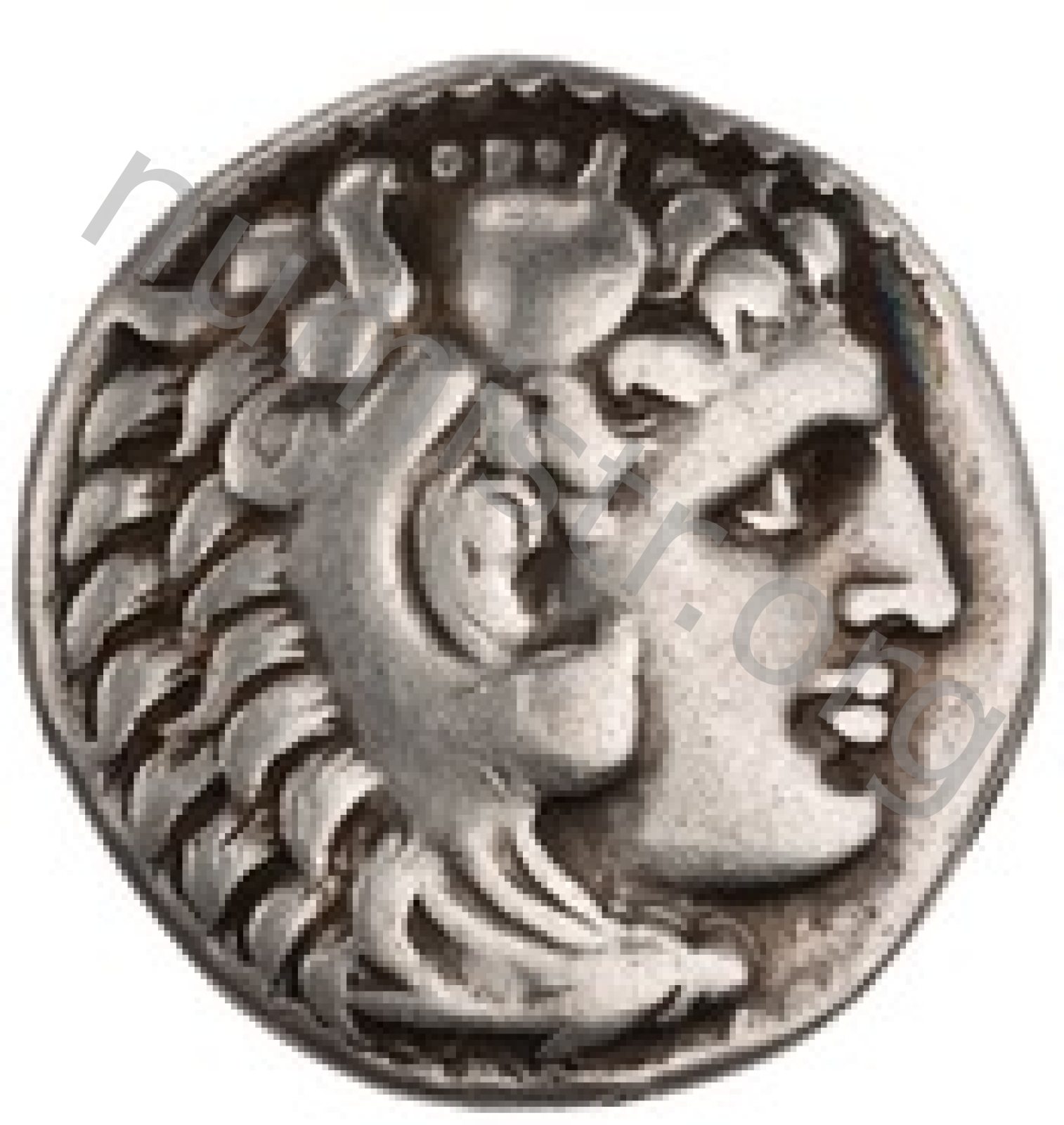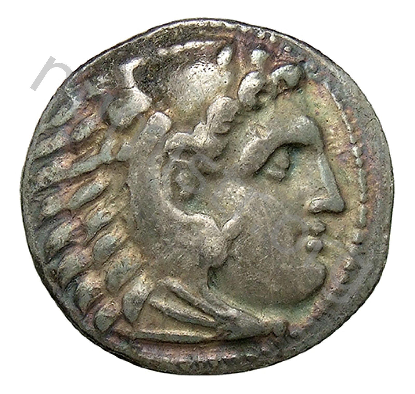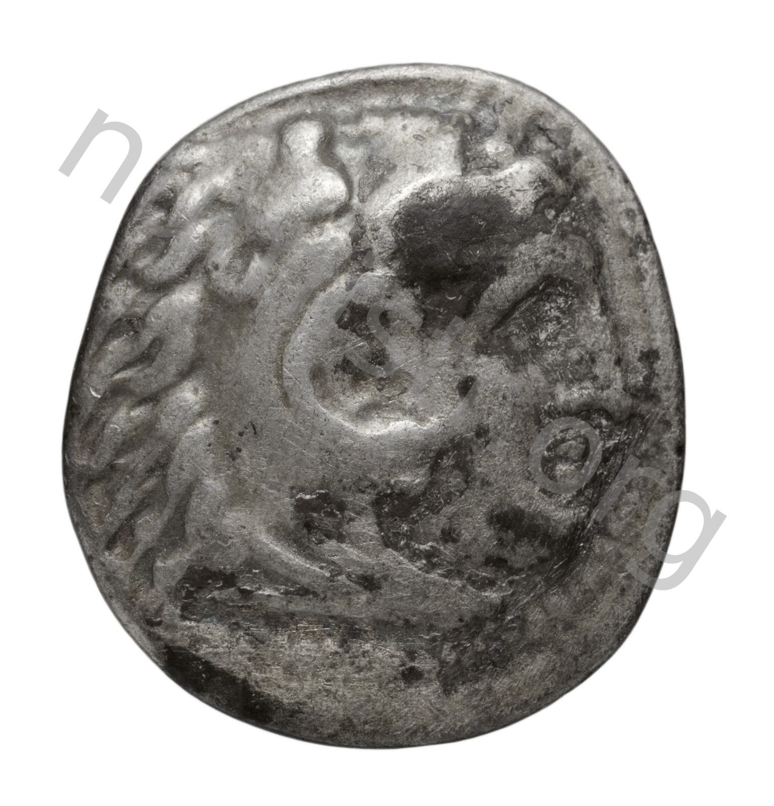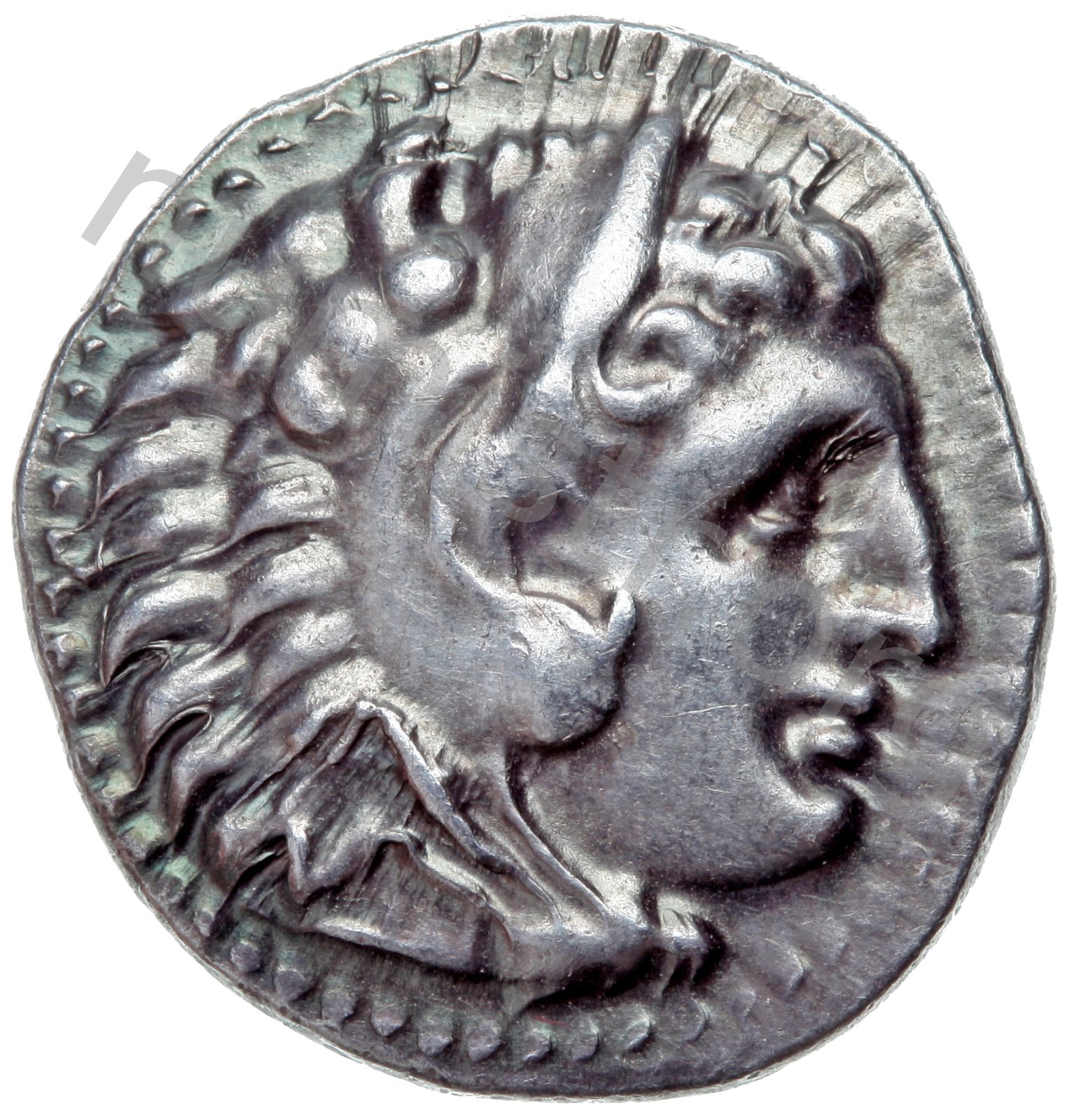 Head of beardless Heracles right wearing lion skin headdress -[en]