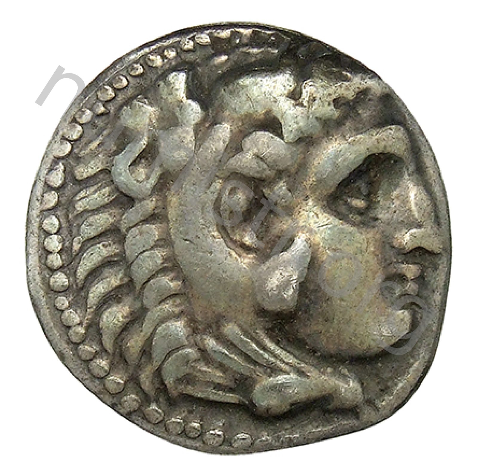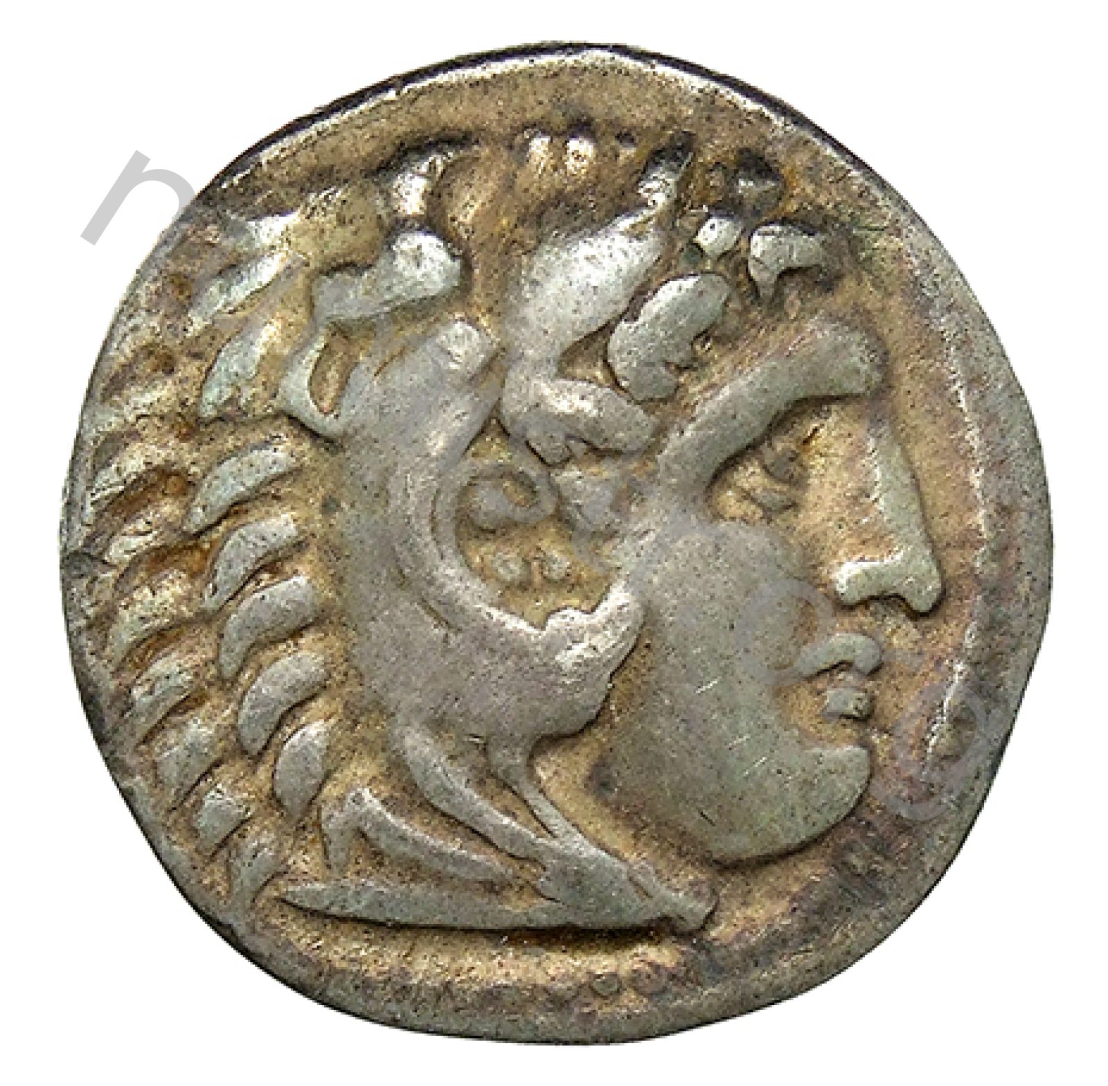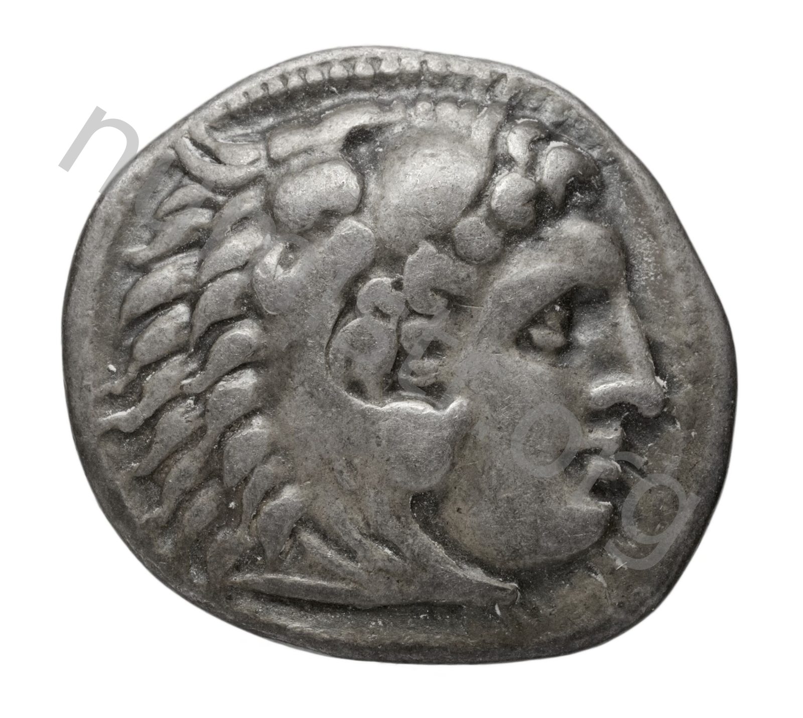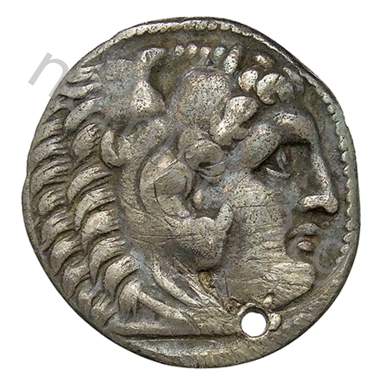 Head of beardless Heracles right wearing lion skin headdress -[en]