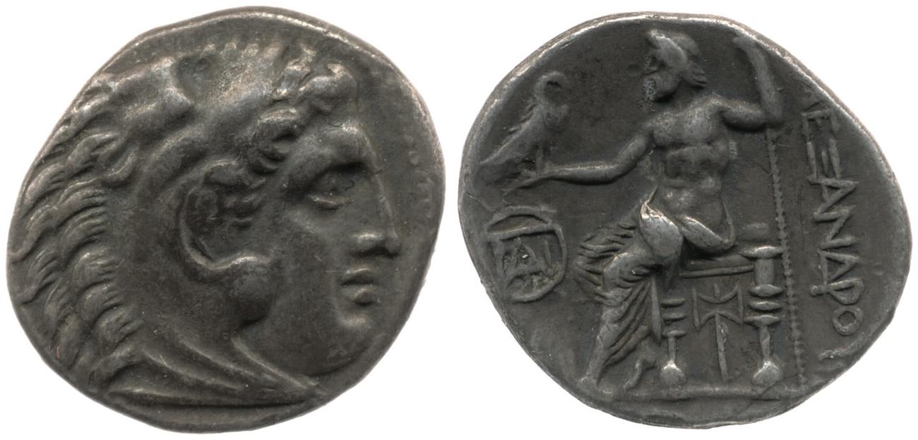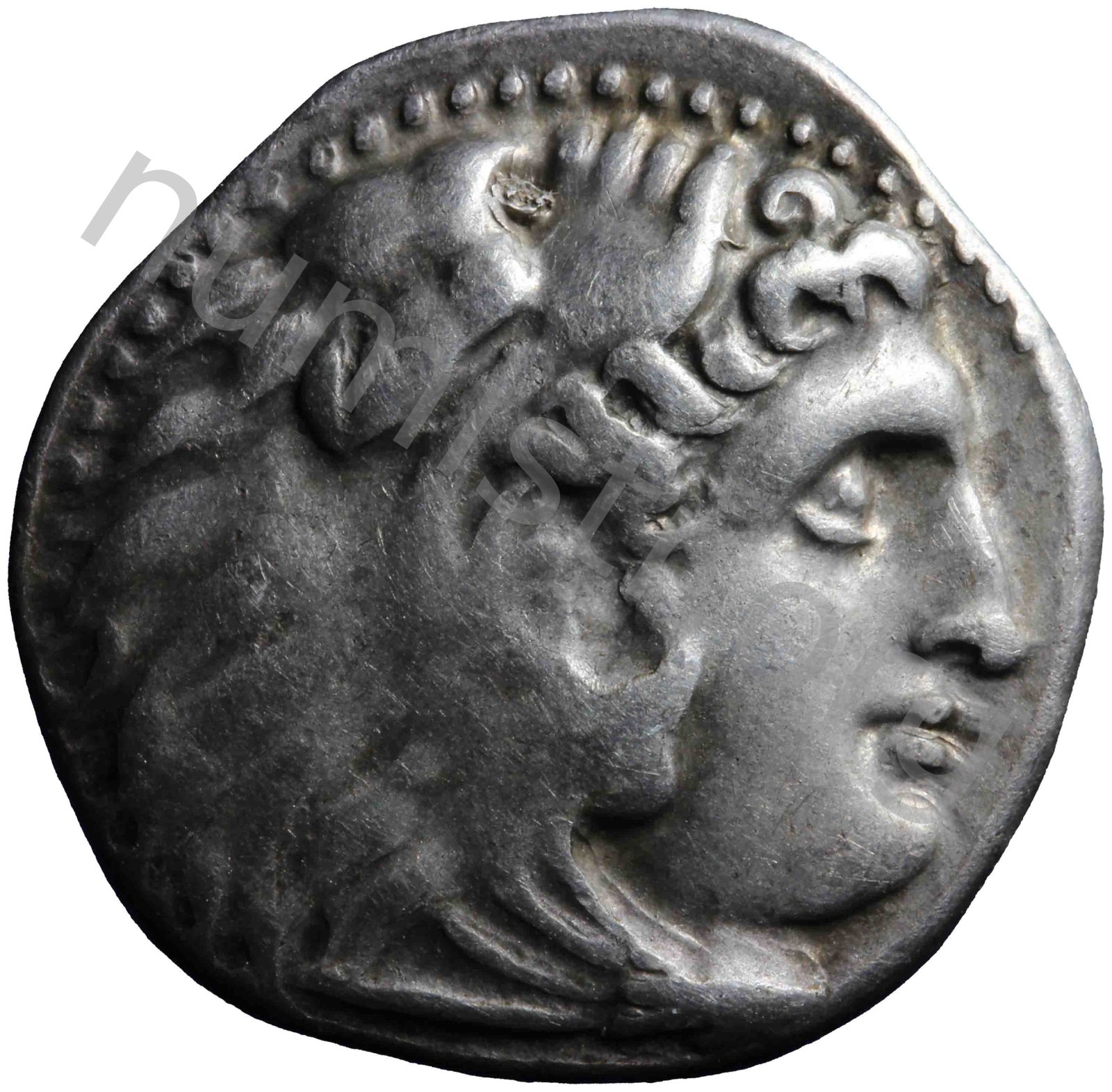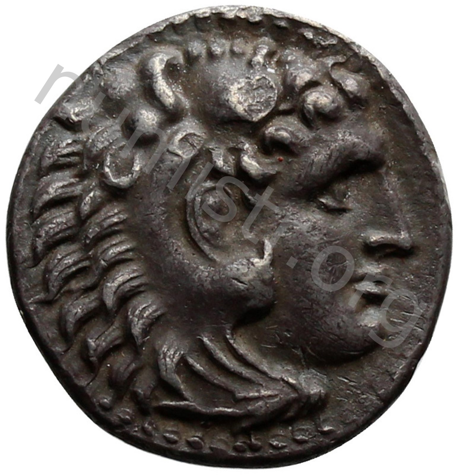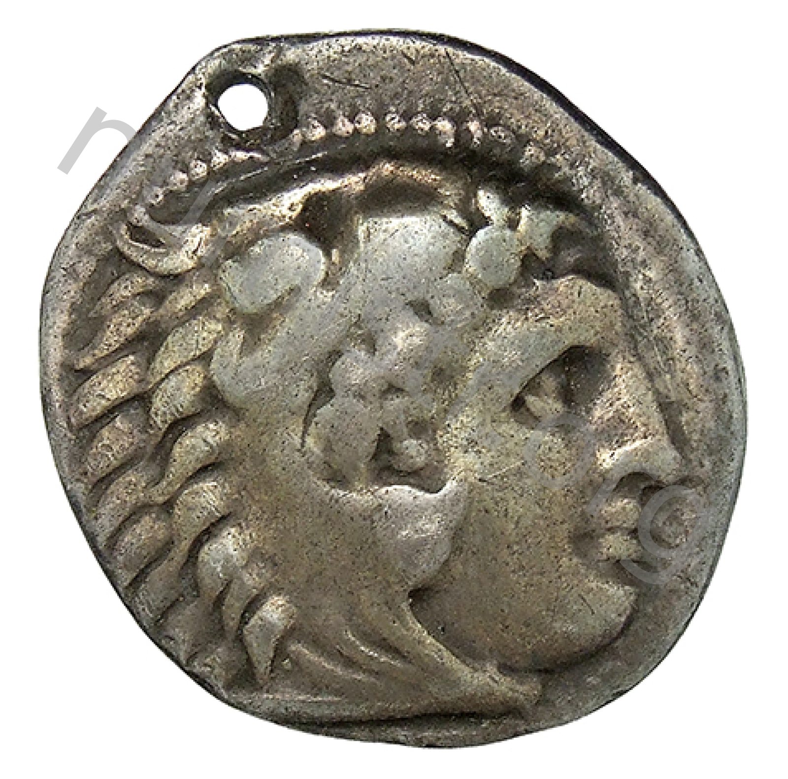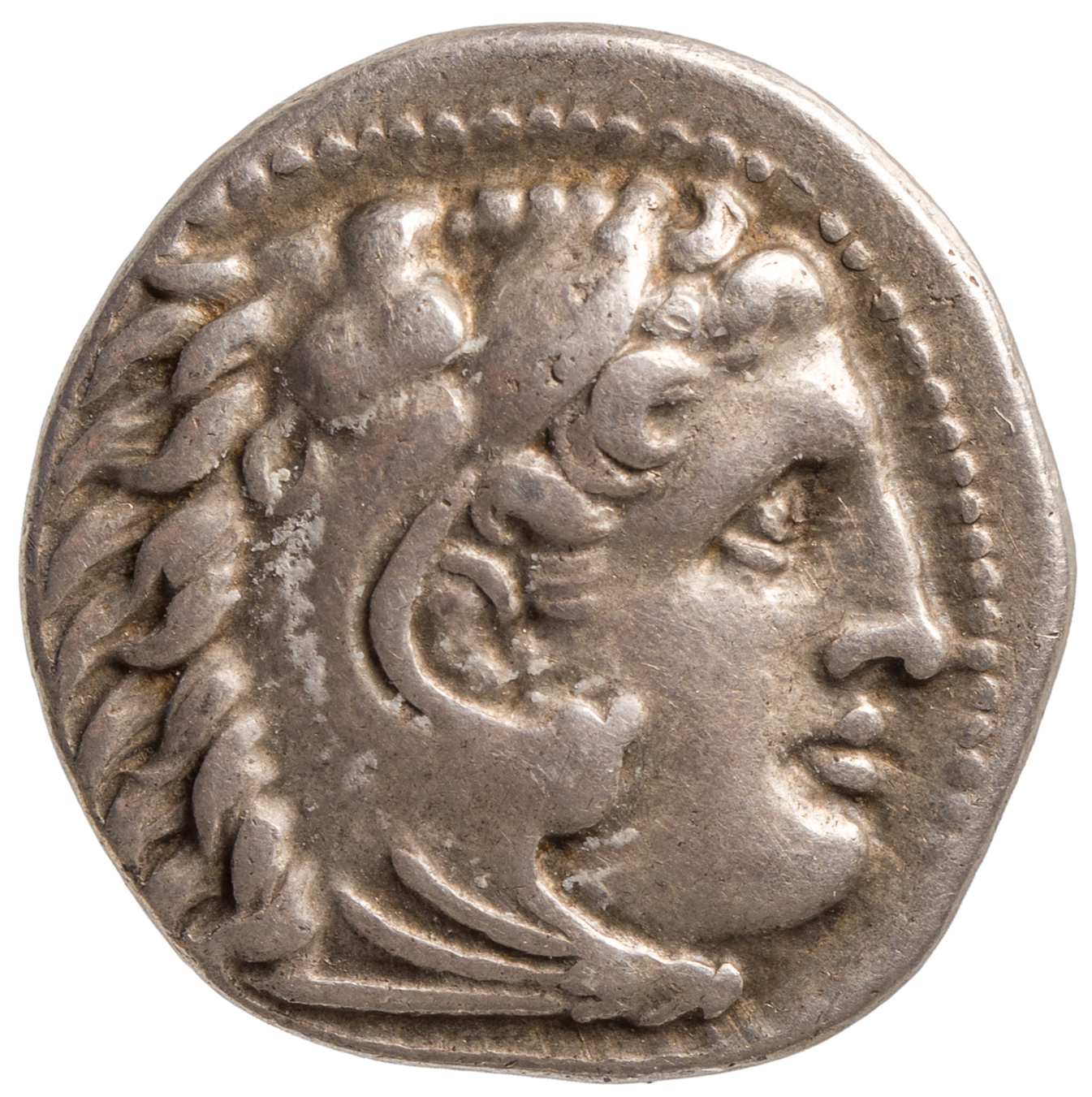 Head of beardless Heracles right wearing lion skin headdress -[en]