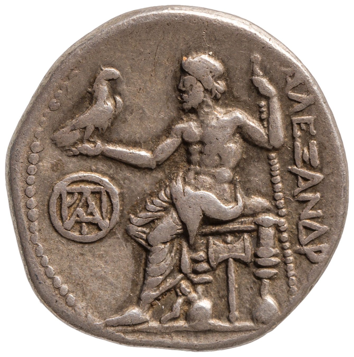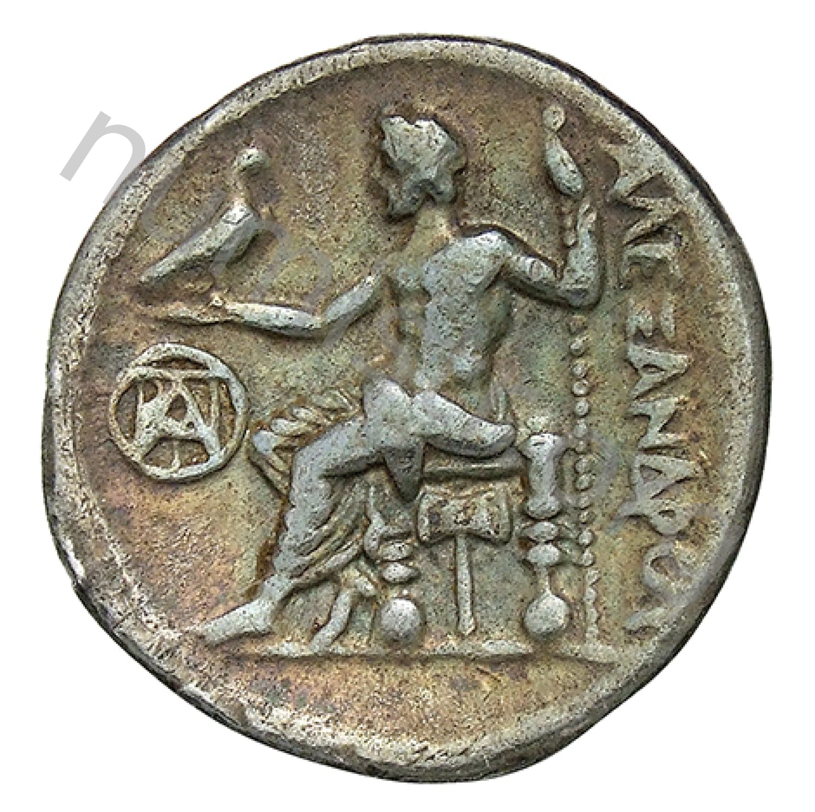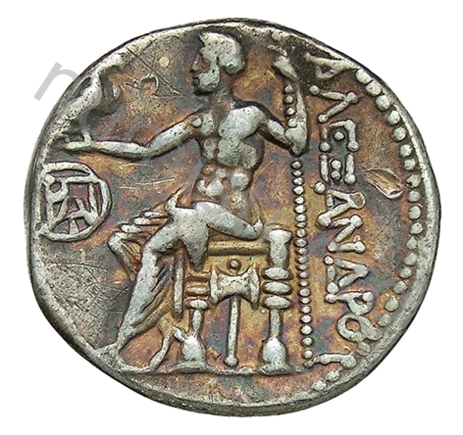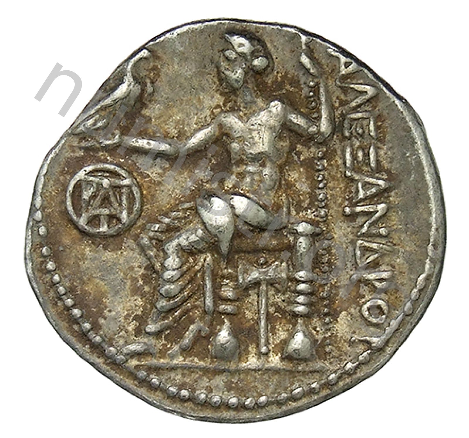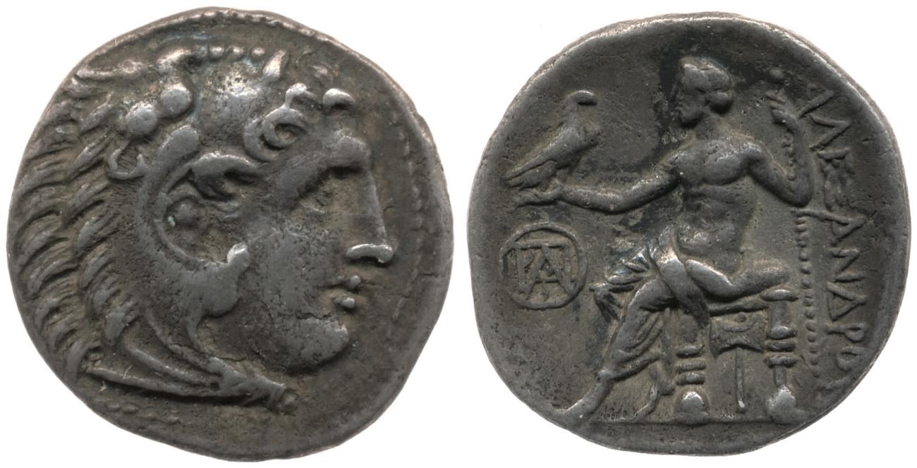 Head of beardless Heracles right wearing lion skin headdress -[en]