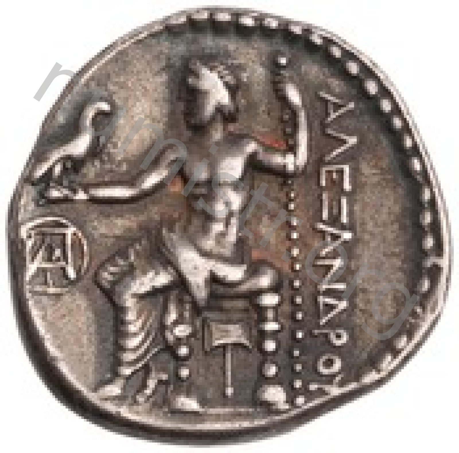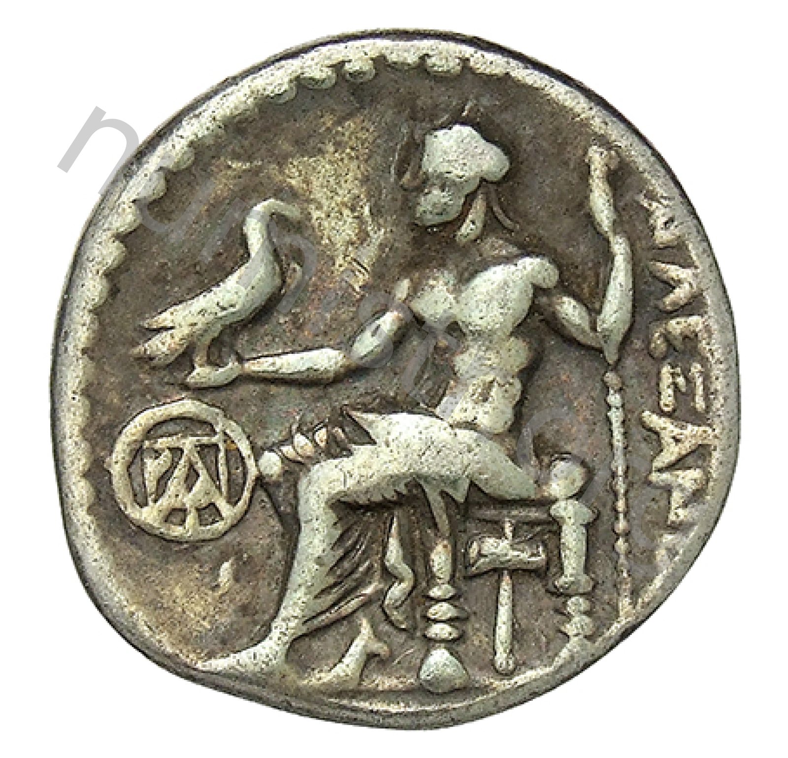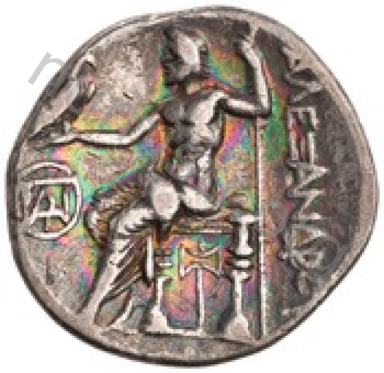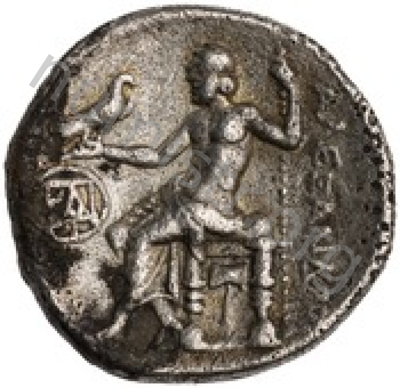 Zeus tabure-tahtta oturuyor sol elinde kartal sağ elinde asa var.