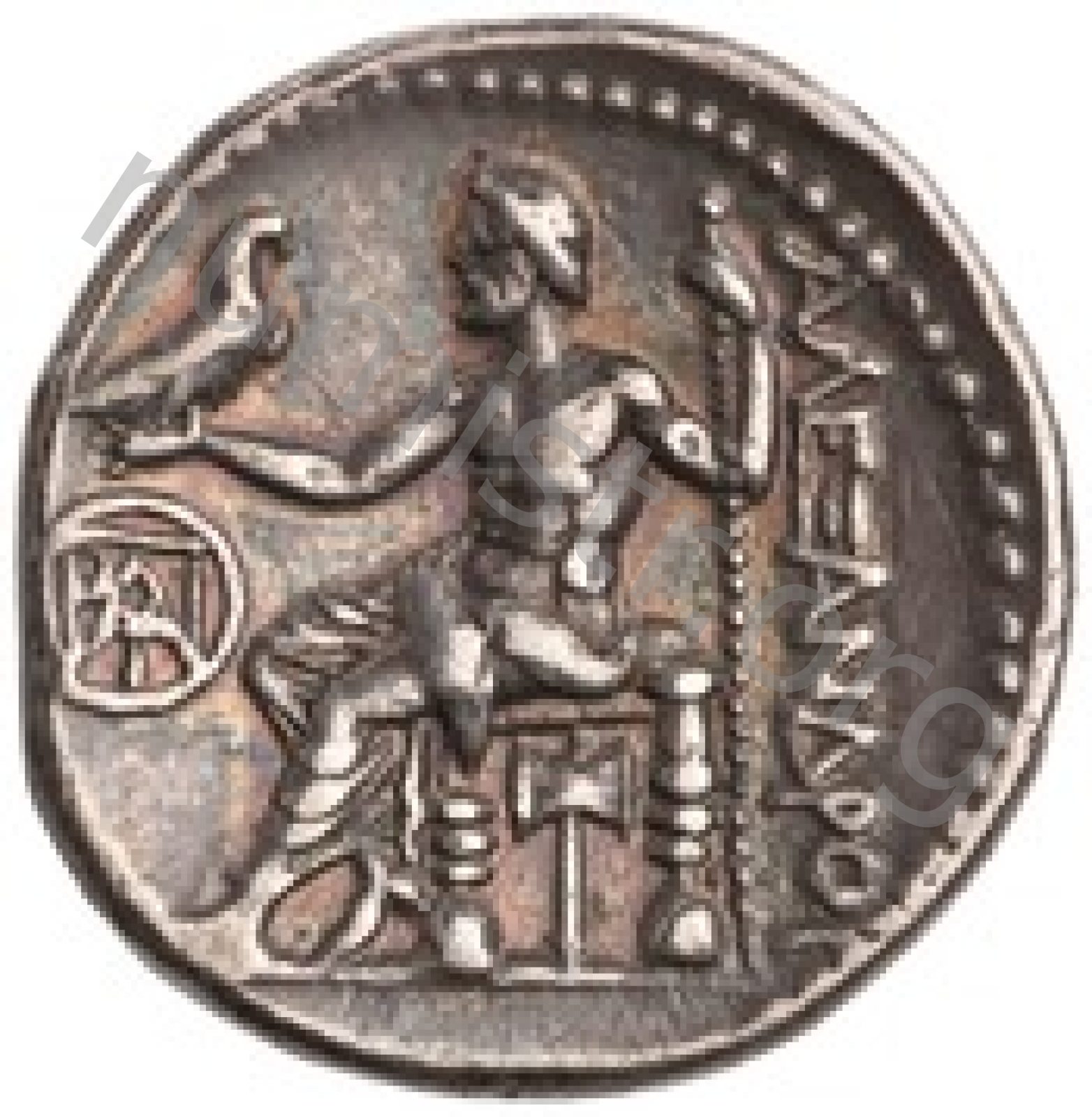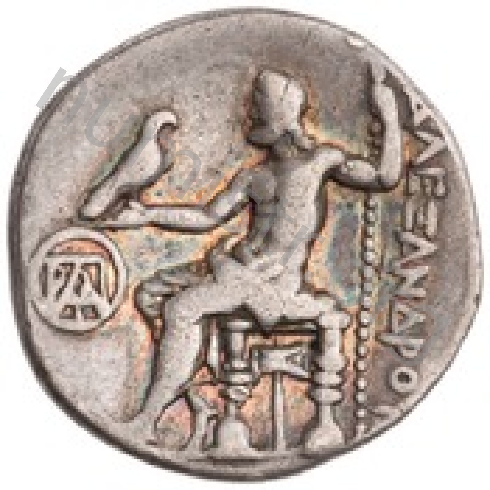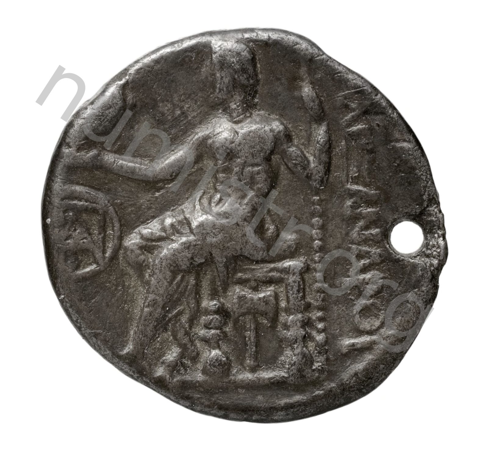 Zeus tabure-tahtta oturuyor sol elinde kartal sağ elinde asa var.