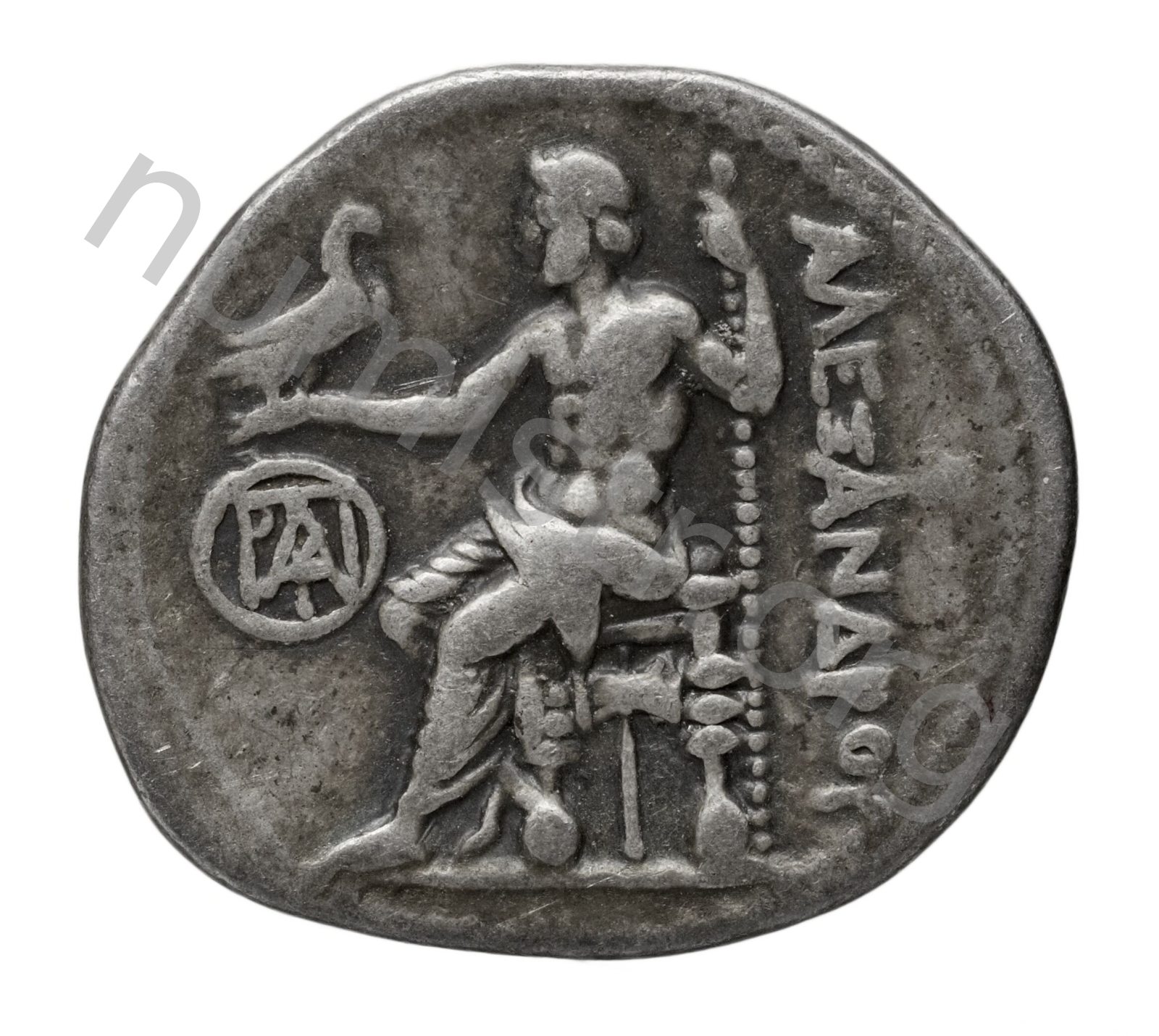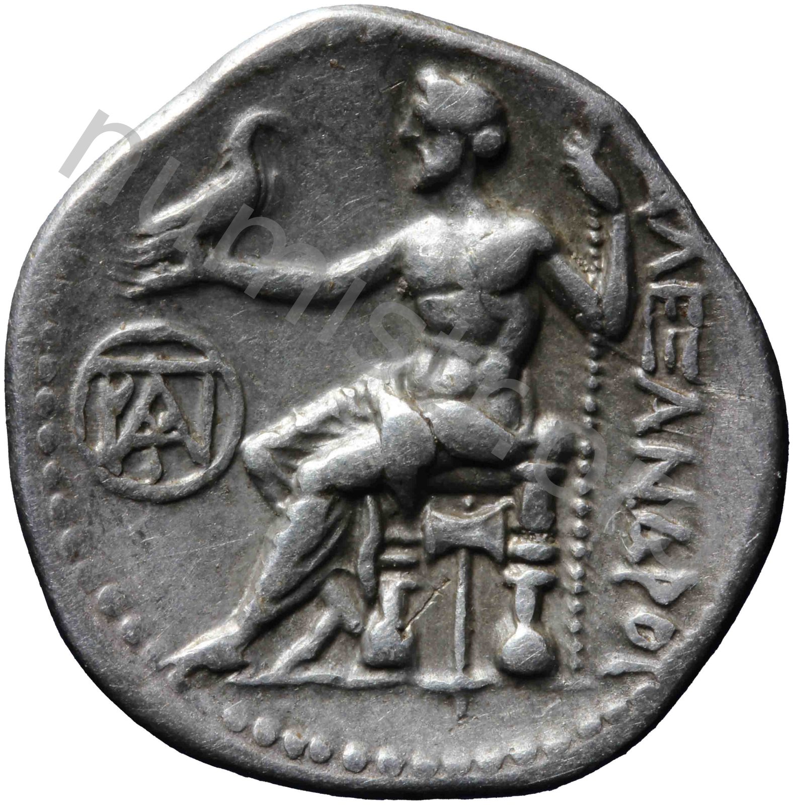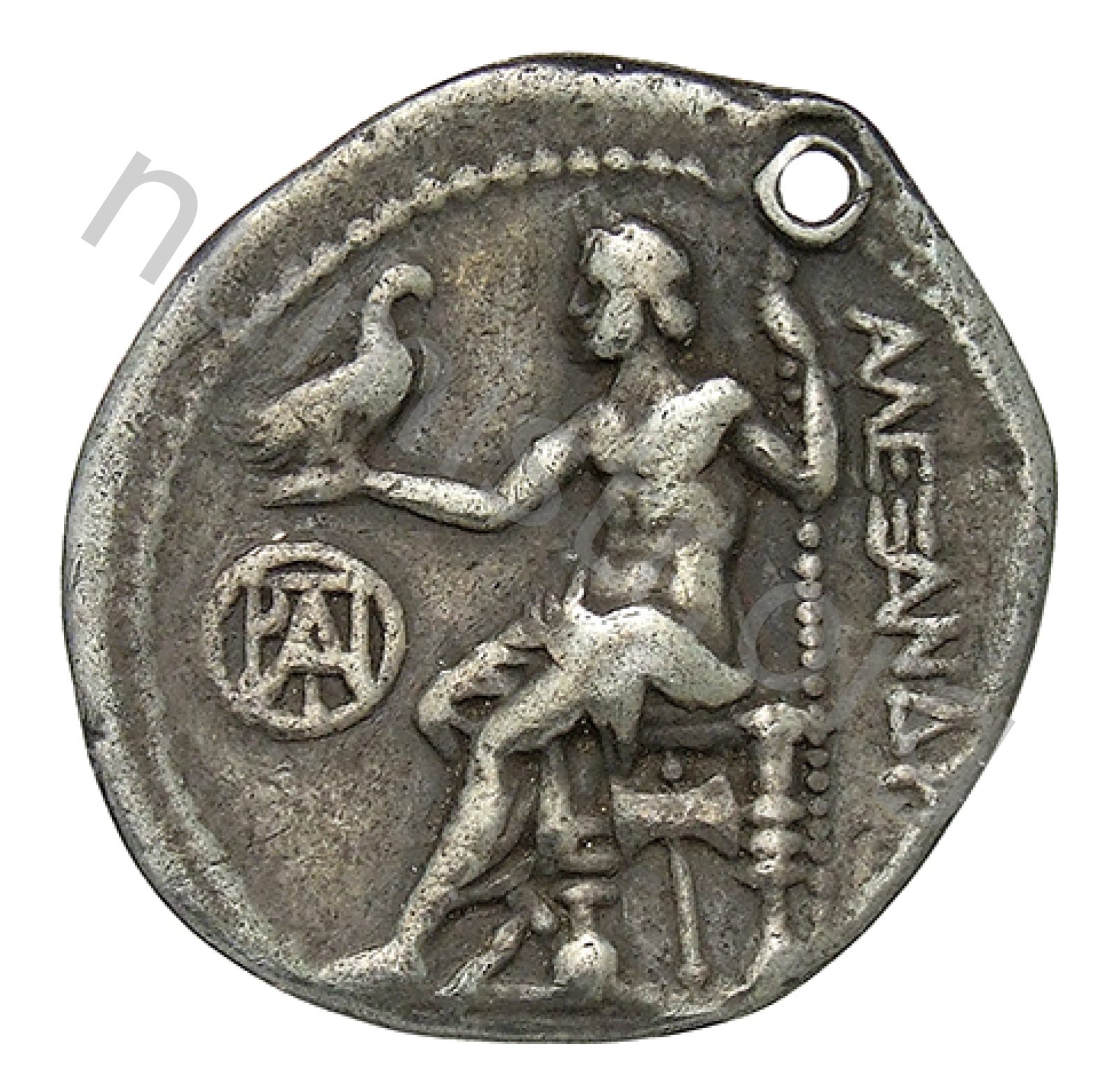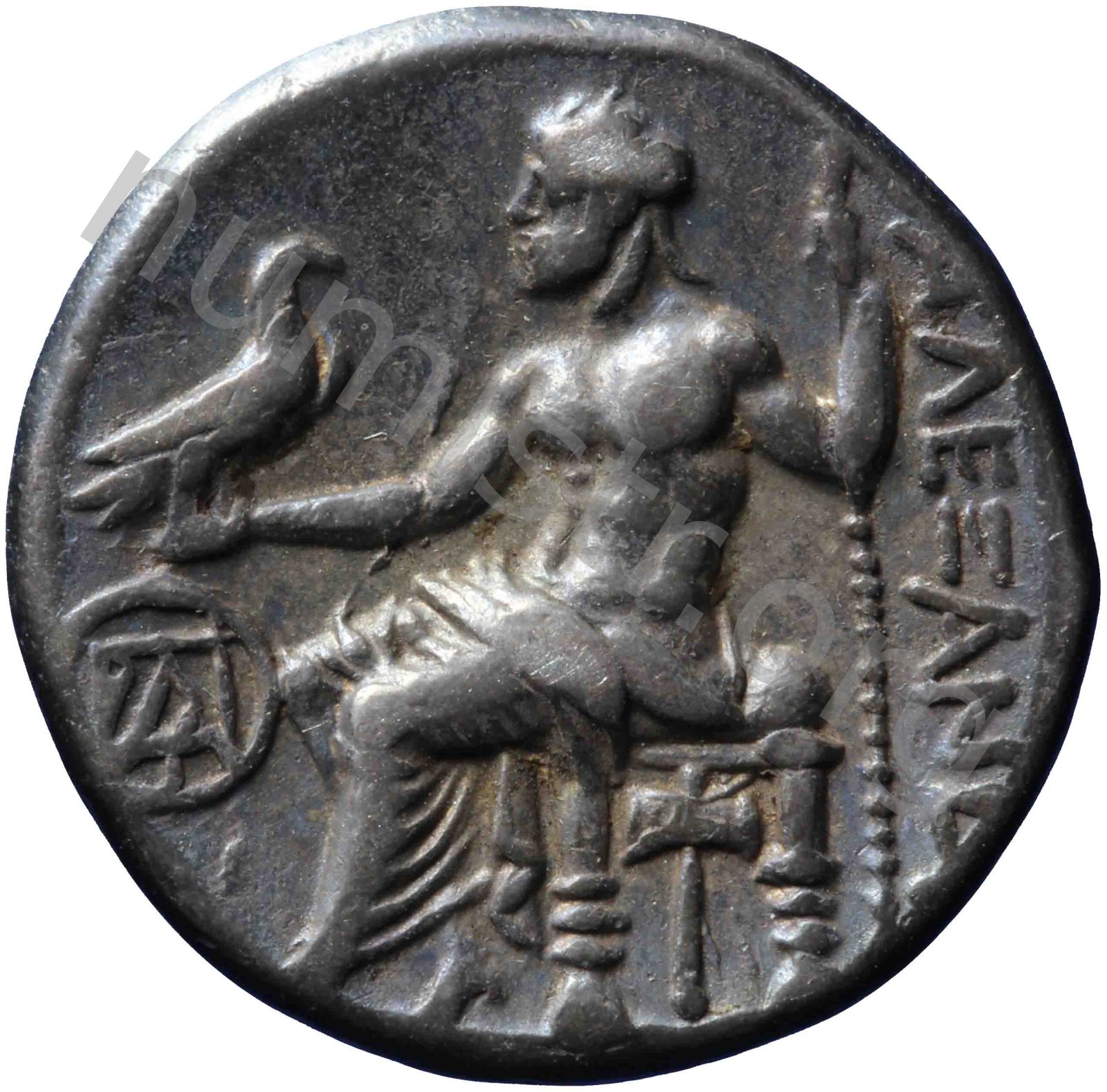 Zeus tabure-tahtta oturuyor sol elinde kartal sağ elinde asa var.