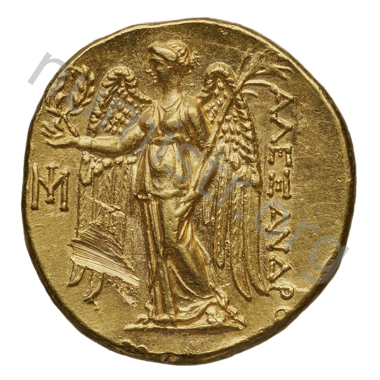 Nike standing left holding wreath in right hand and palm in her left hand -[en]