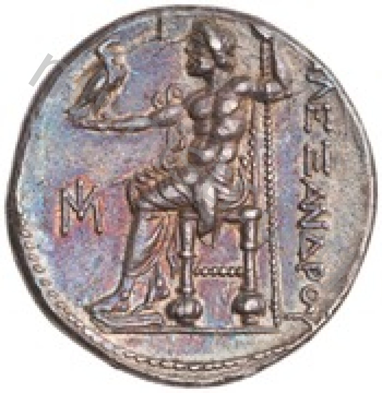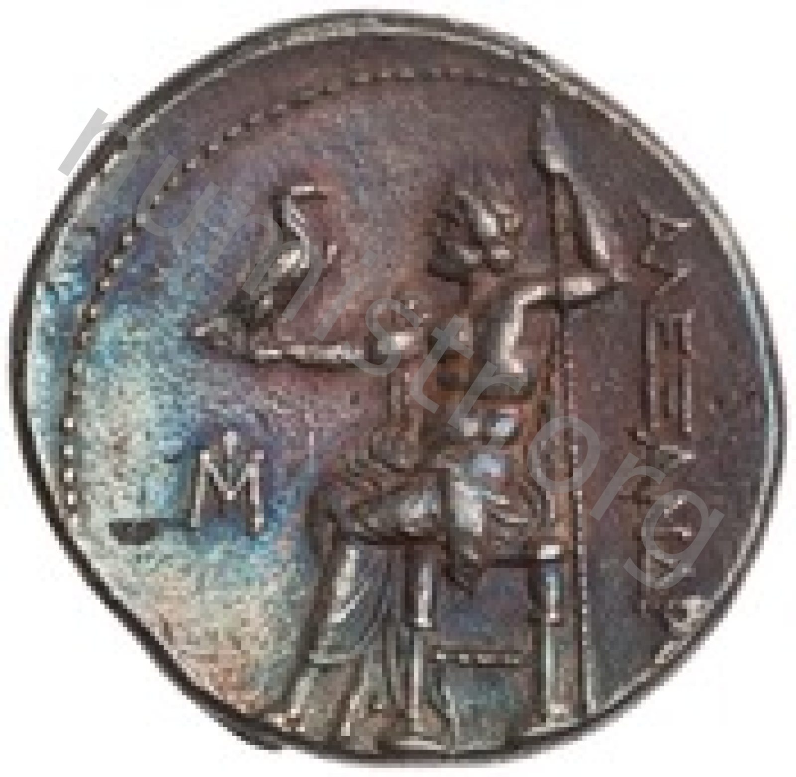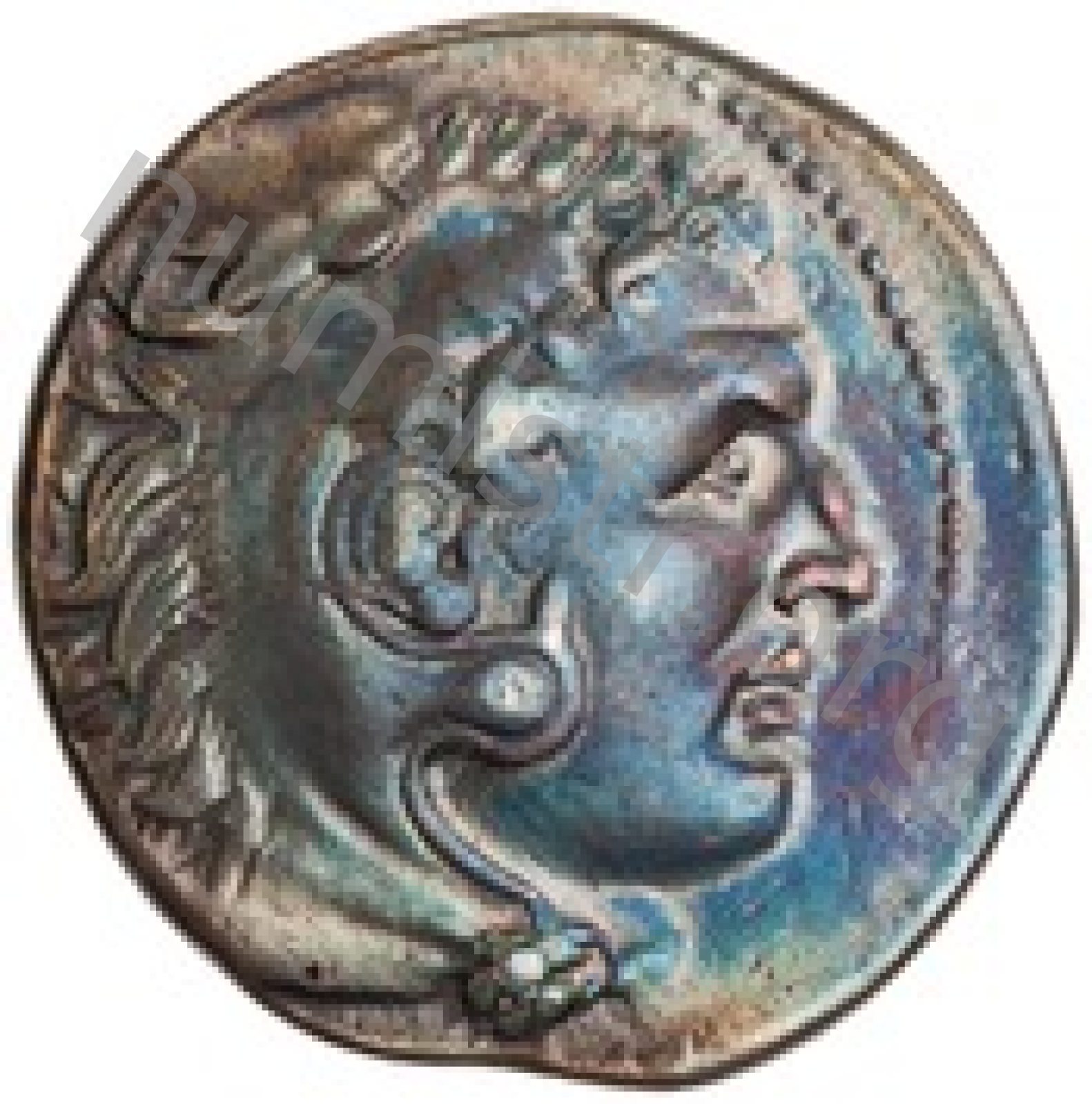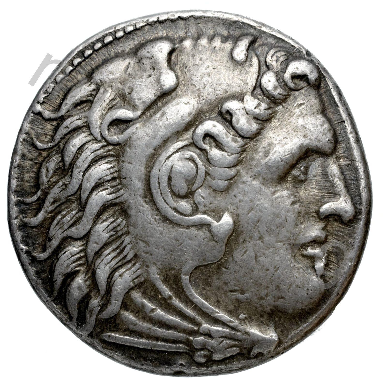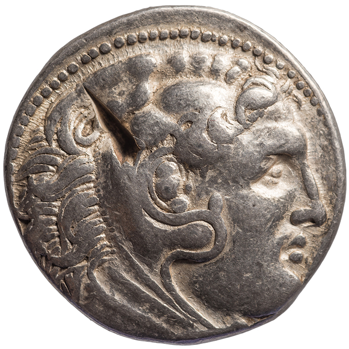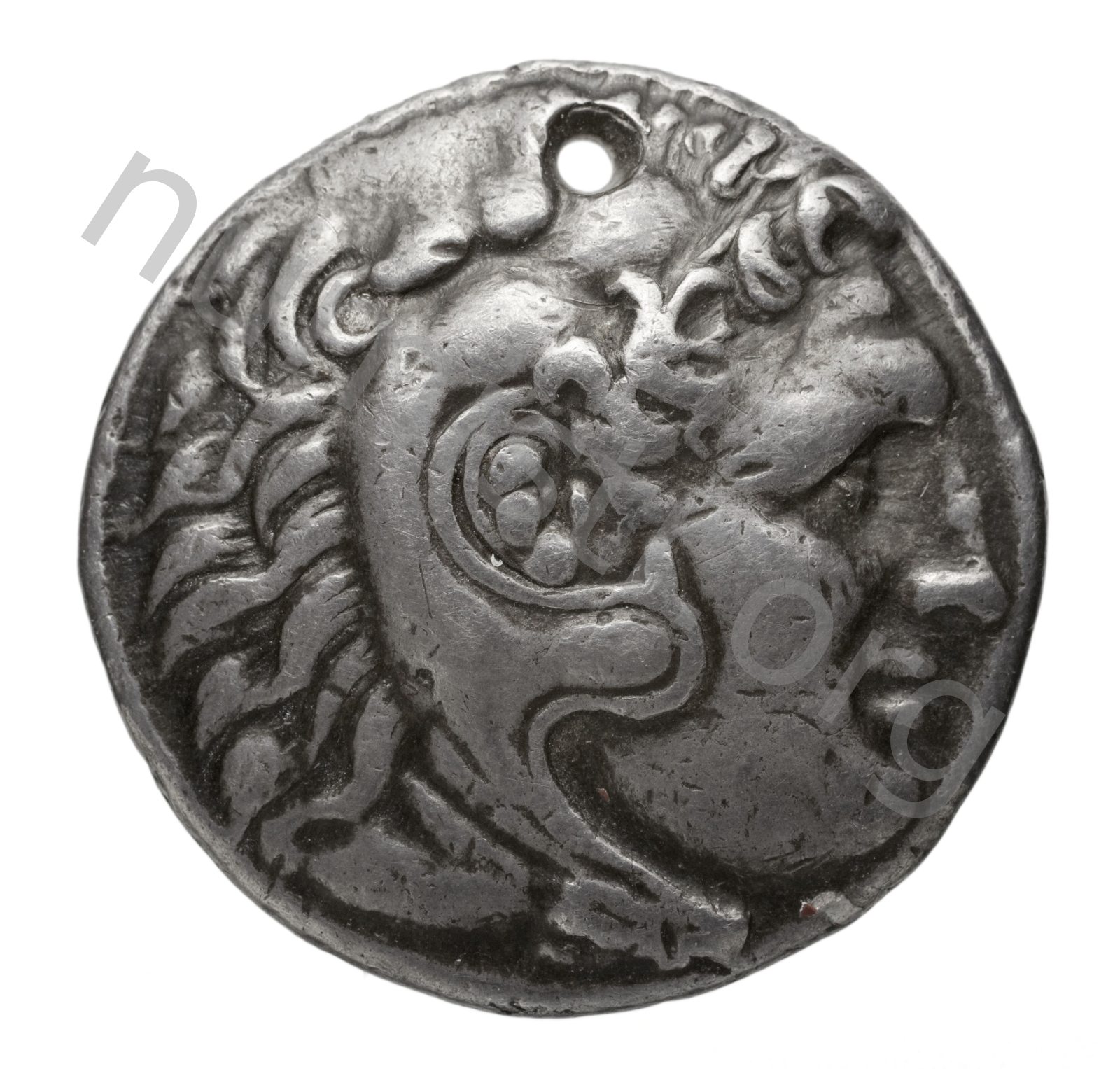 Head of beardless Heracles right wearing lion skin headdress -[en]
