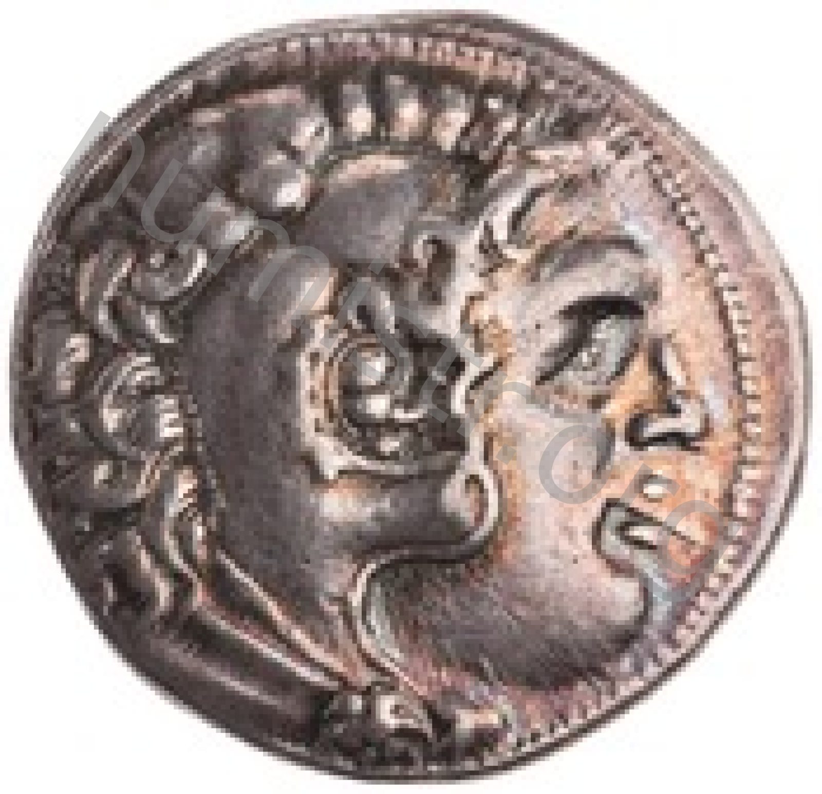 Head of beardless Heracles right wearing lion skin headdress -[en]