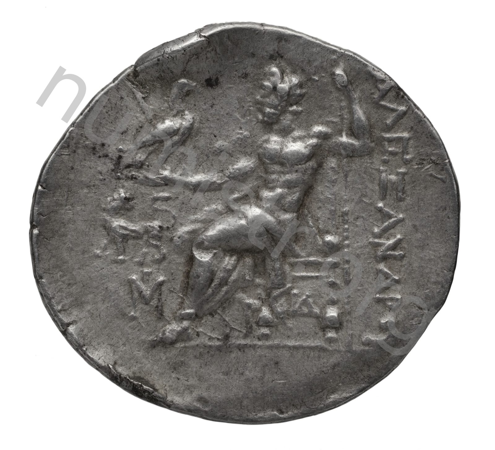 Zeus tabure-tahtta oturuyor sol elinde kartal sağ elinde asa var.