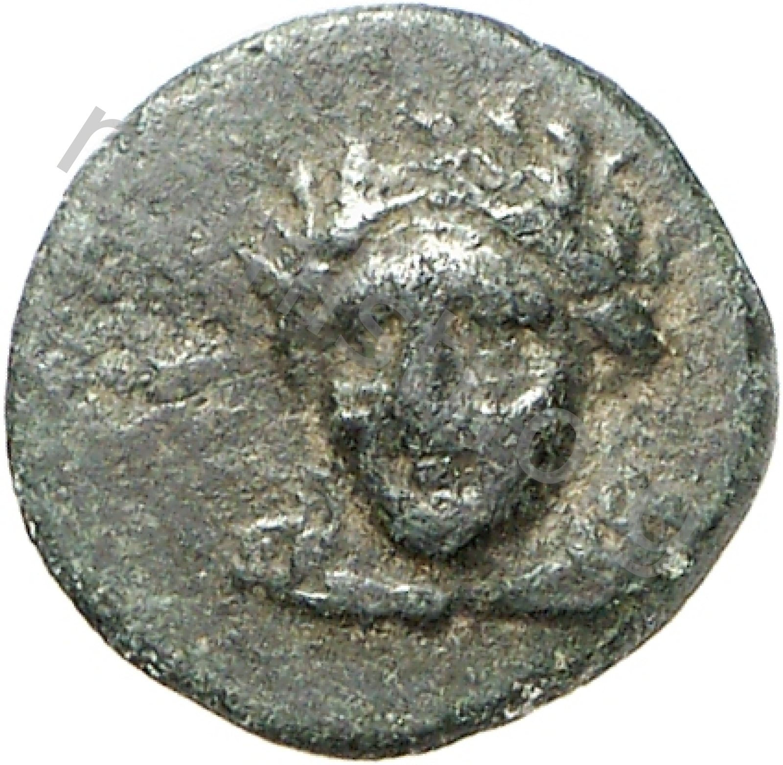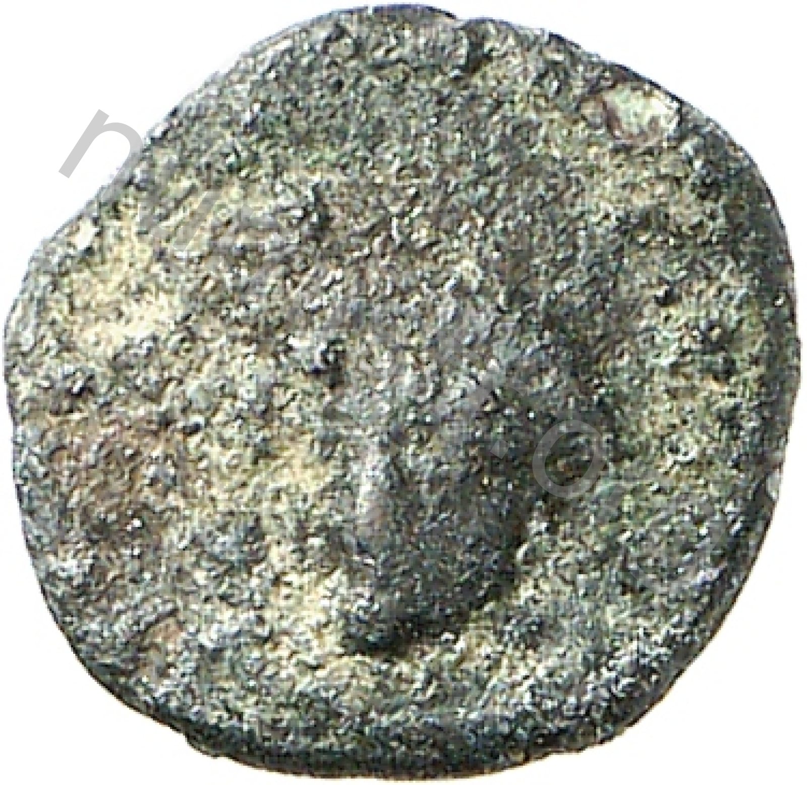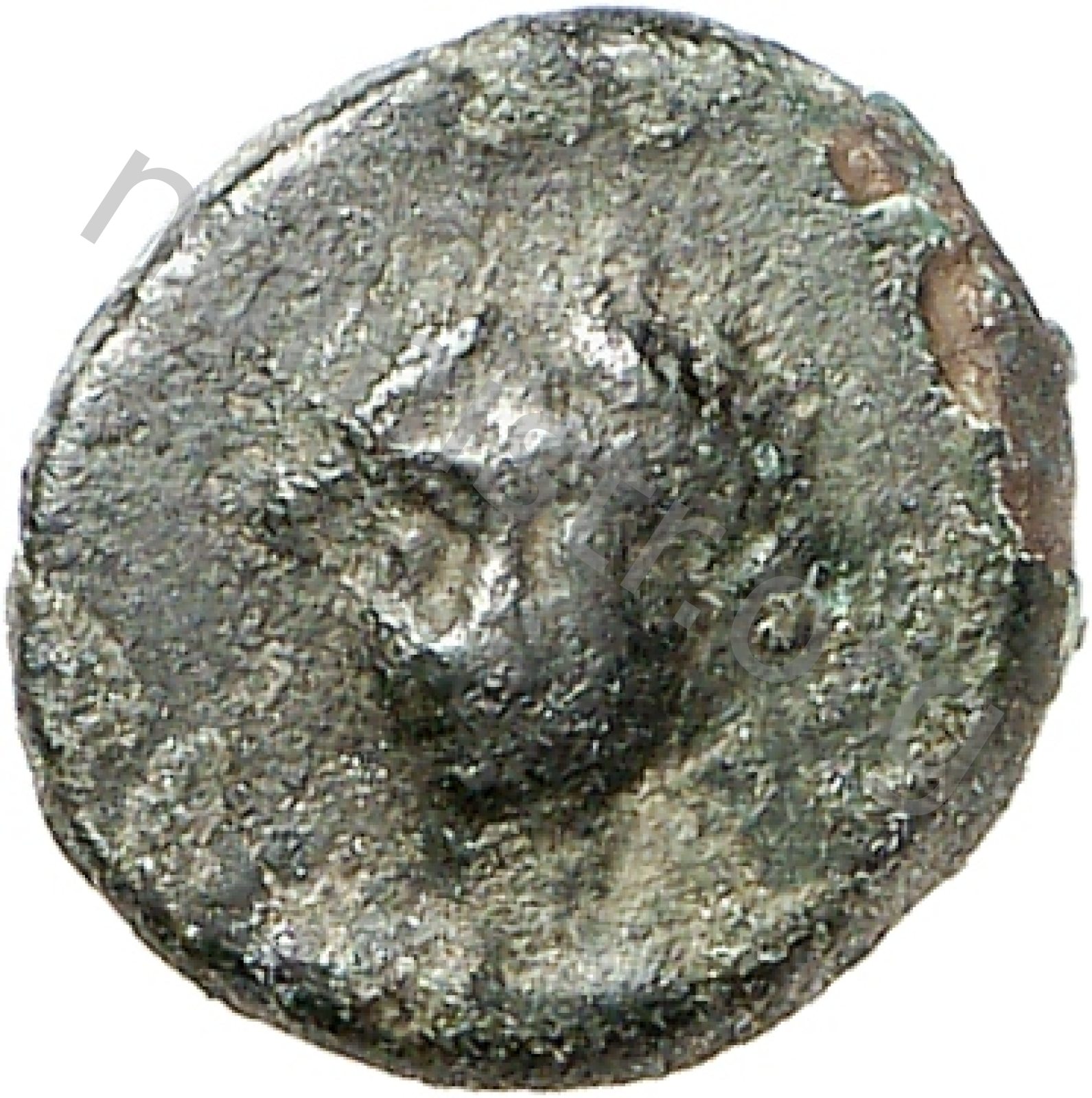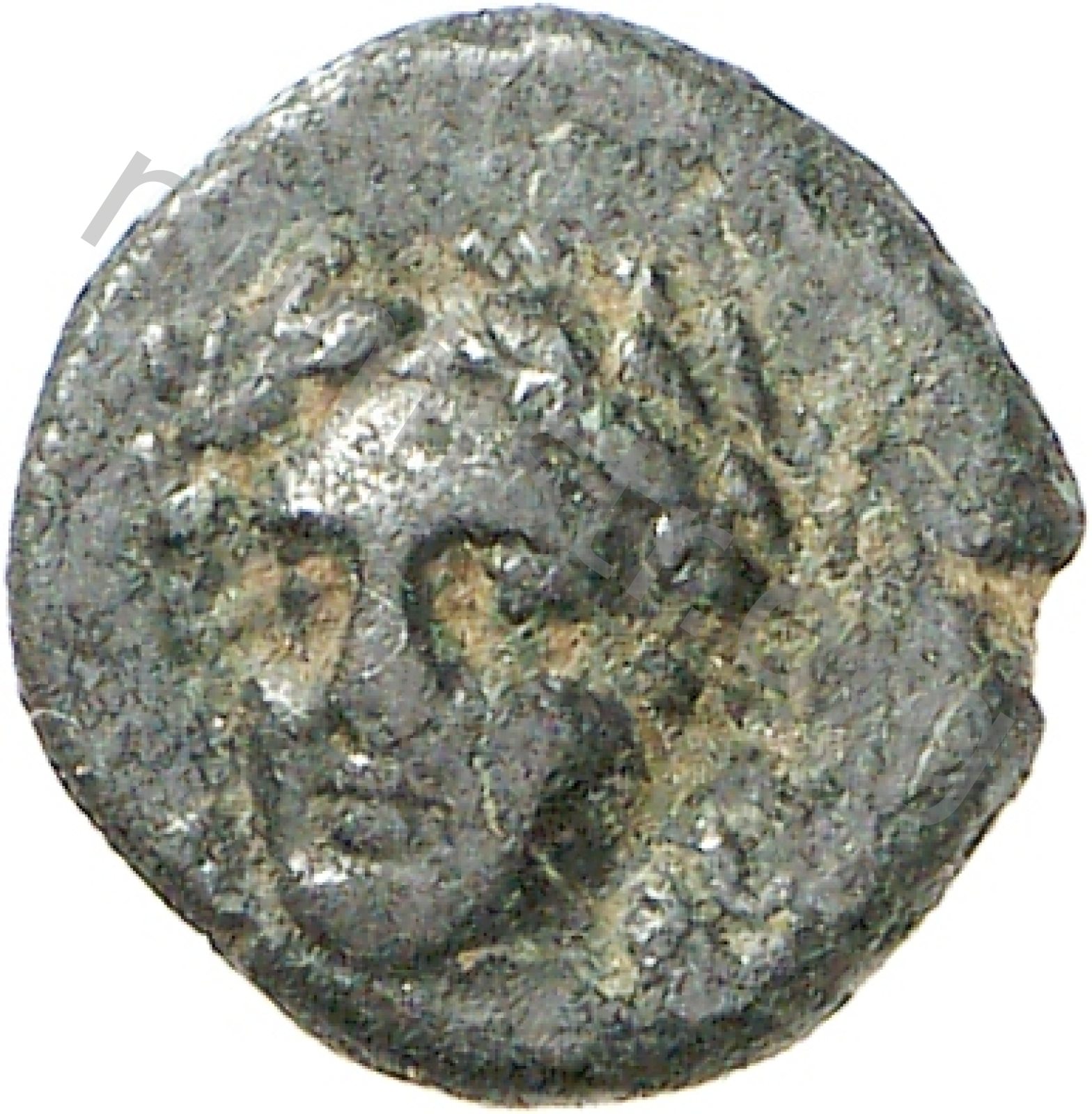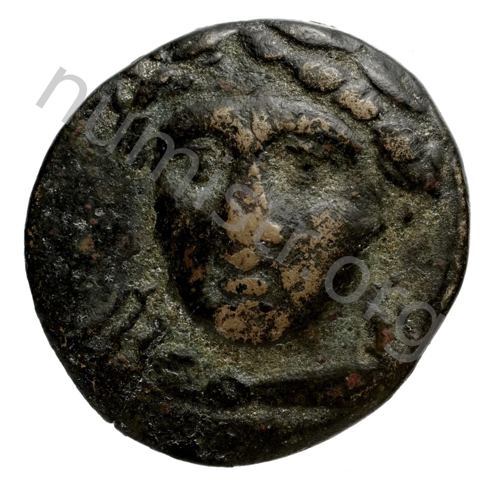 Head of Apollo three-quarters facing wearing a laurel wreath -[en]
