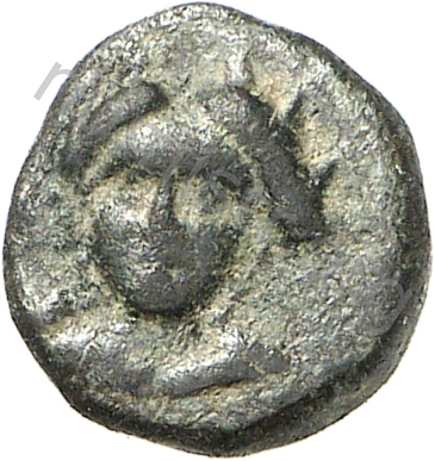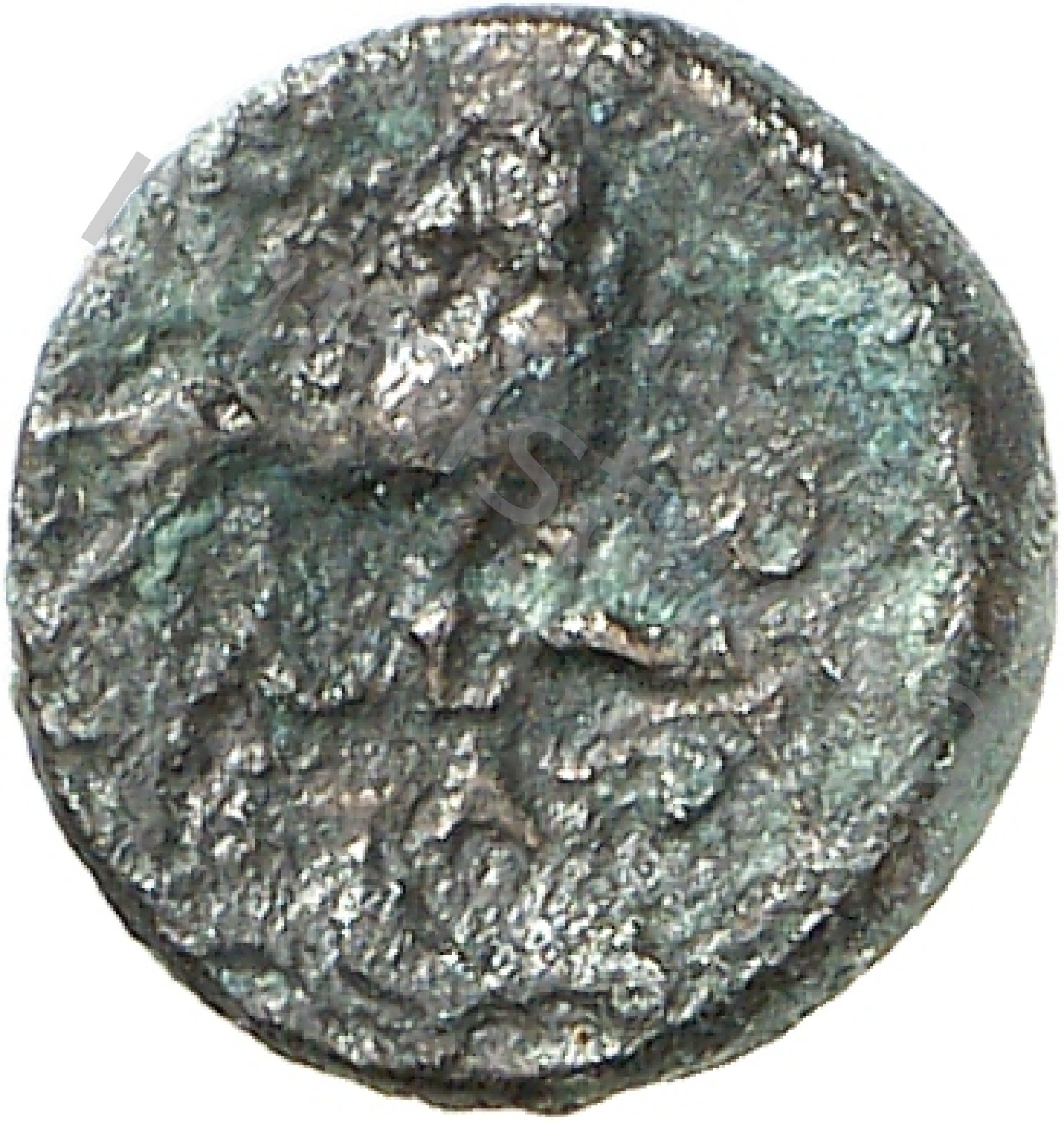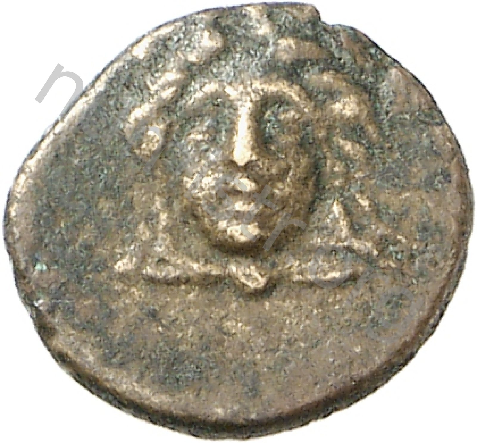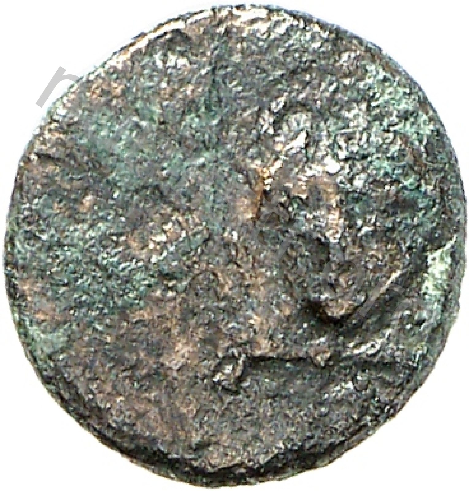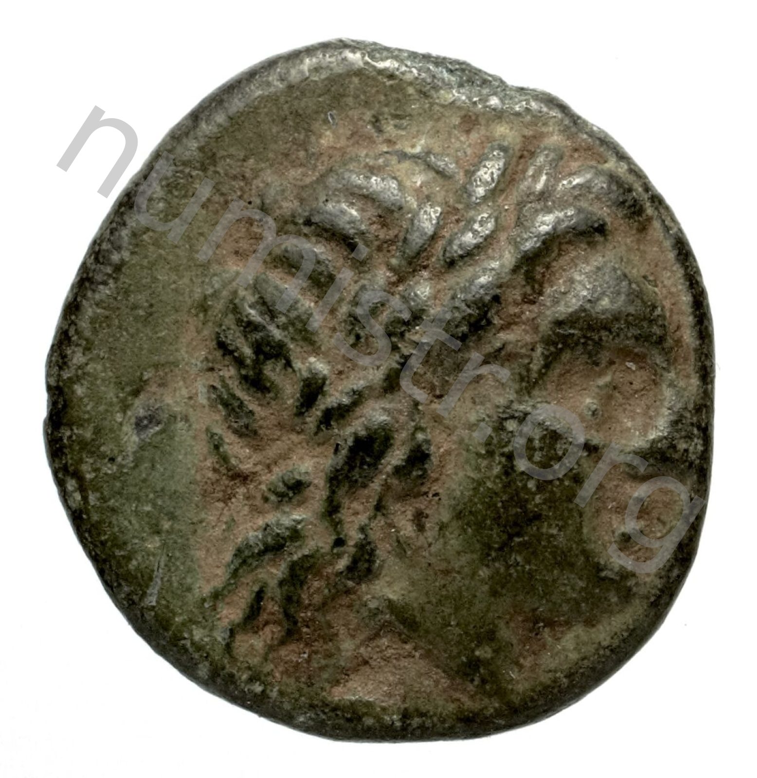 Head of Apollo three-quarters facing wearing a laurel wreath -[en]