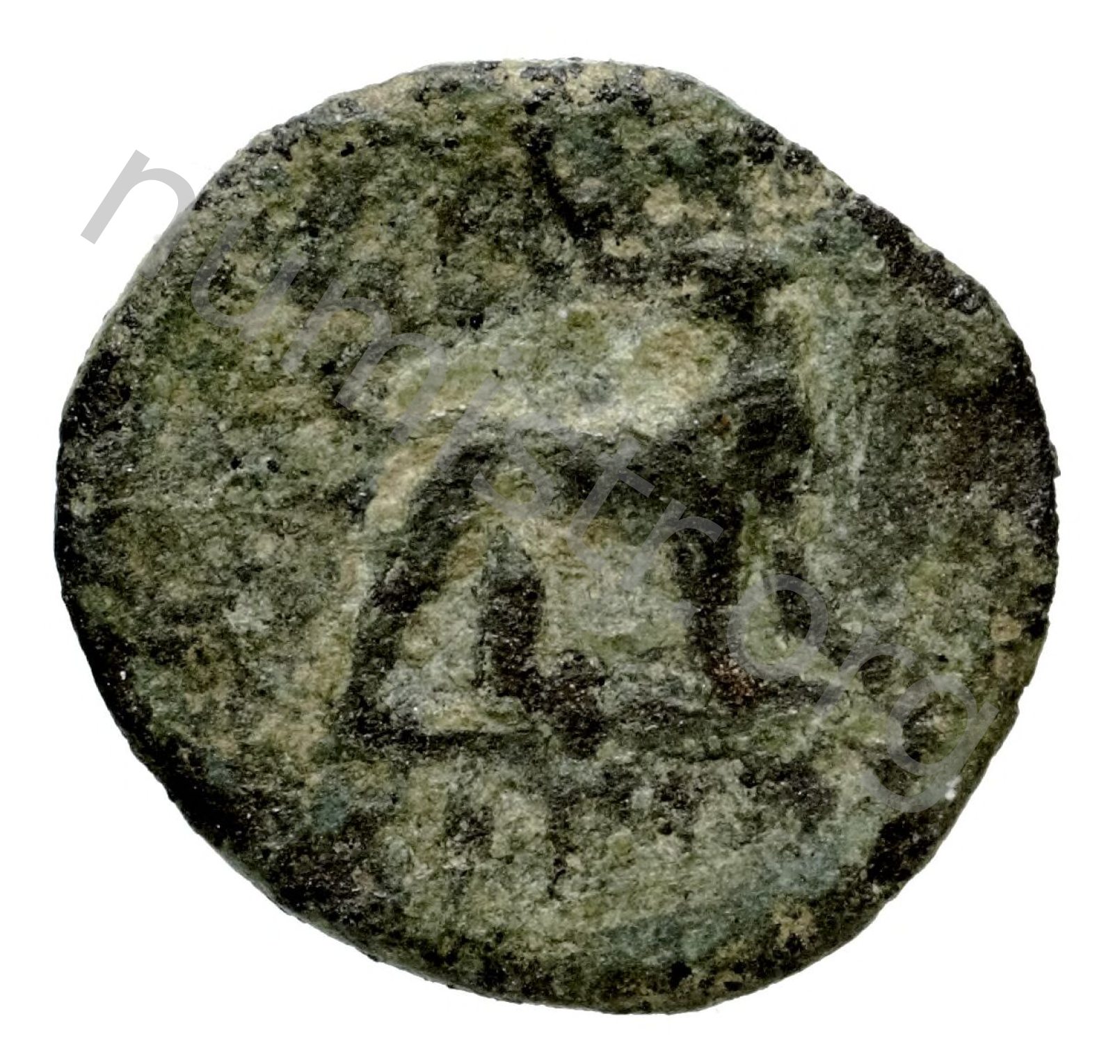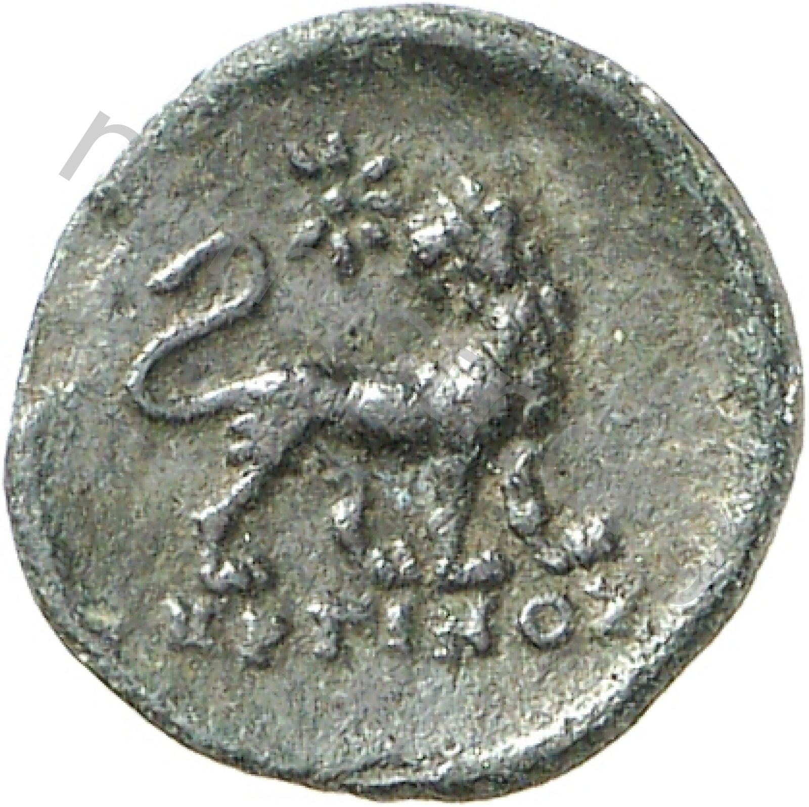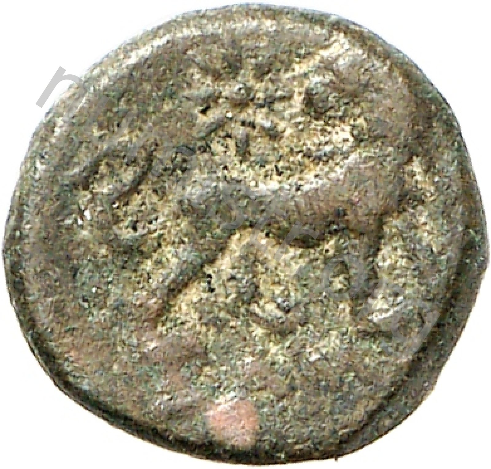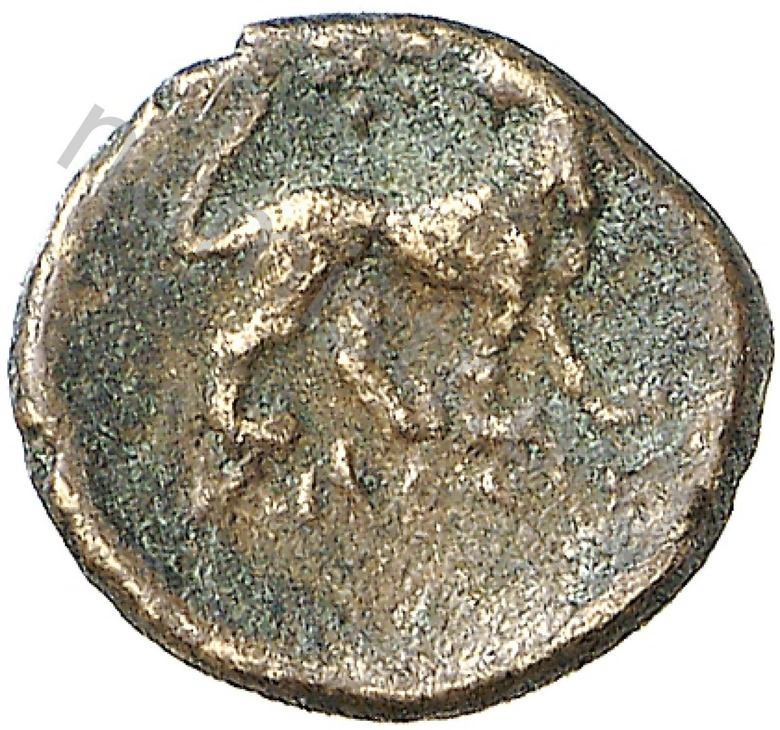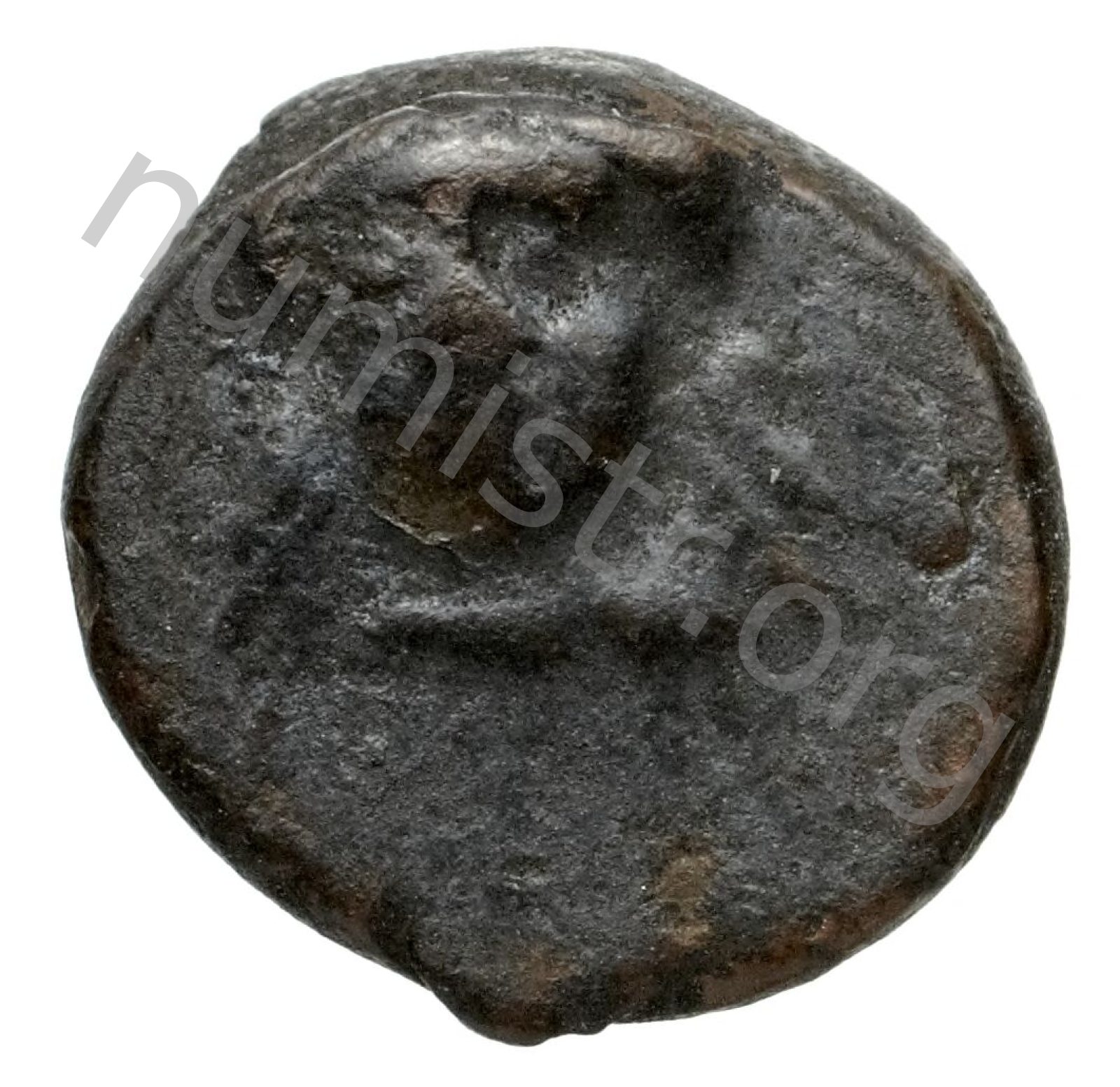 Head of Apollo three-quarters facing wearing a laurel wreath -[en]