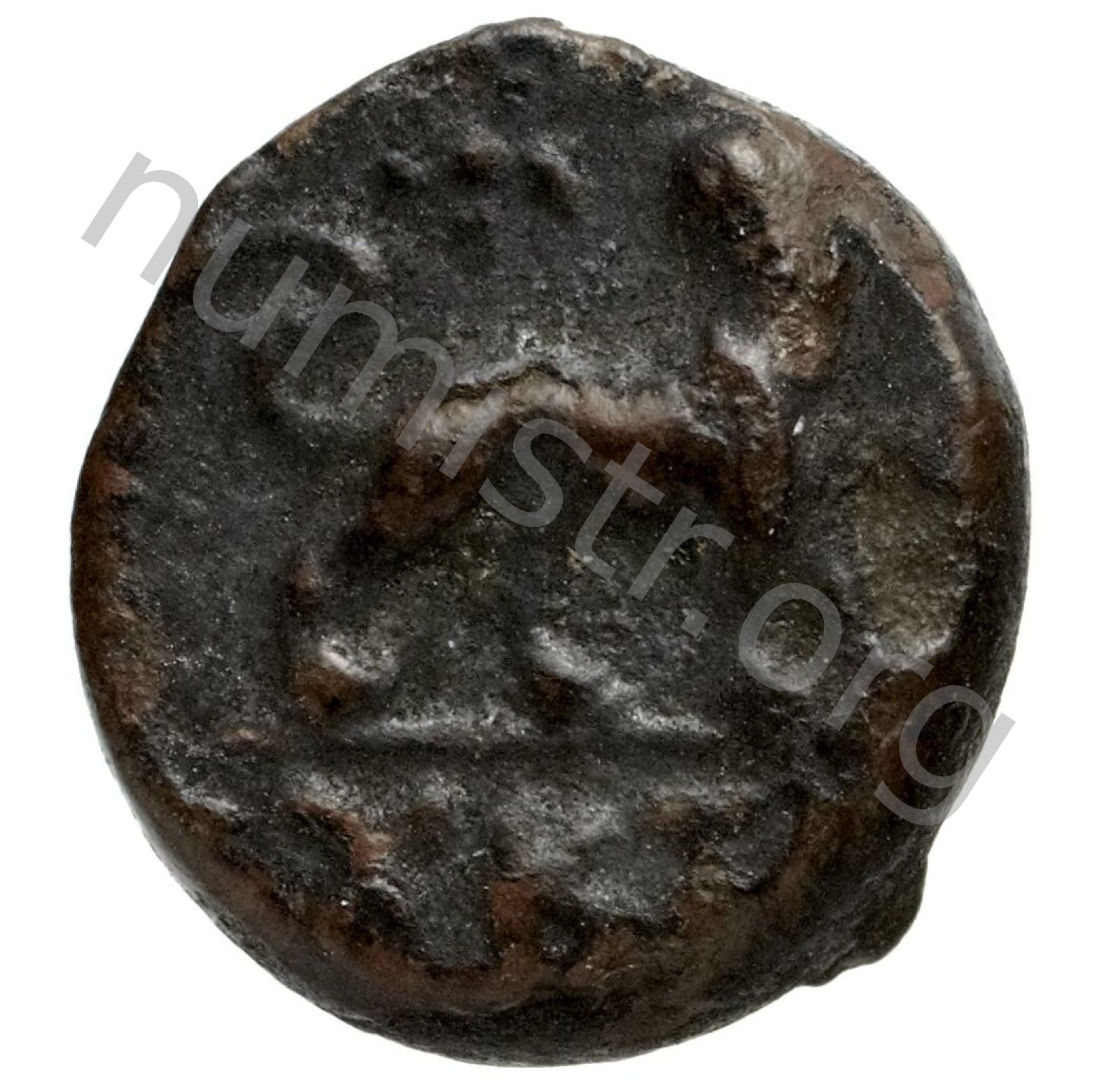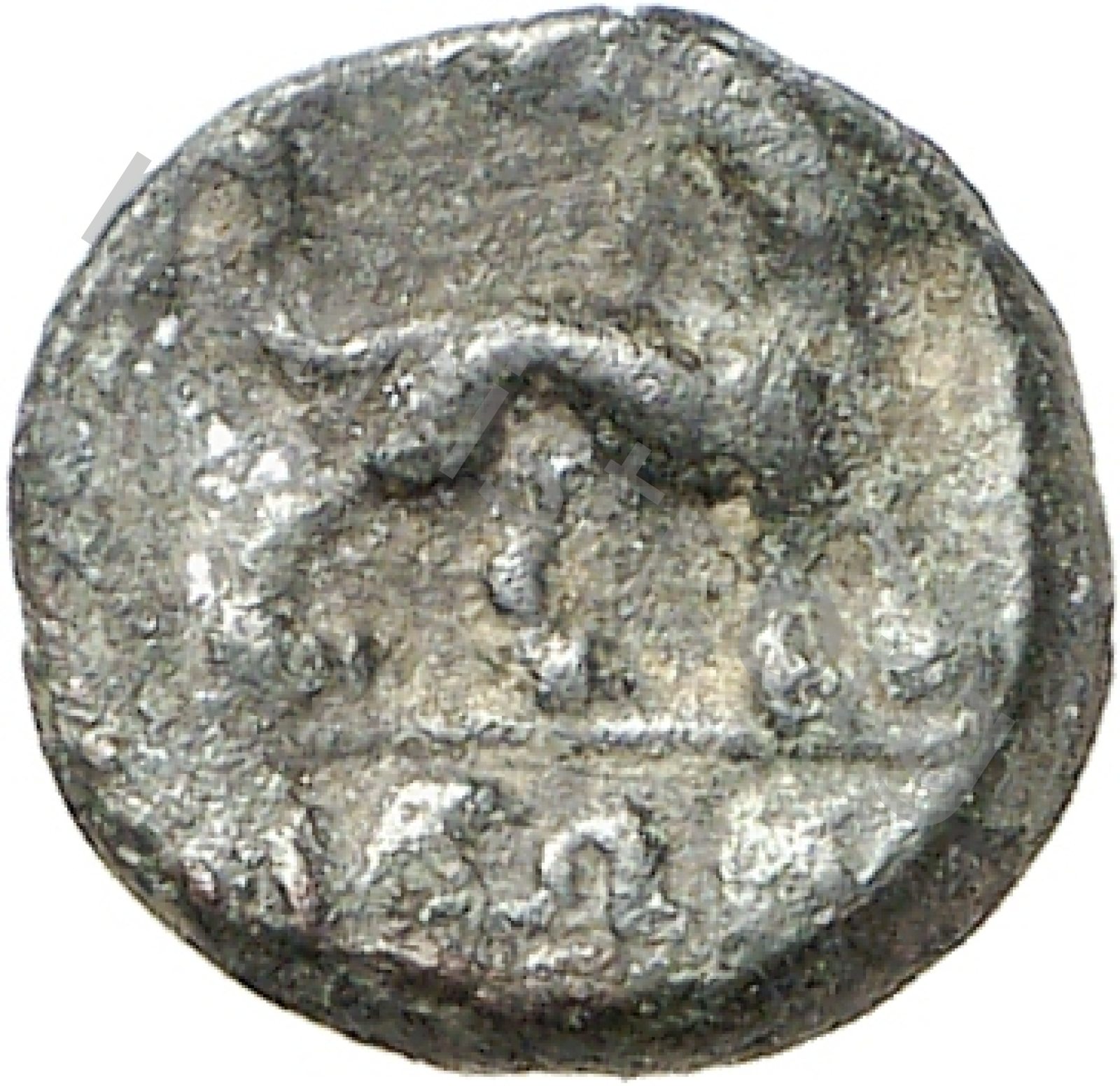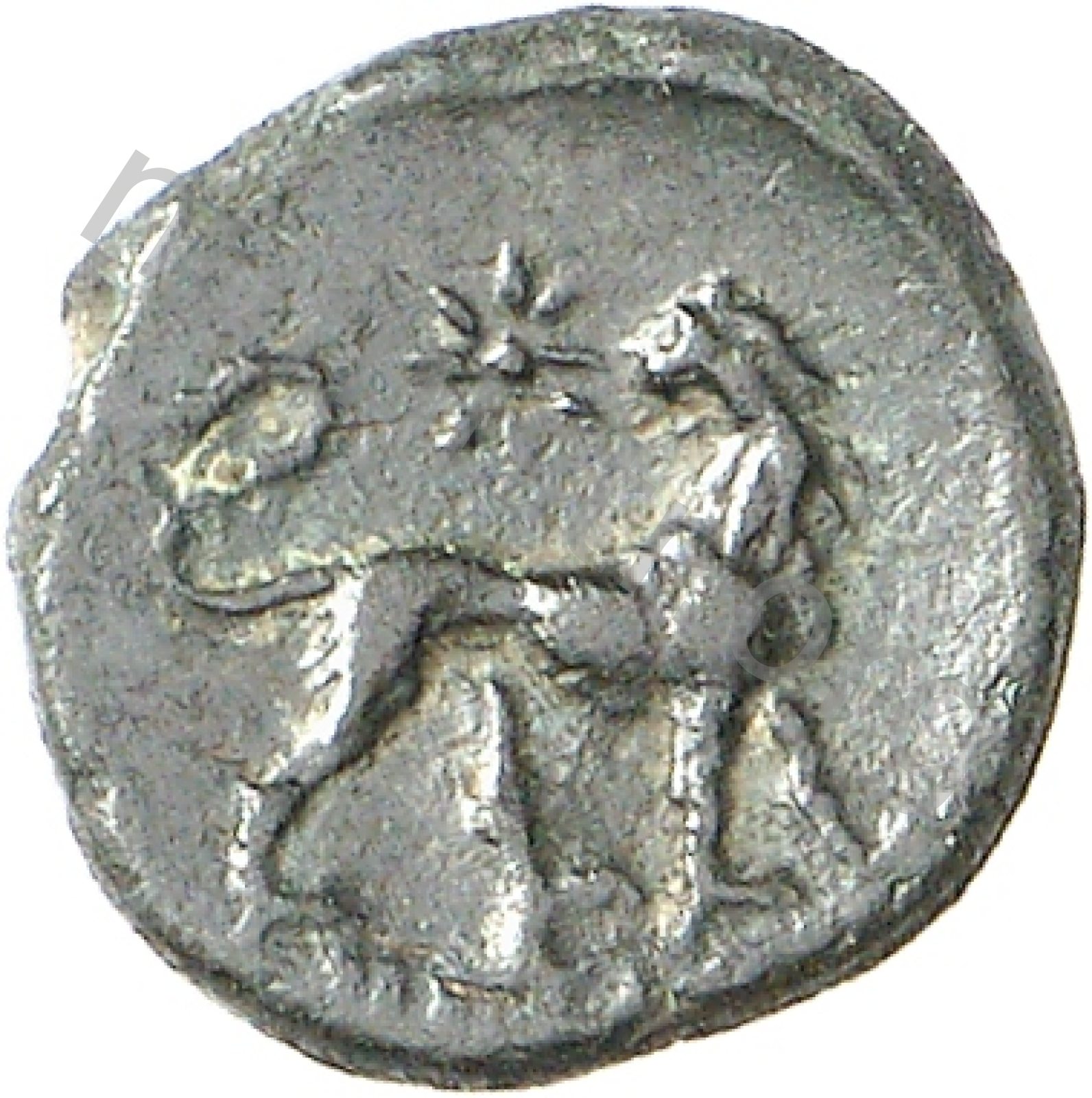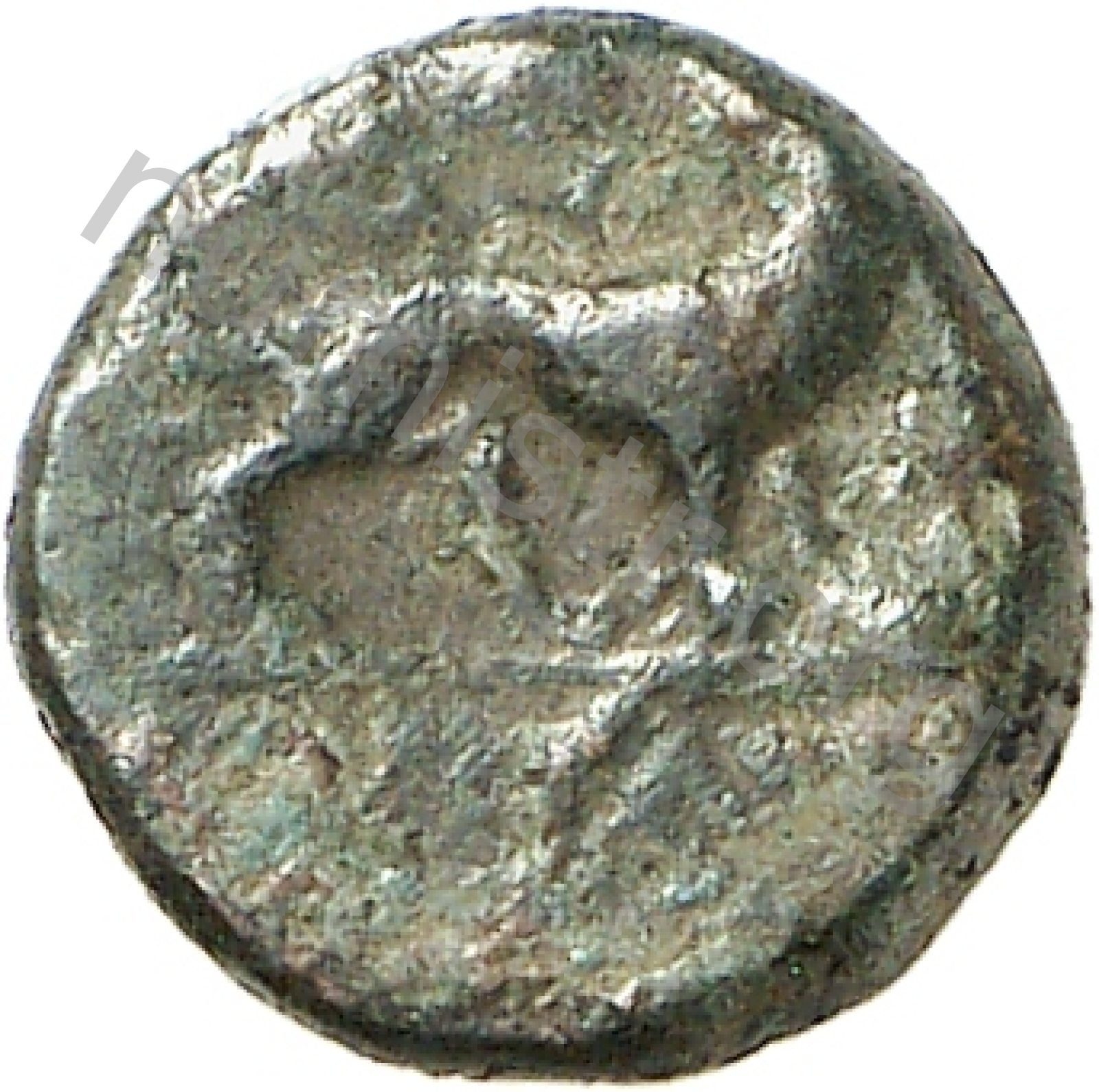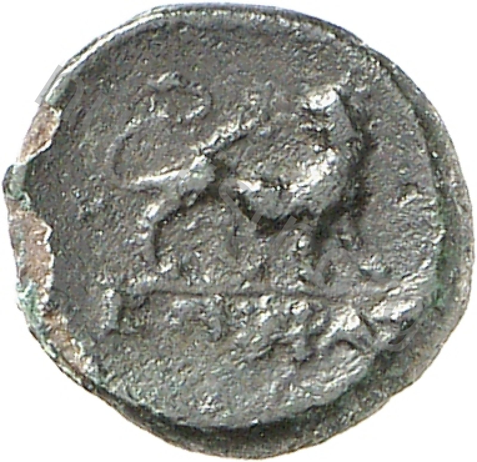 Head of Apollo three-quarters facing wearing a laurel wreath -[en]