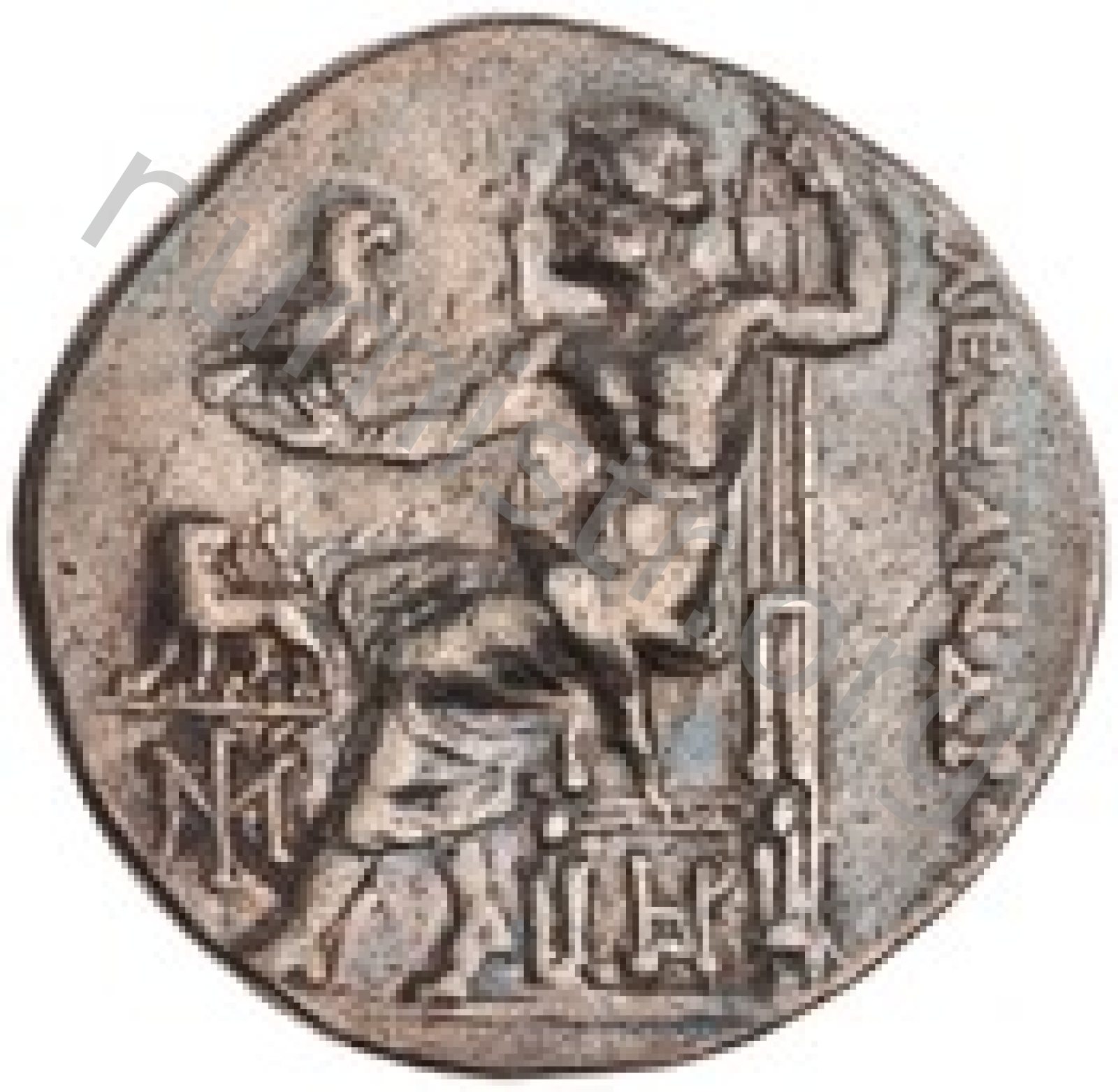 Zeus tabure-tahtta oturuyor sol elinde kartal sağ elinde asa var