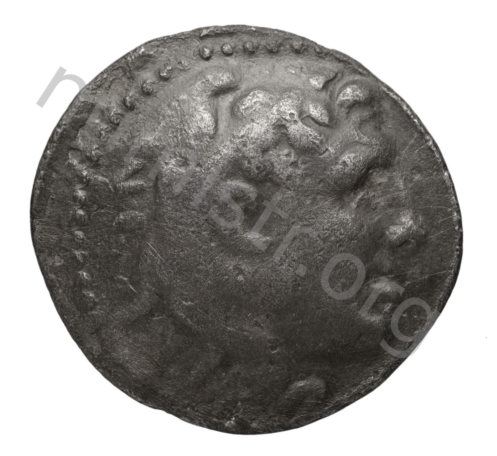 Head of beardless Heracles right wearing lion skin headdress -[en]