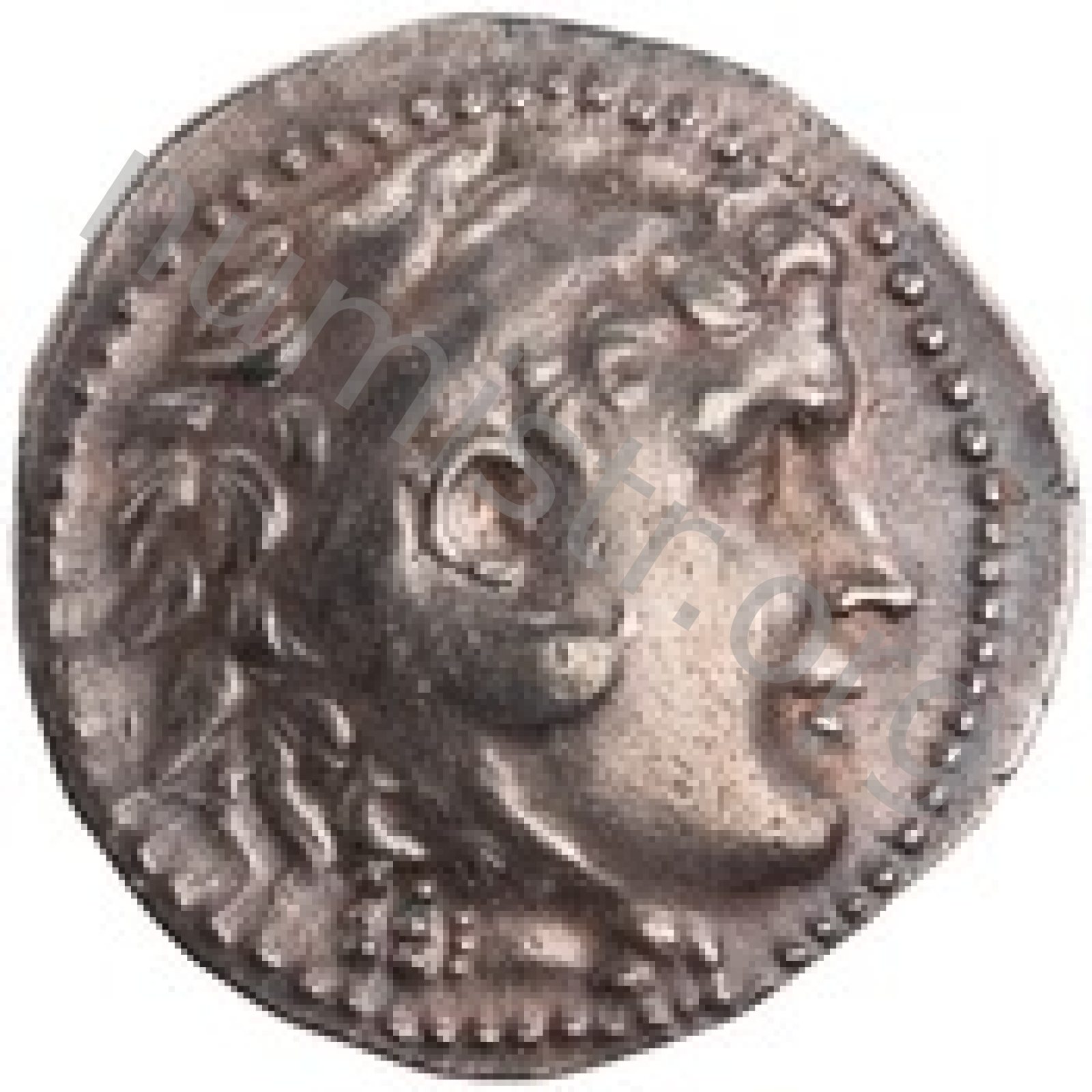 Head of beardless Heracles right wearing lion skin headdress -[en]