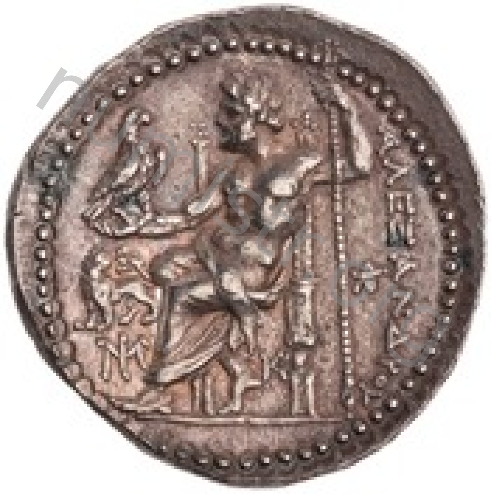 Zeus tabure-tahtta oturuyor sol elinde kartal sağ elinde asa var