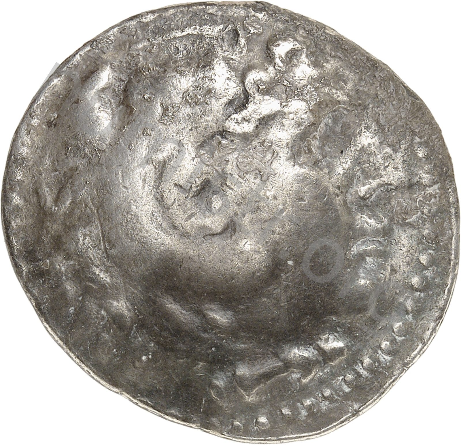 Head of beardless Heracles right wearing lion skin headdress -[en]