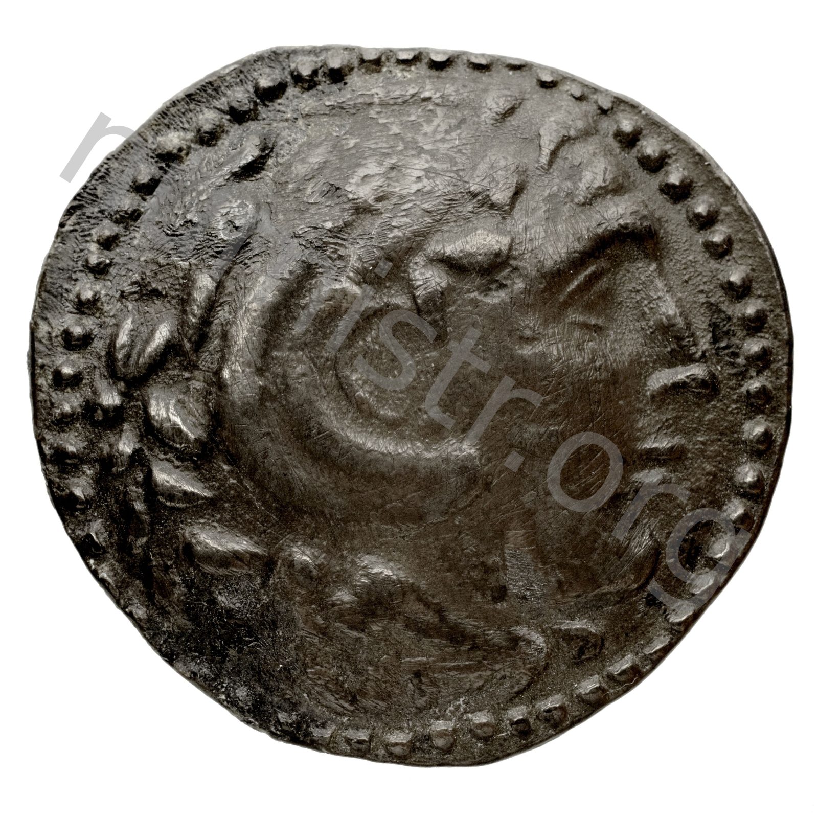 Head of beardless Heracles right wearing lion skin headdress -[en]