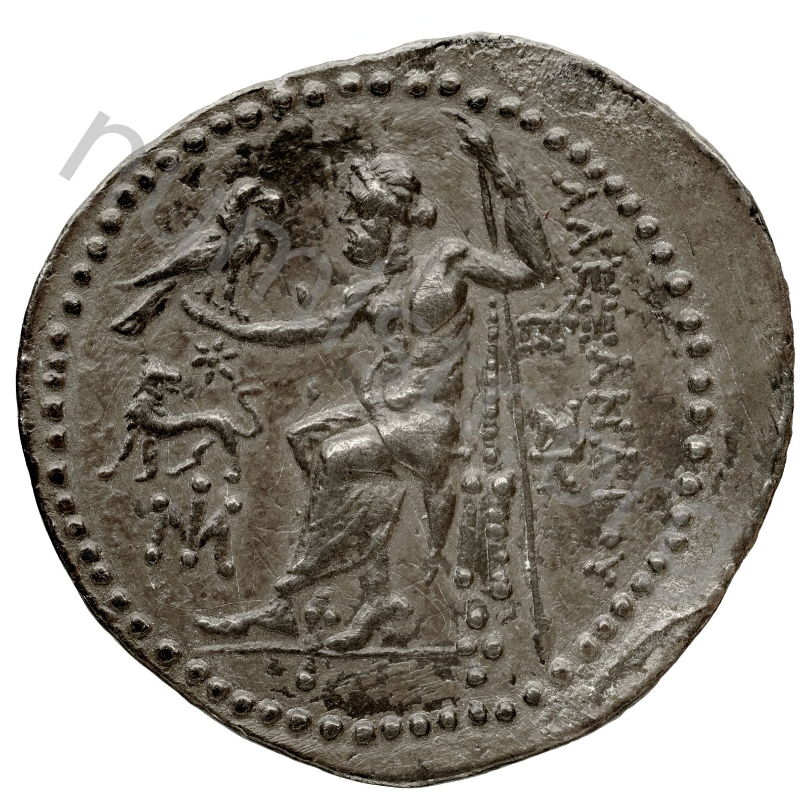 Zeus seated on stool-throne left eagle on outstretched right hand sceptre in left hand -[en]