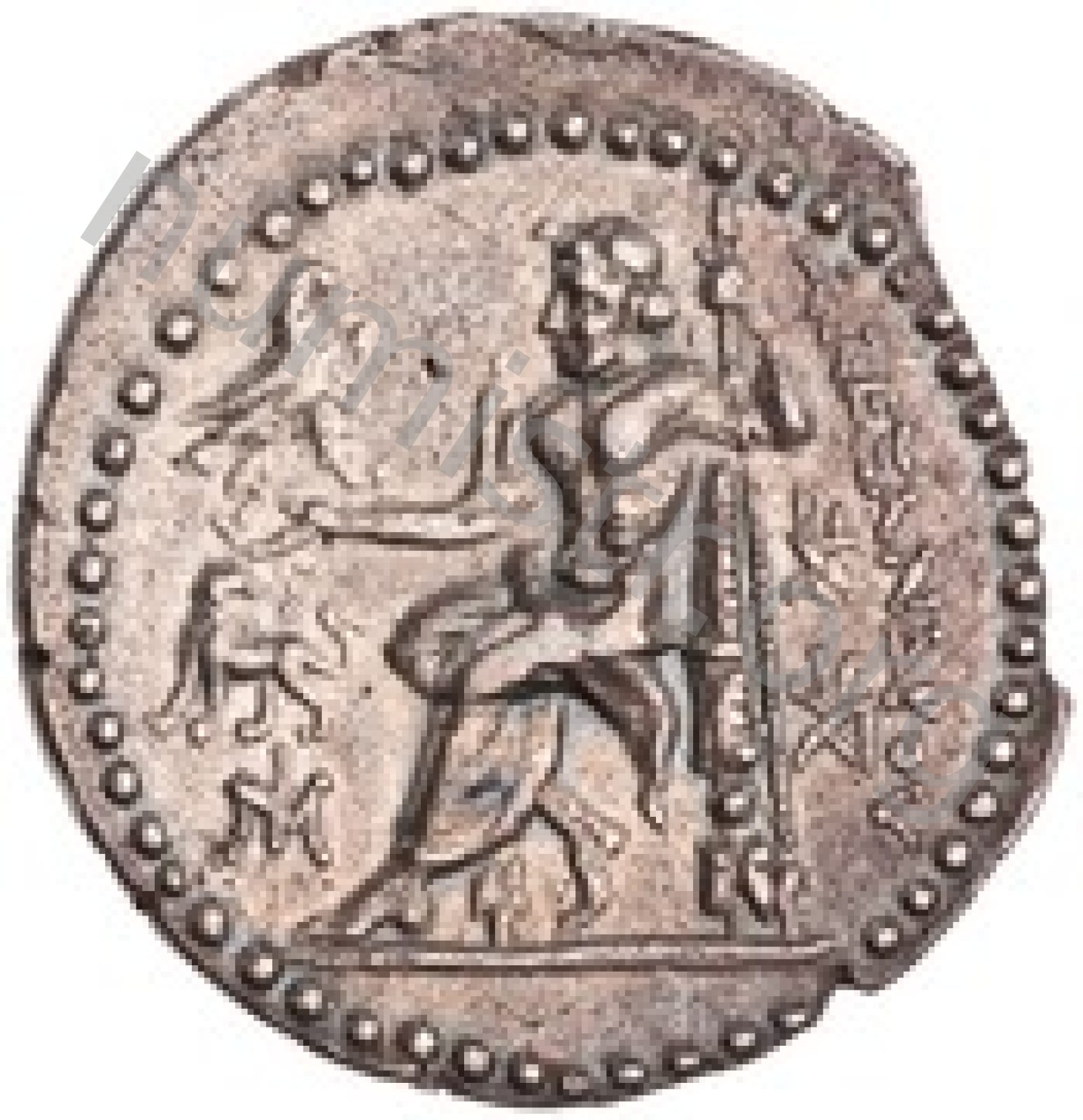Zeus seated on stool-throne left eagle on outstretched right hand sceptre in left hand -[en]