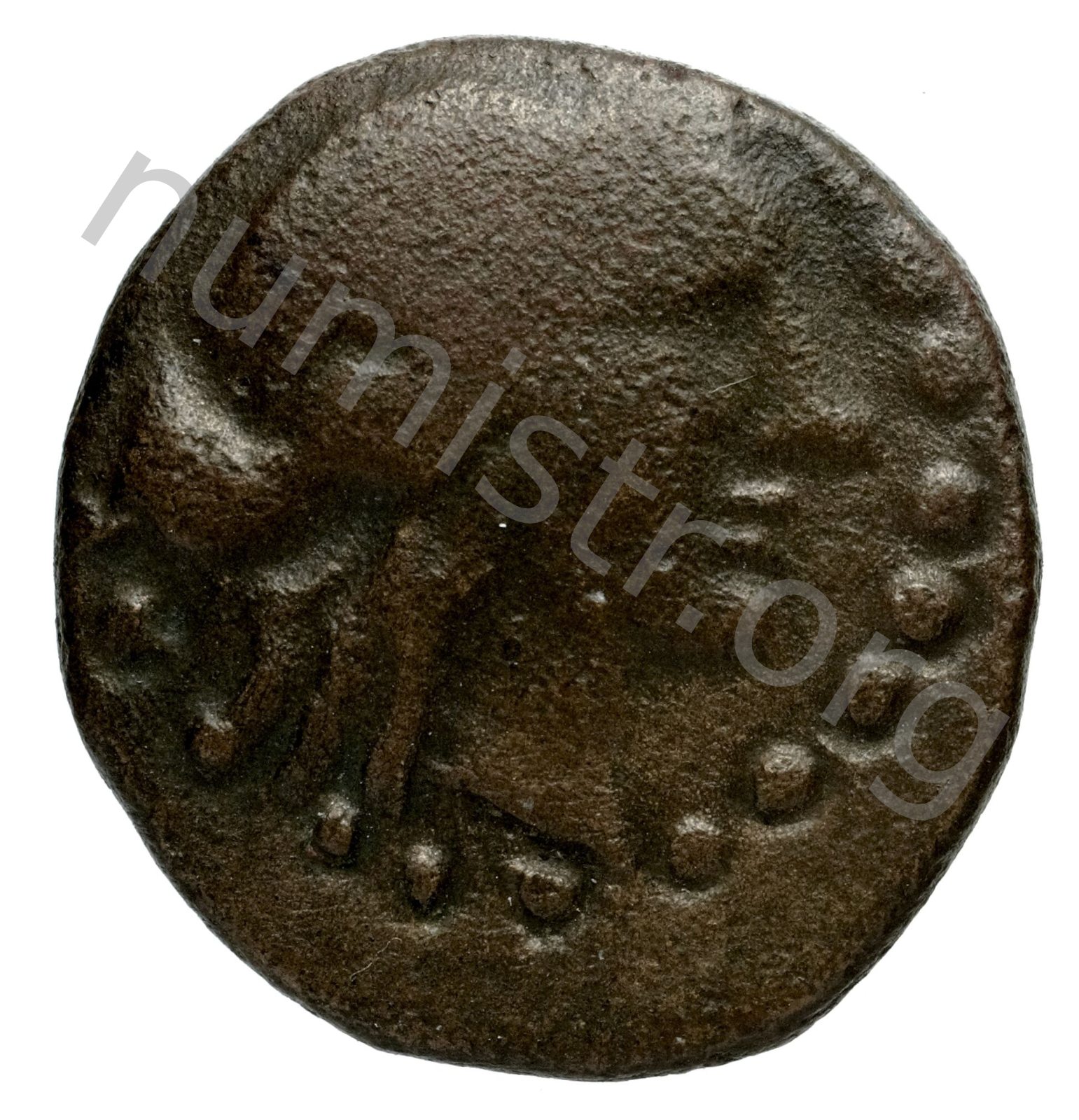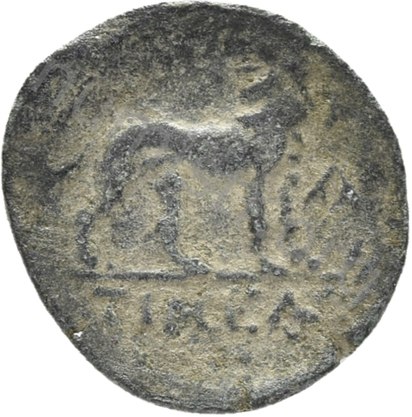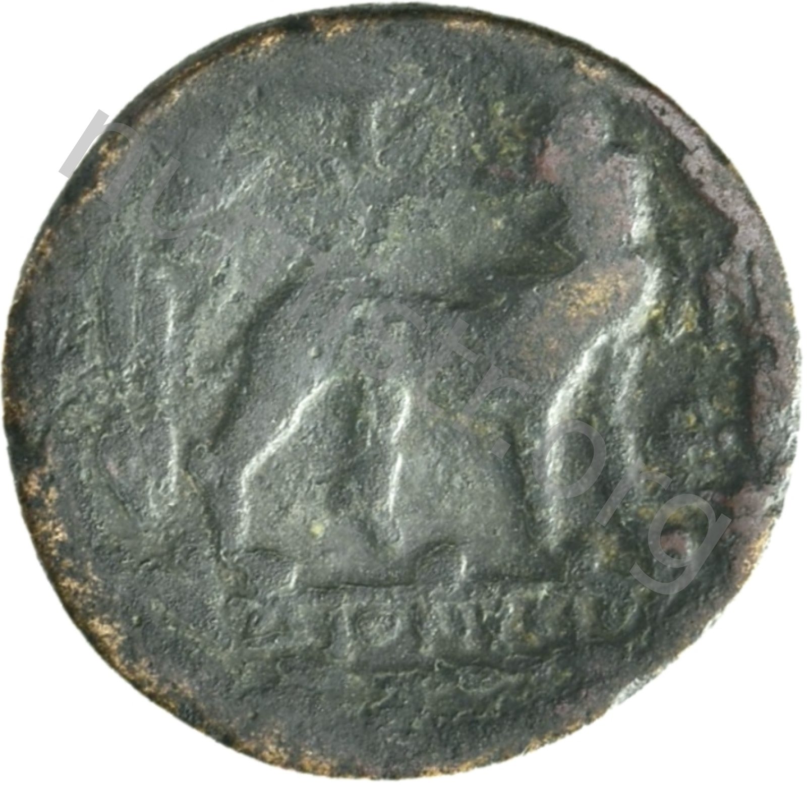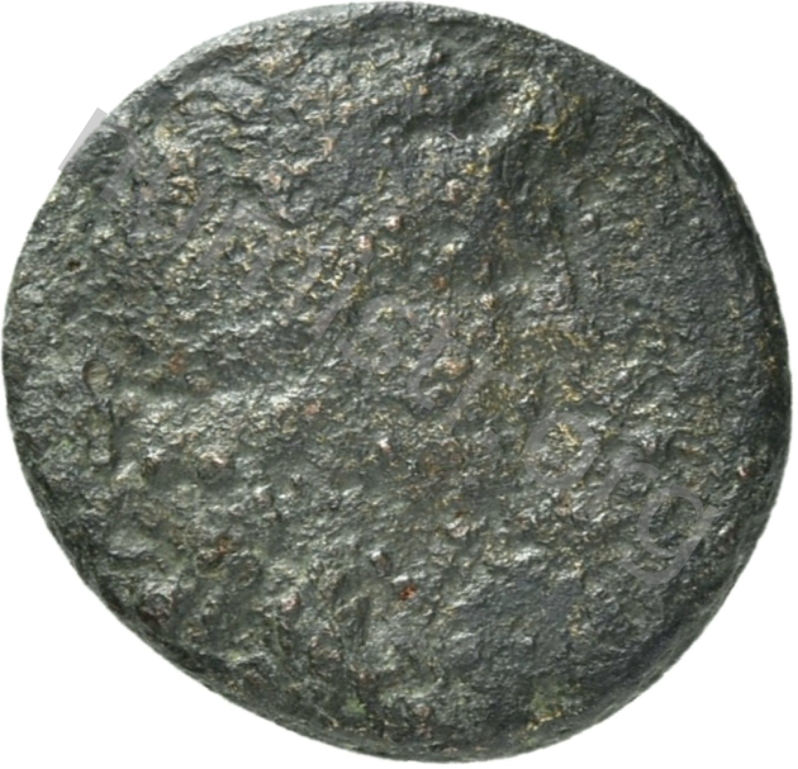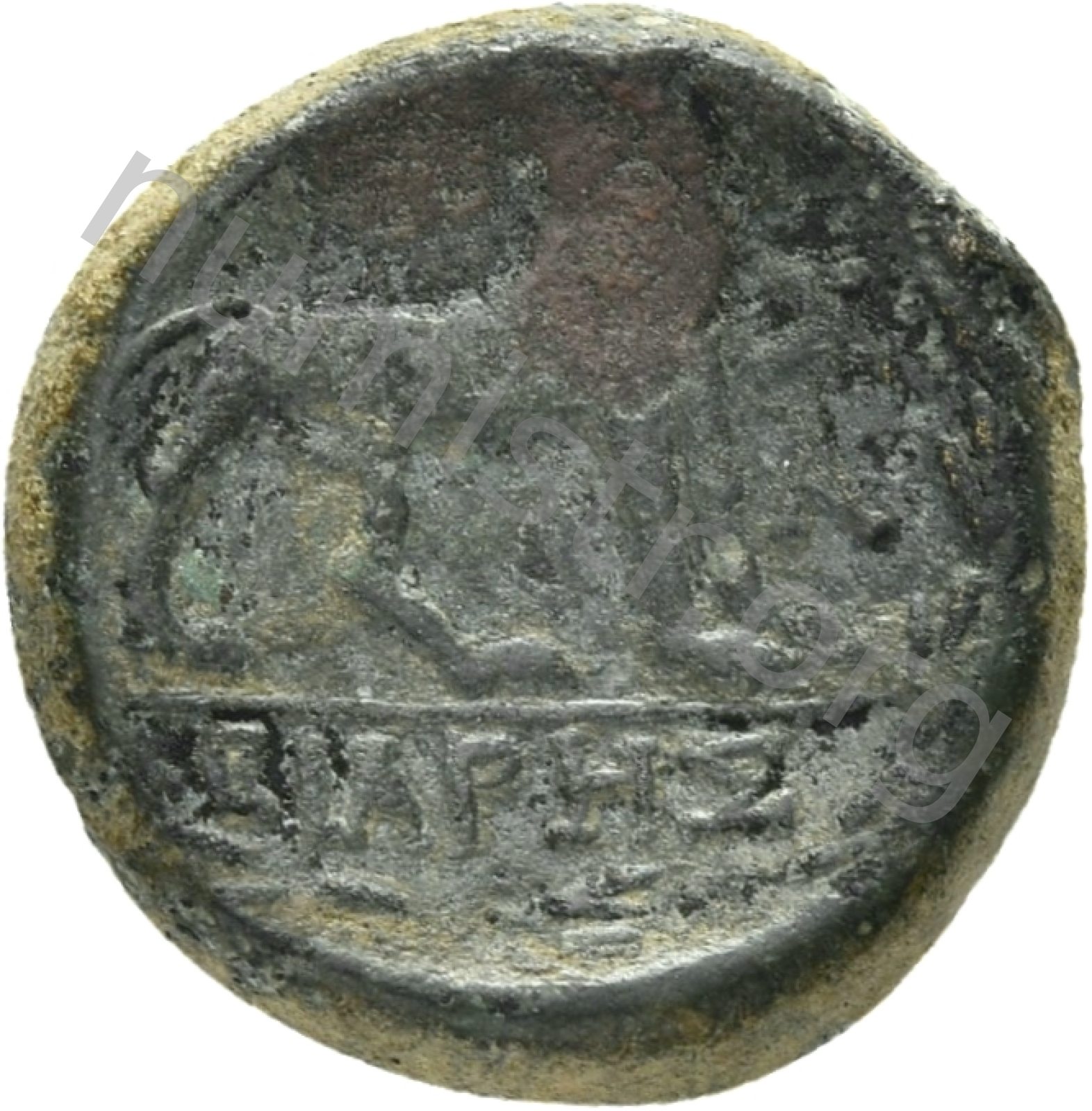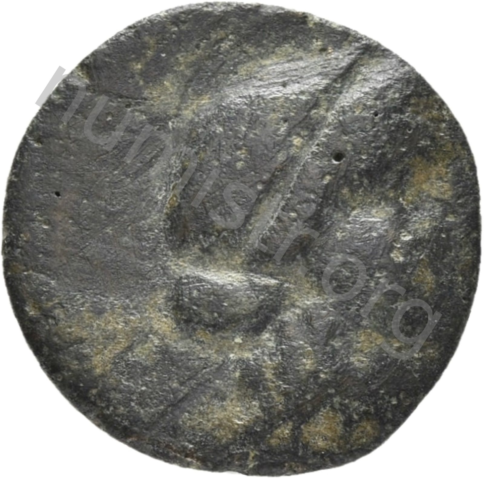 Head of Apollo wearing a laurel wreath in a round border of dots -[en]