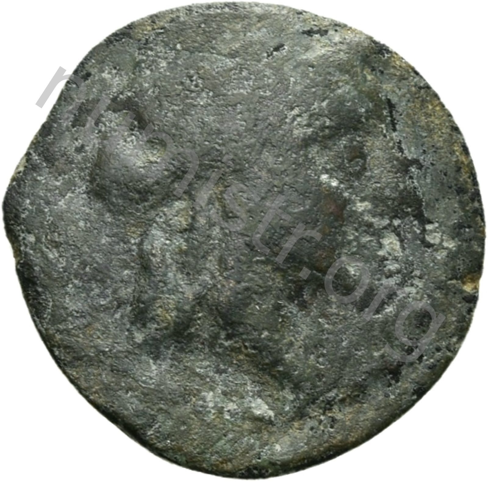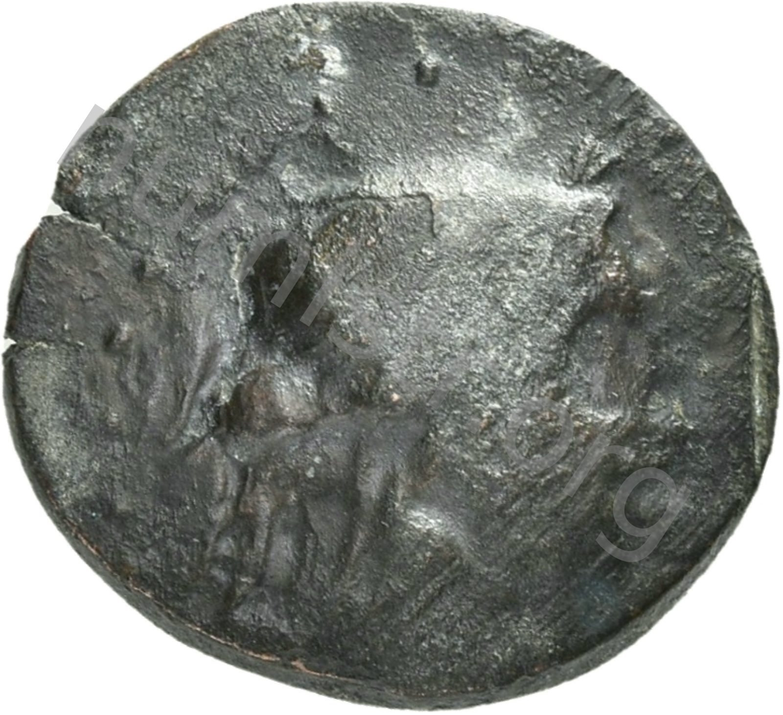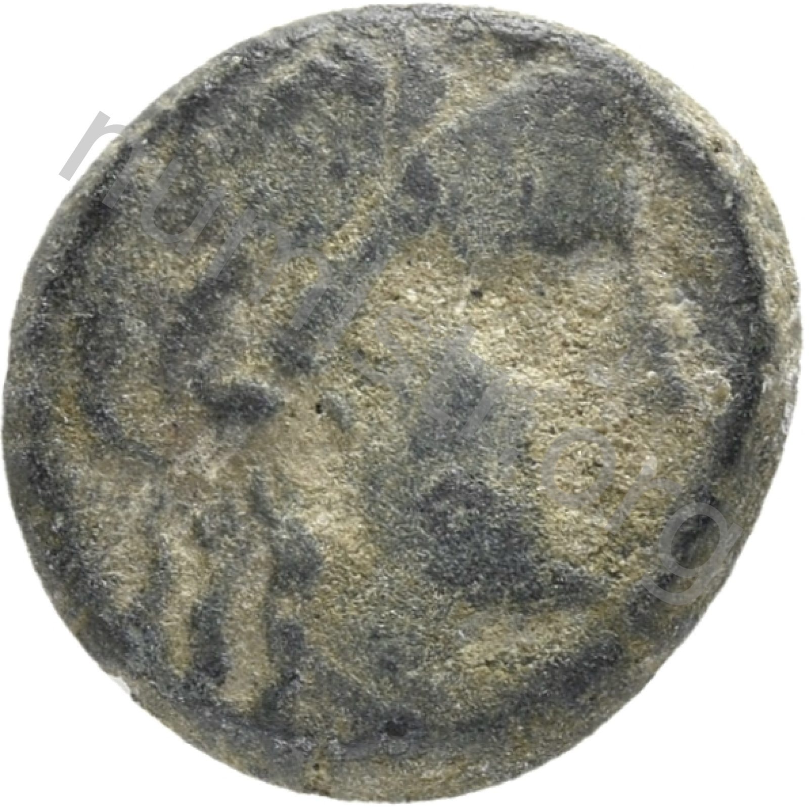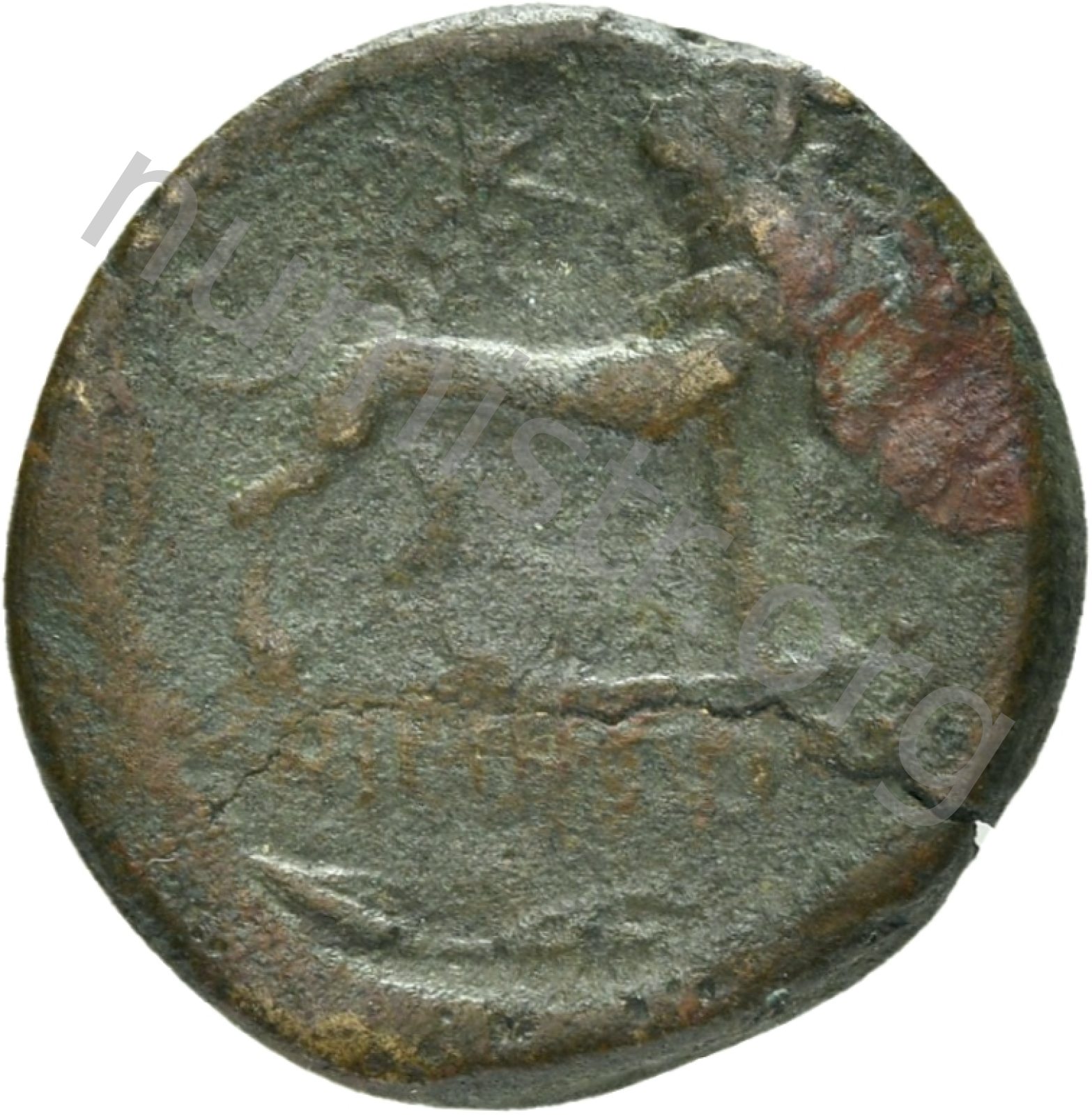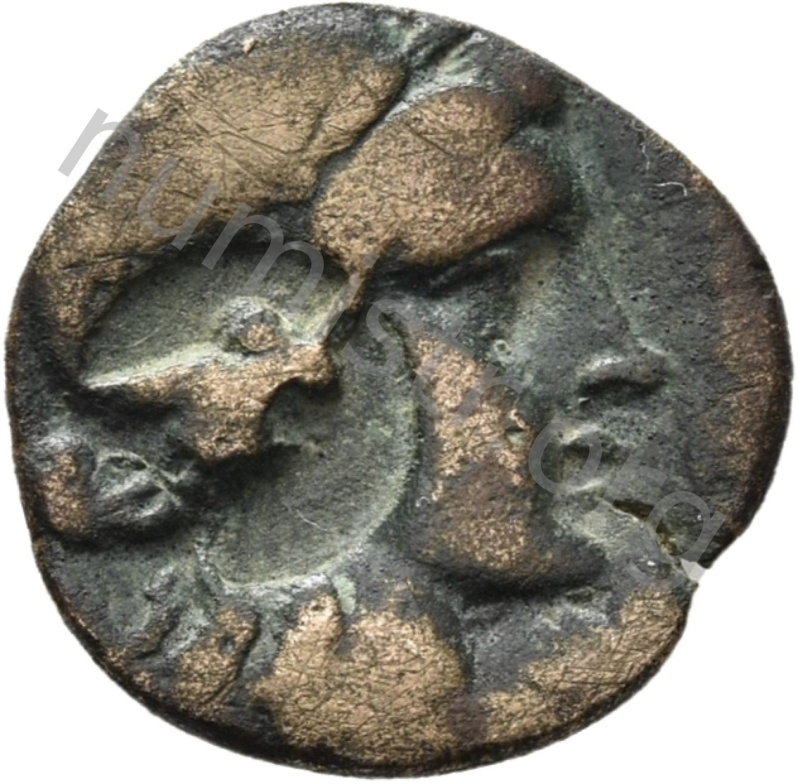 Head of Apollo wearing a laurel wreath in a round border of dots -[en]