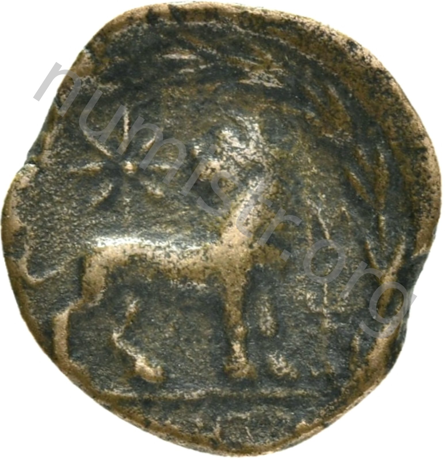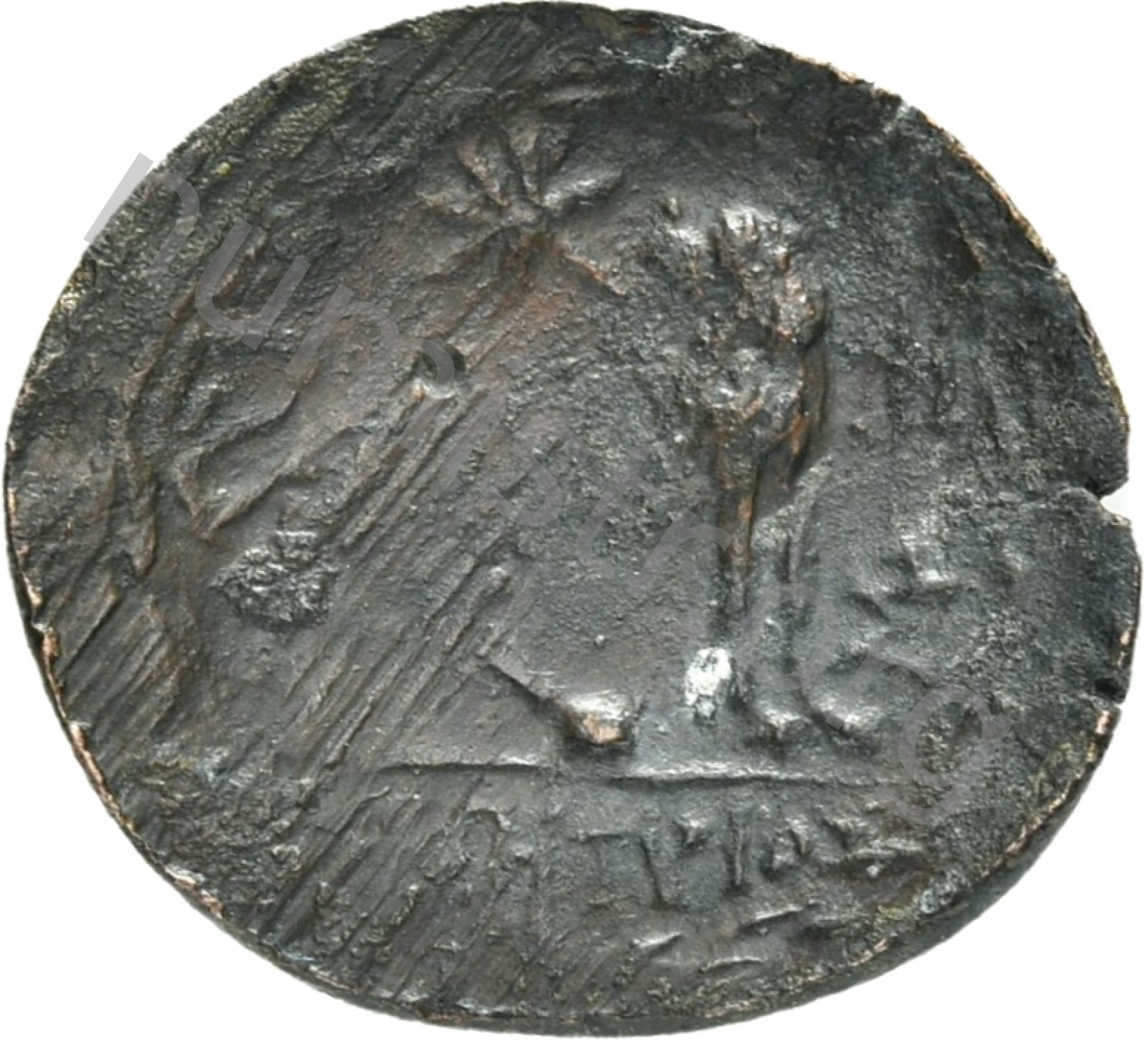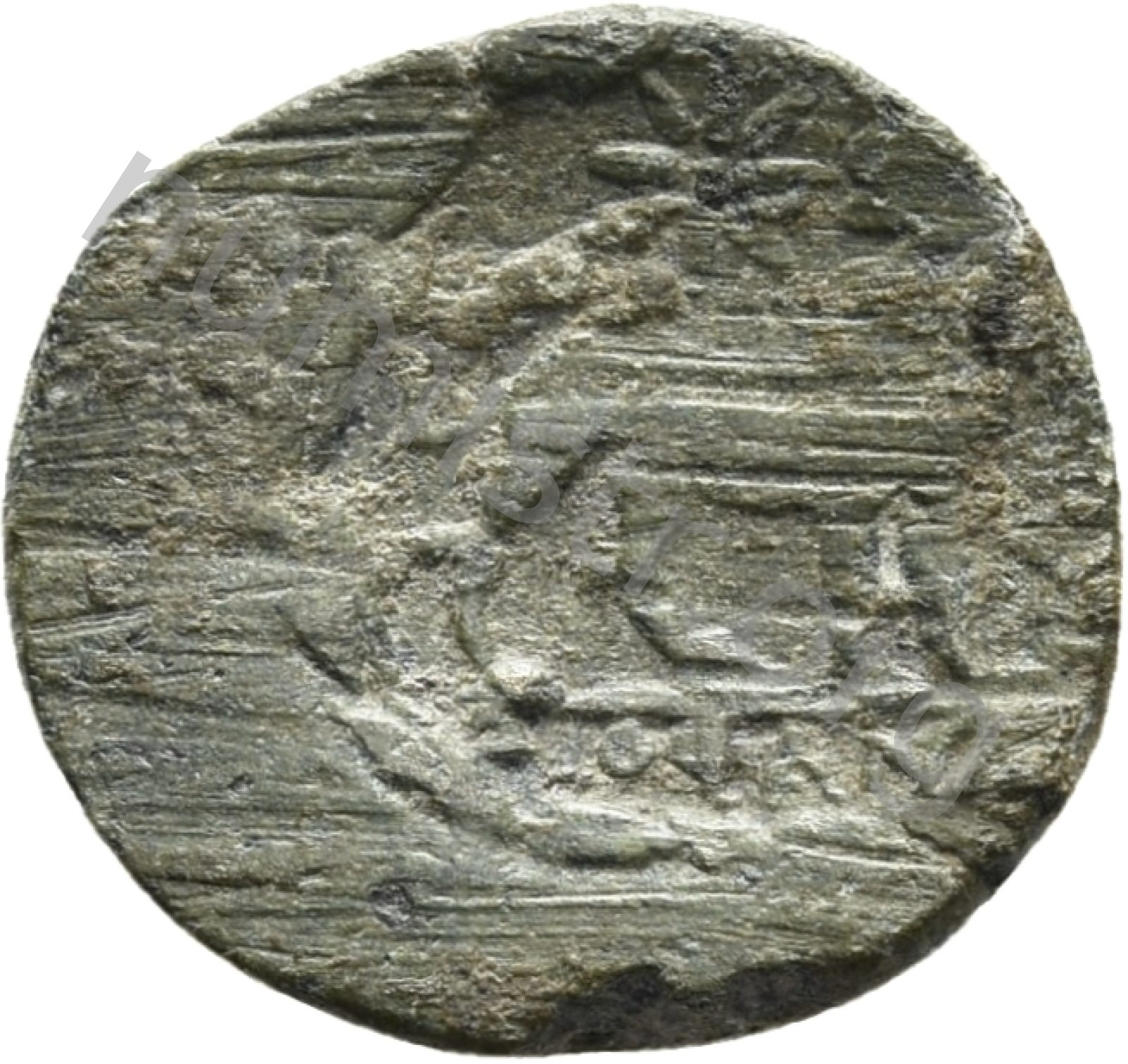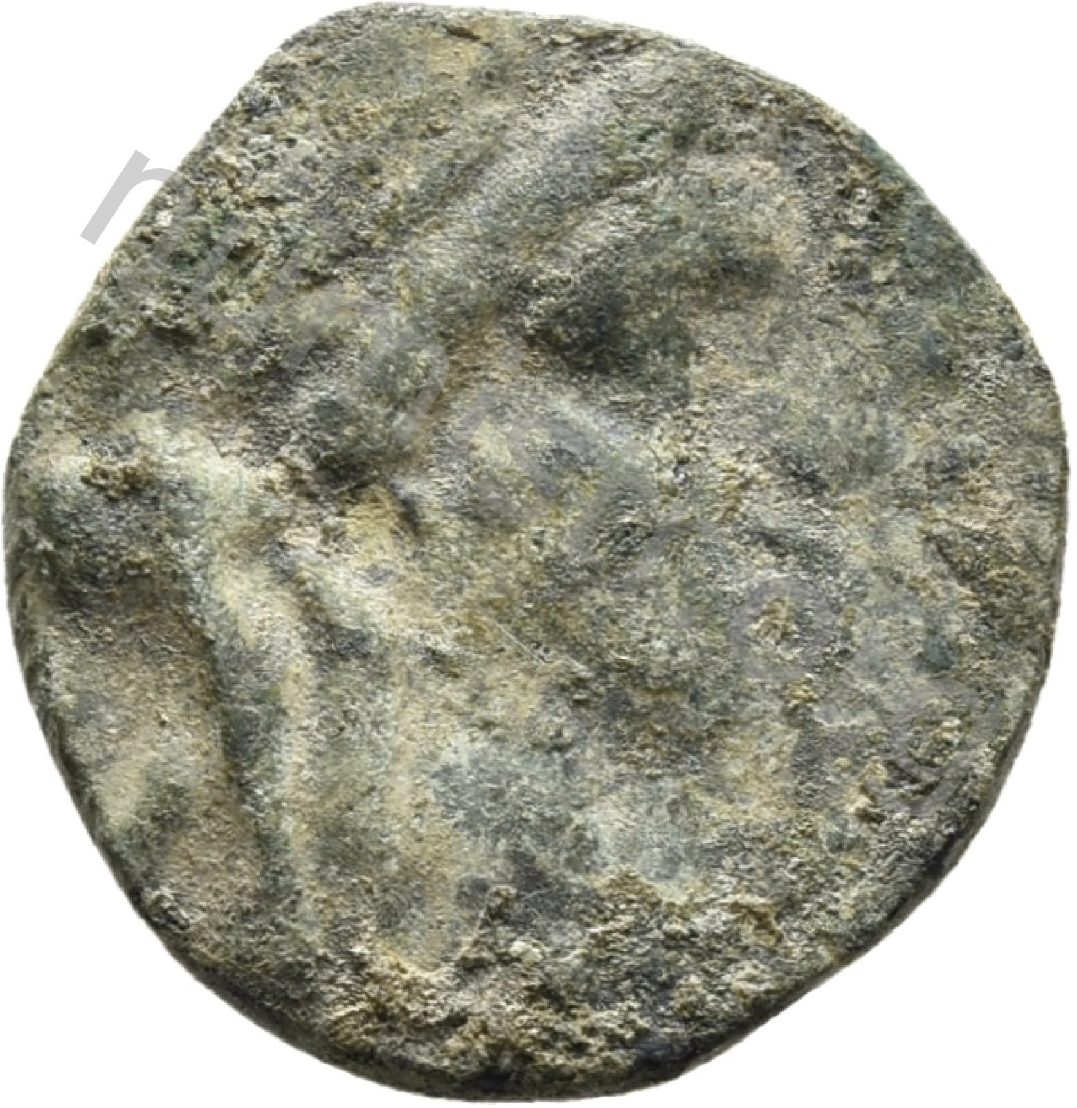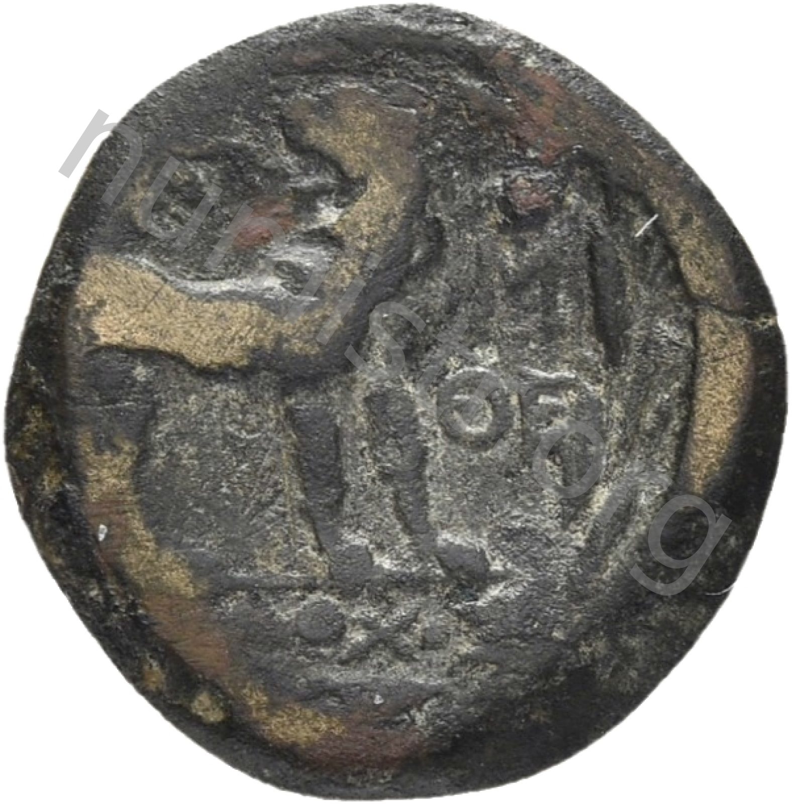 Head of Apollo wearing a laurel wreath in a round border of dots -[en]