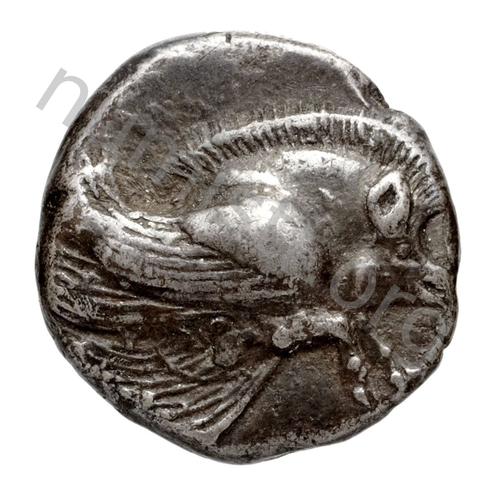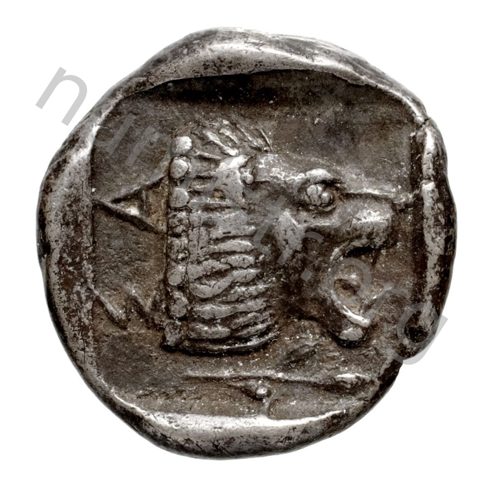 Head of a lion roaring in an incuse square with dotted border -[en]