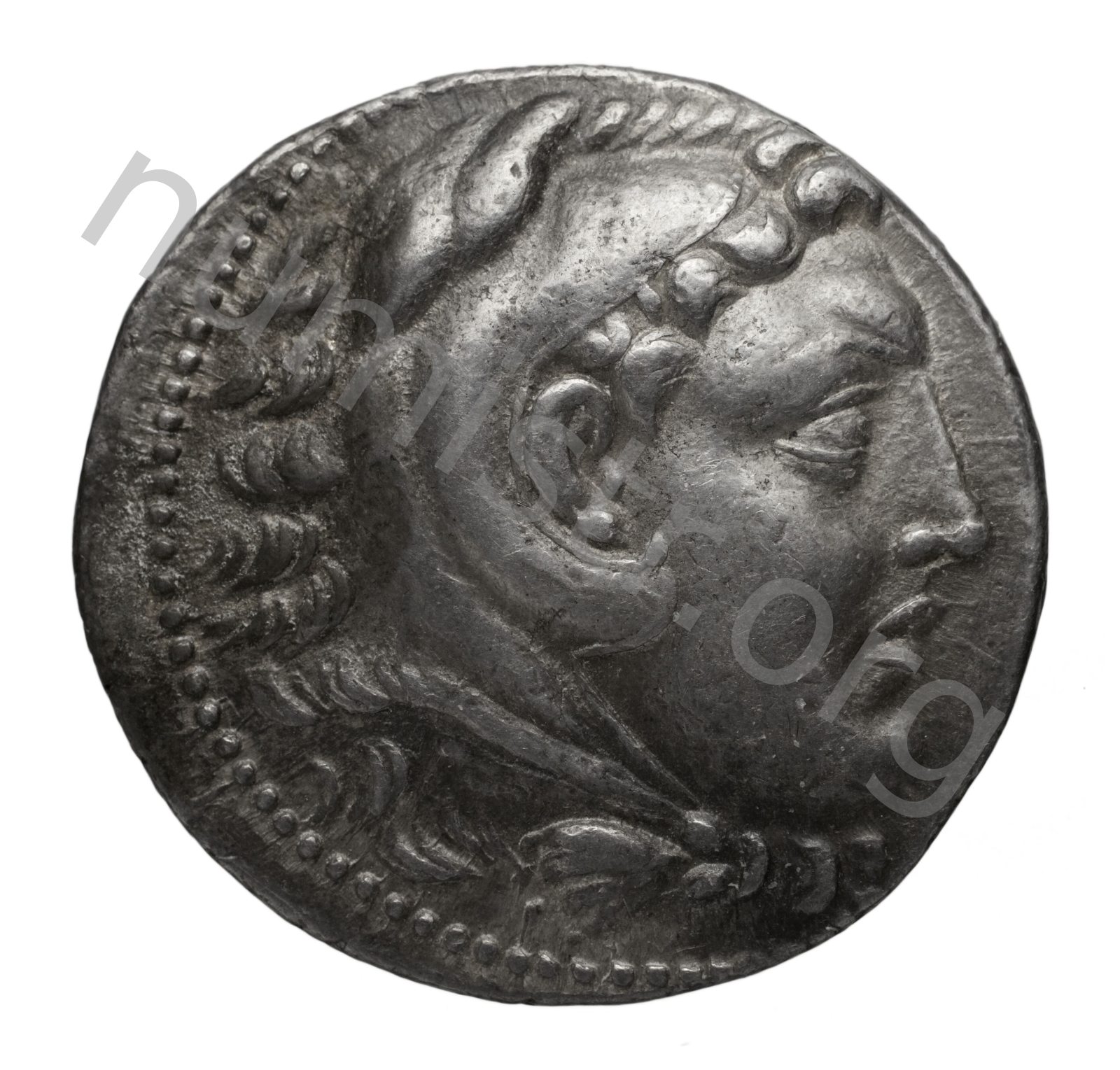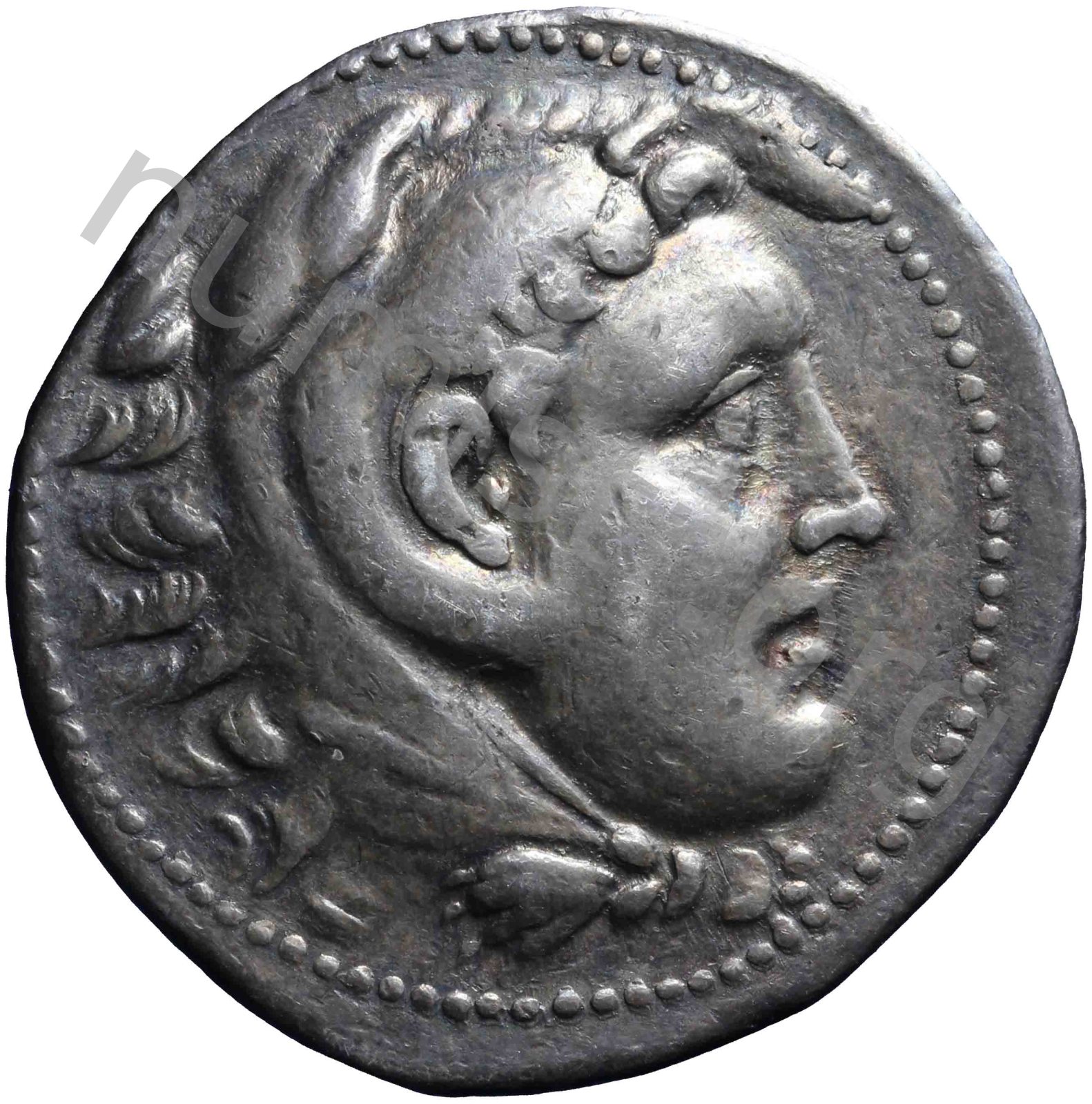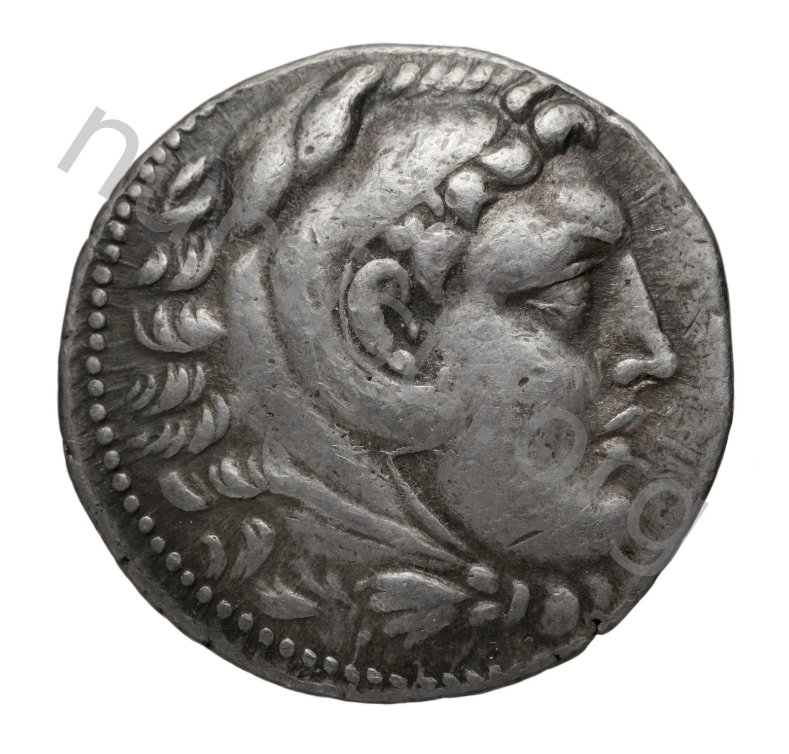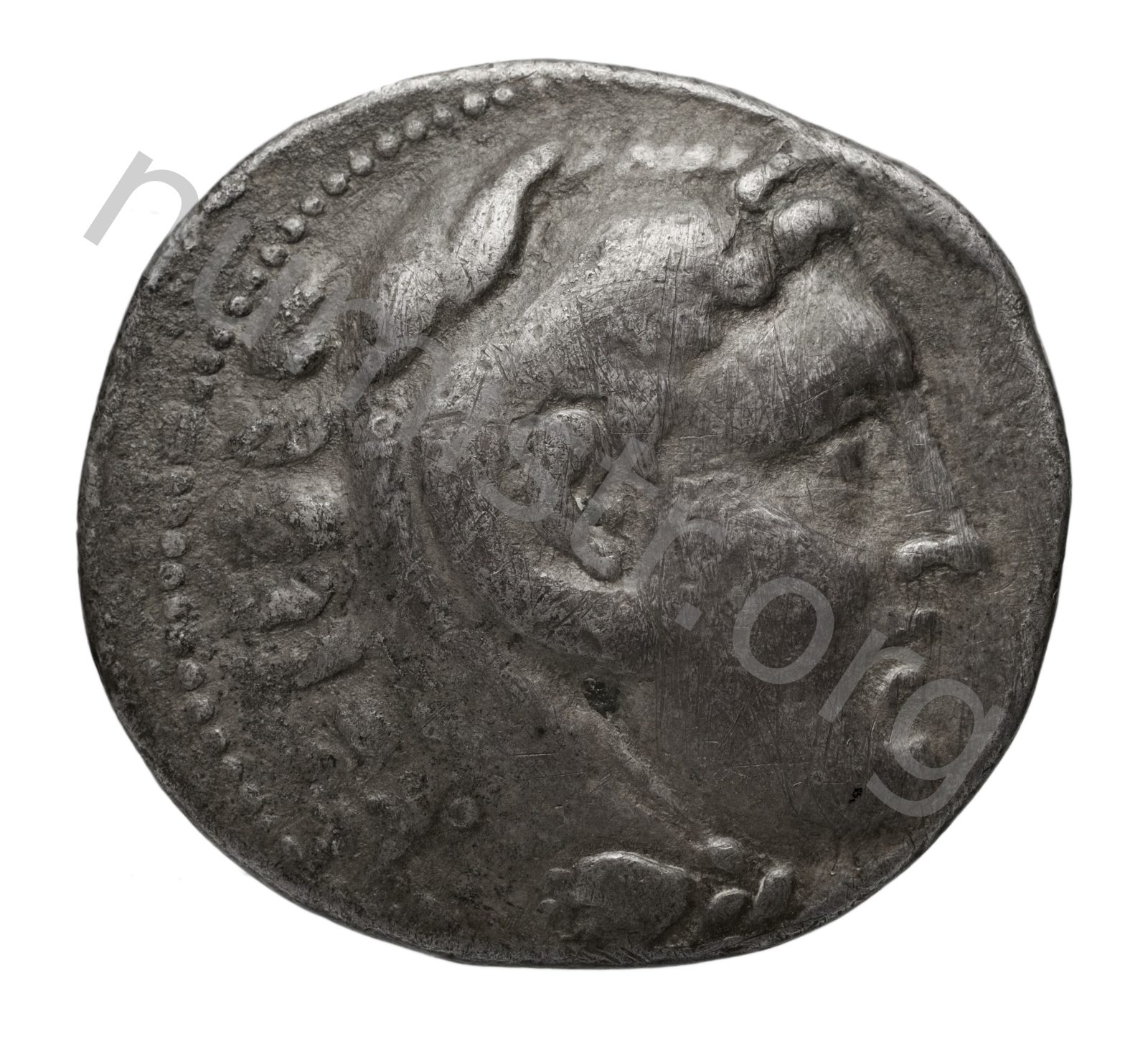 Head of beardless Heracles right wearing lion skin headdress -[en]