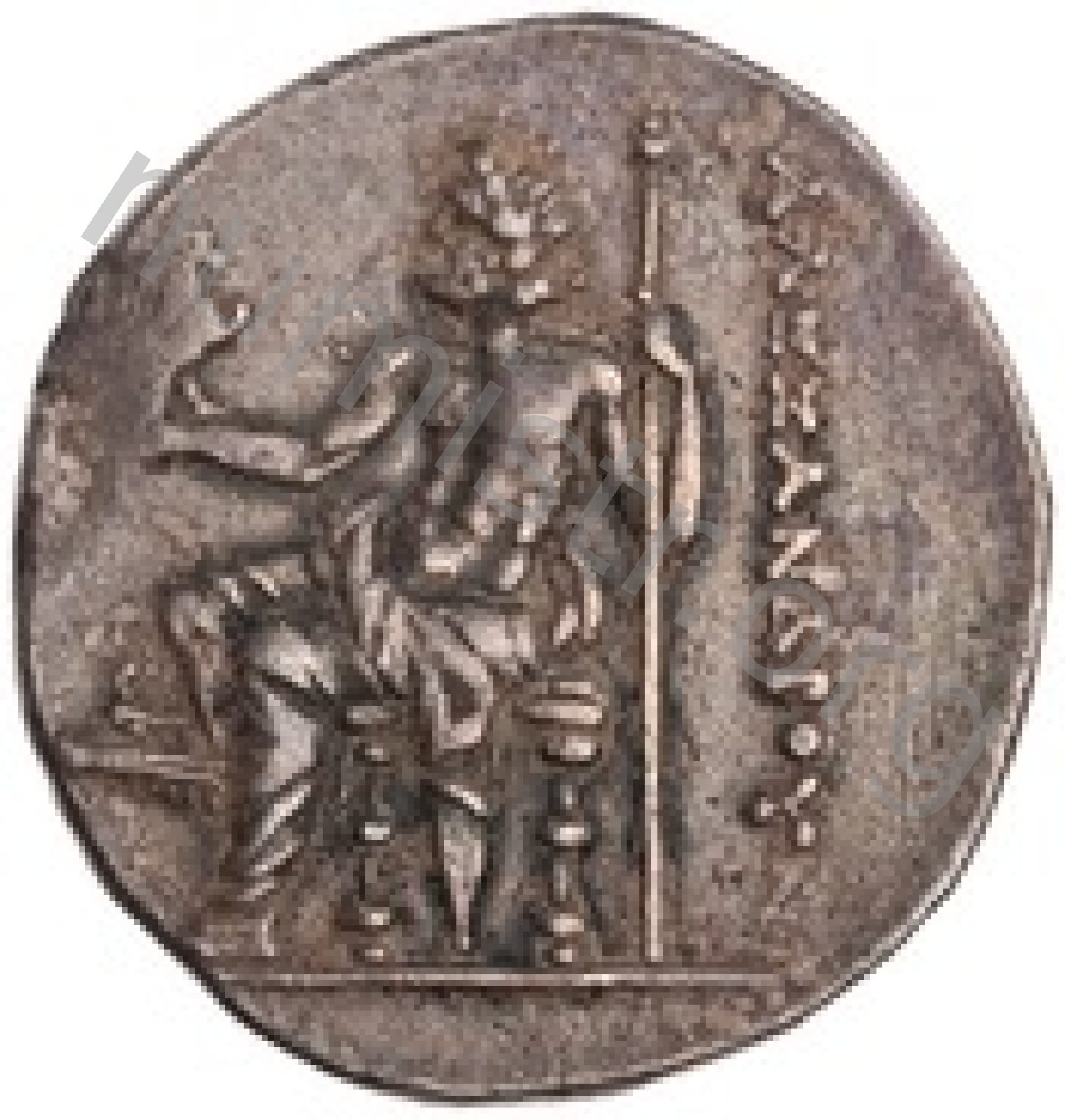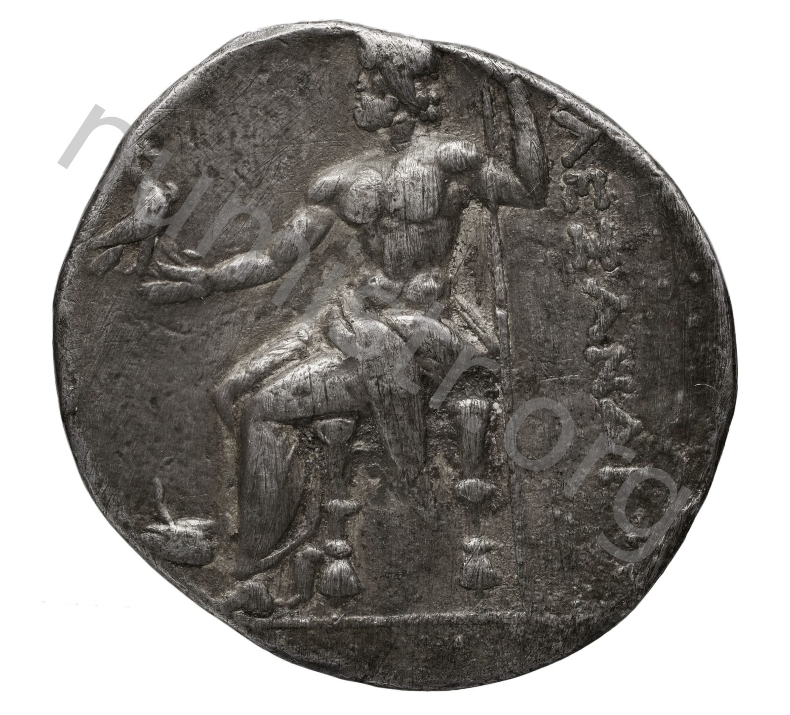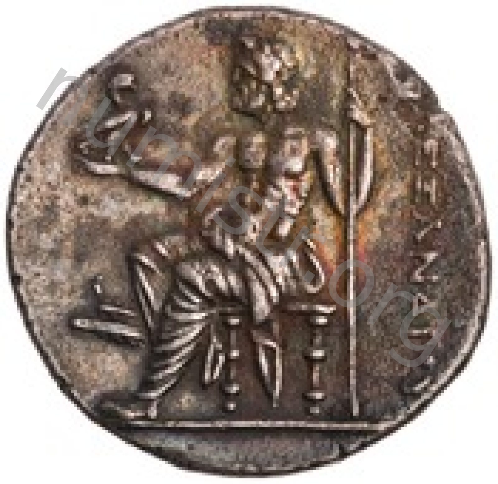 Zeus tabure-tahtta oturuyor sol elinde kartal sağ elinde asa var.