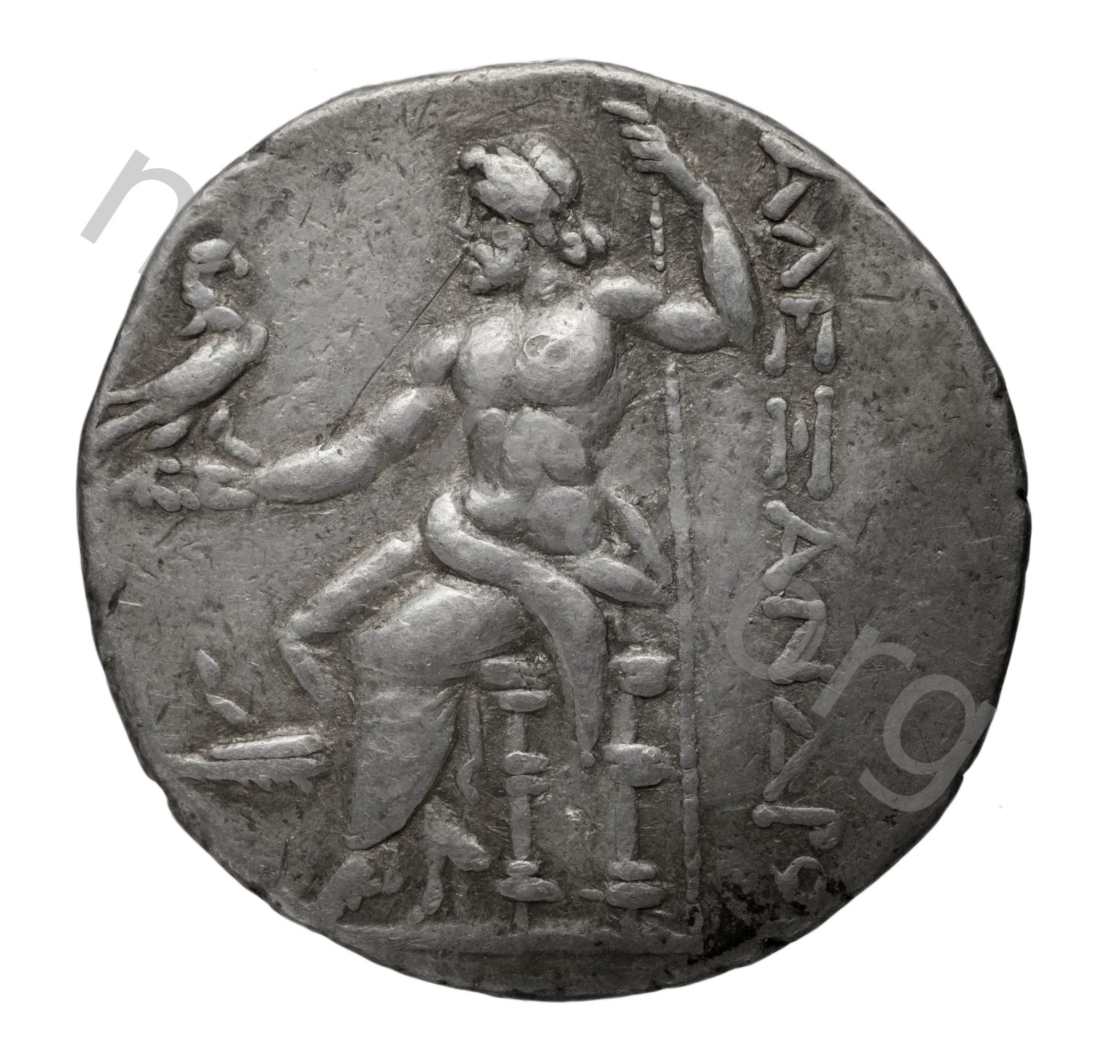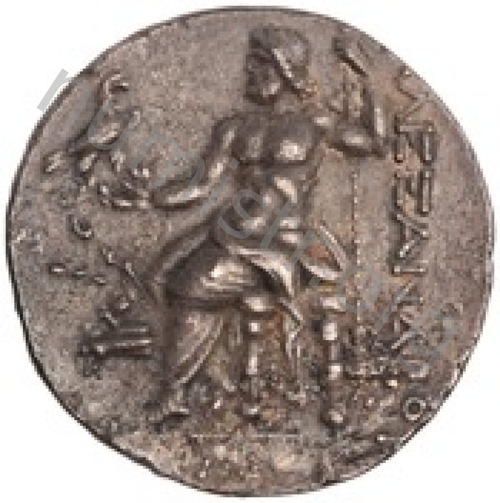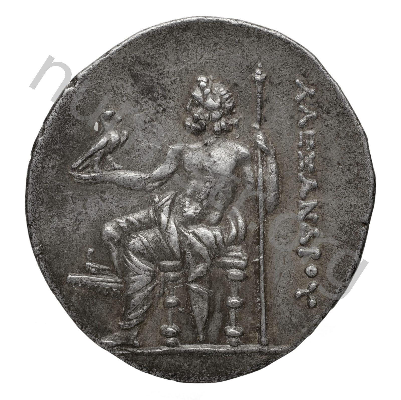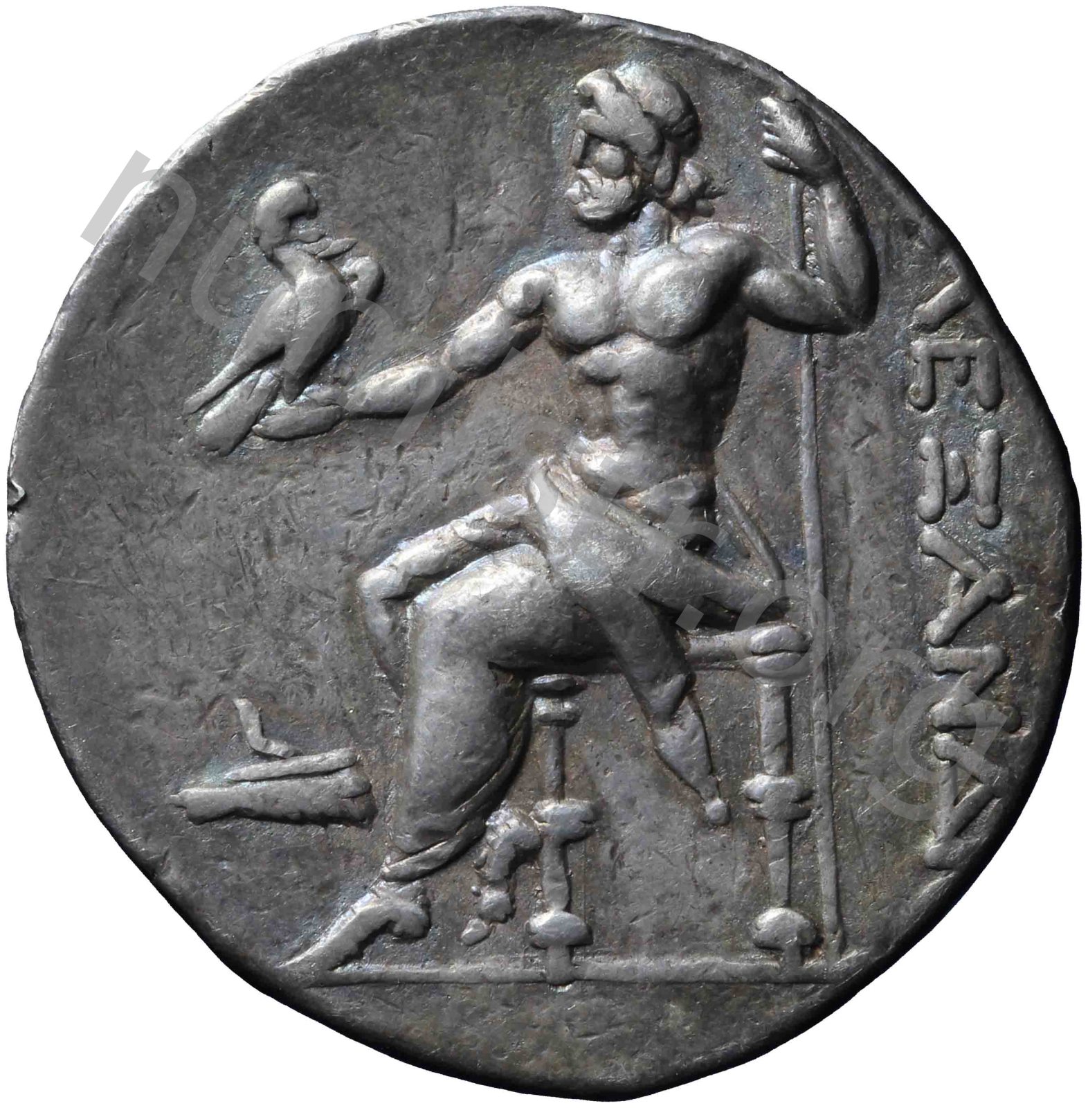 Zeus tabure-tahtta oturuyor sol elinde kartal sağ elinde asa var.
