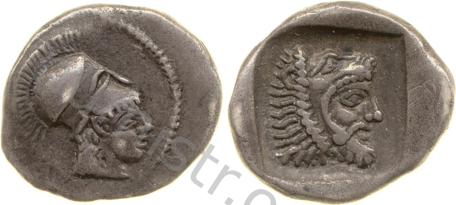 Head of Heracles wearing a lion skin in a square incuse -[en]