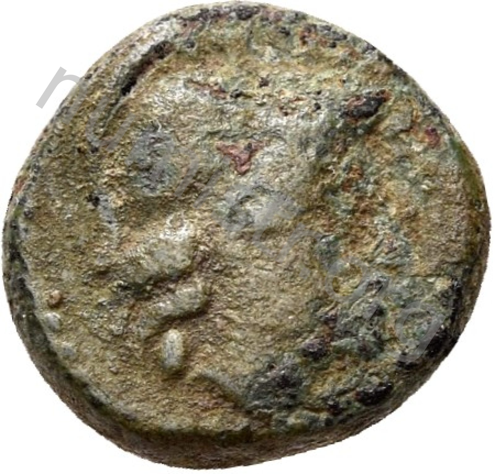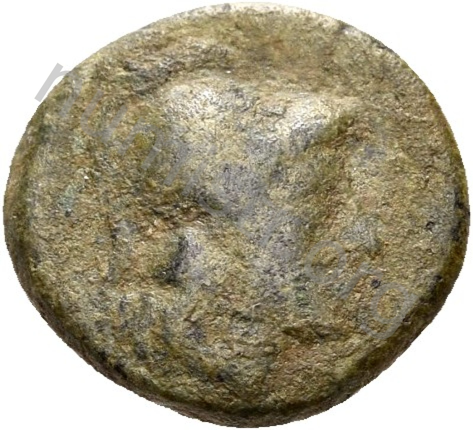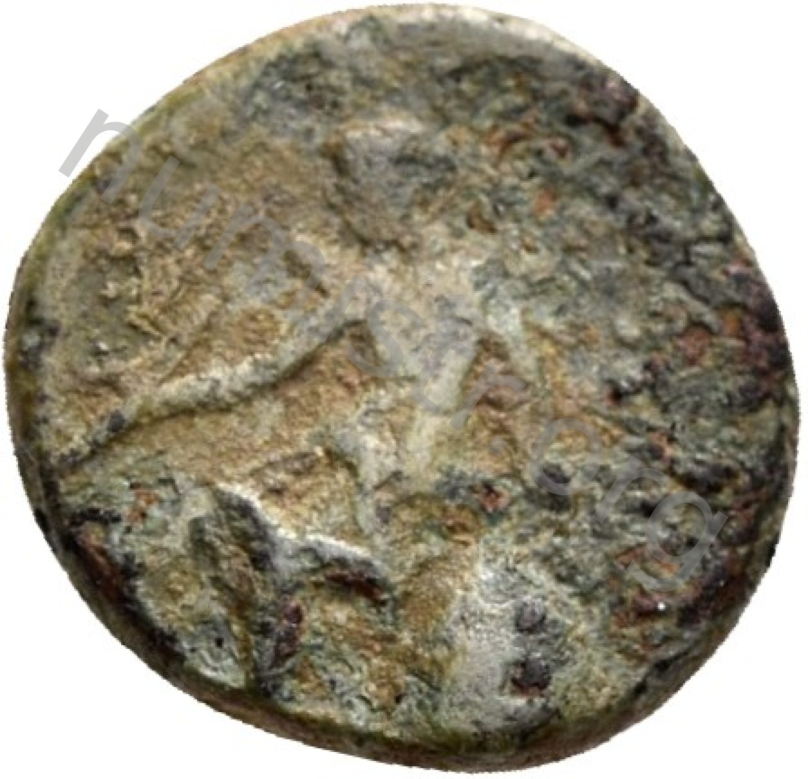 Omfalos üzerinde oturan ok tutan ve yaya yaslanan Apollon