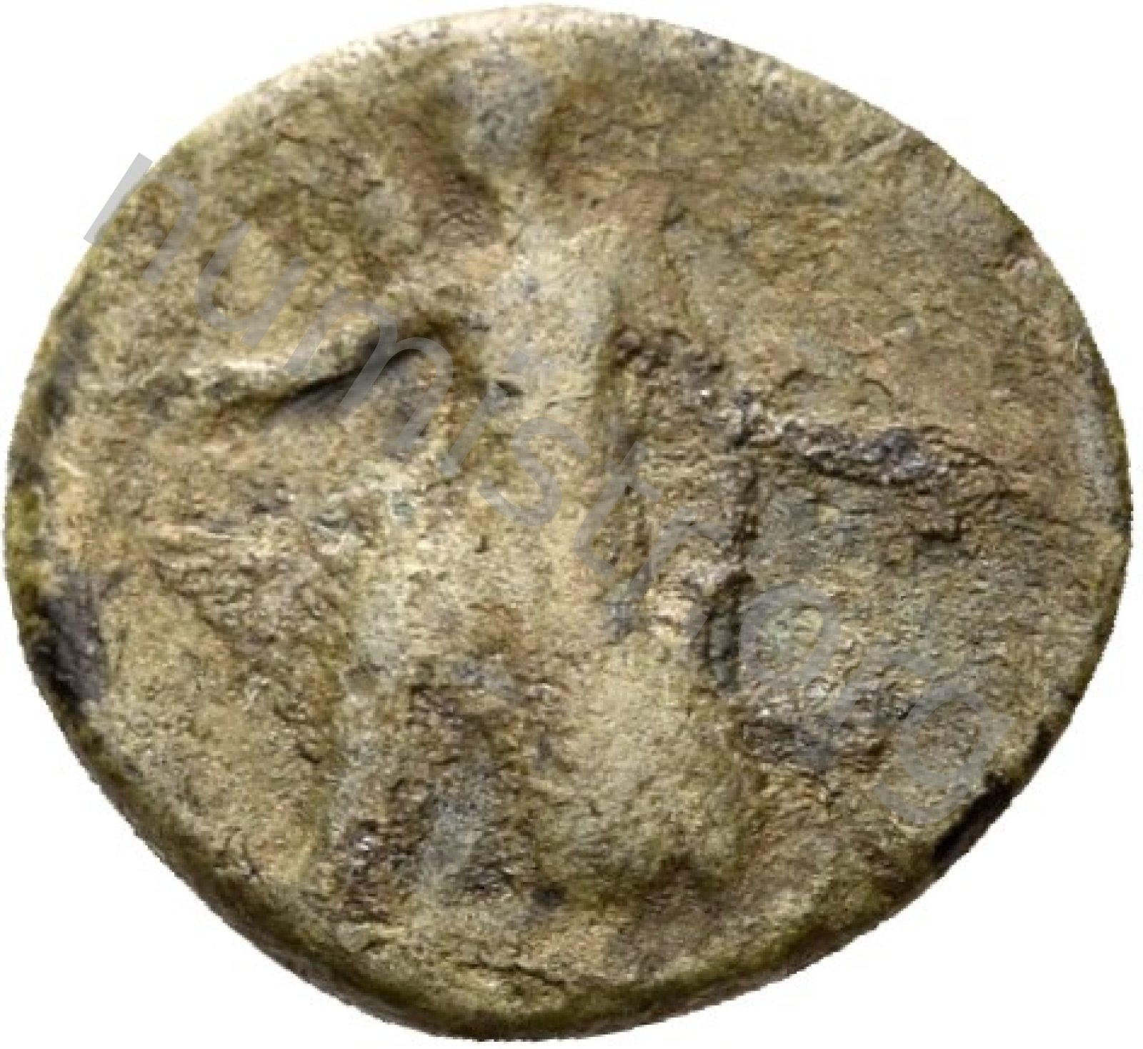 Apollo sitting on omphalos holding an arrow and leaning on bow -[en]