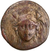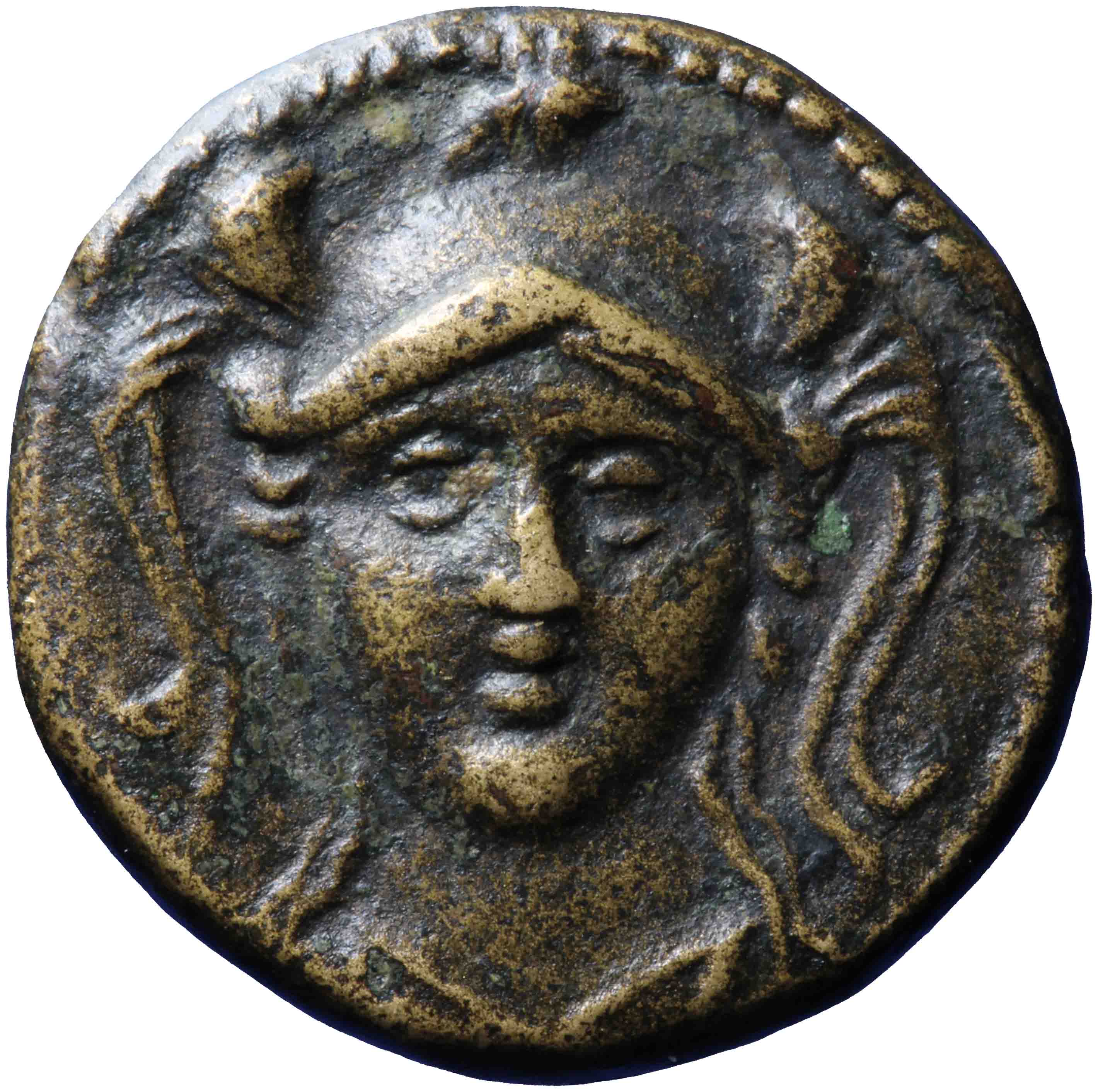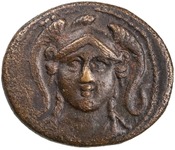 Facing bust of Athena in triple-crested helmet -[en]