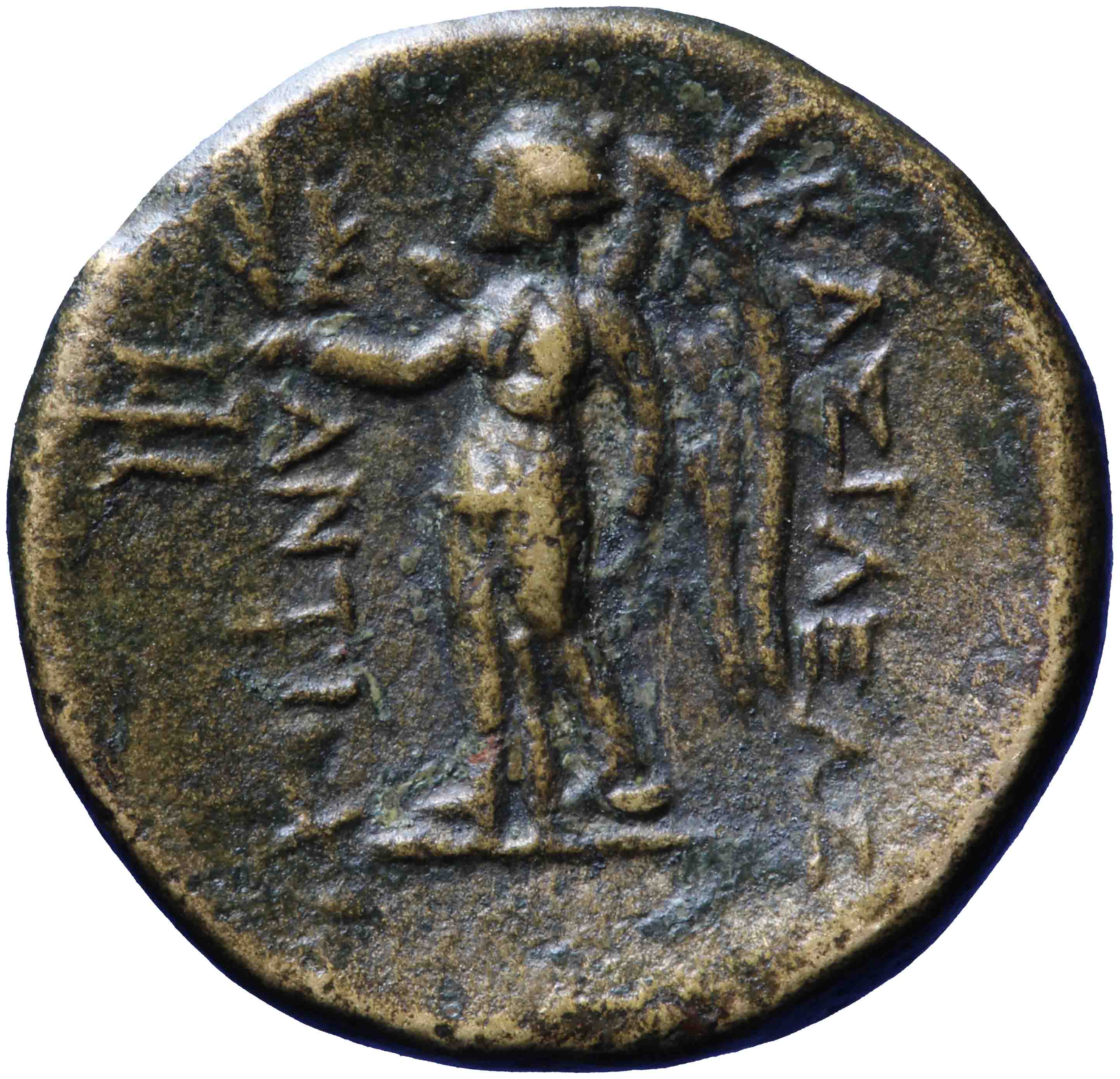 Nike standing left holding wreath and palm branch -[en]