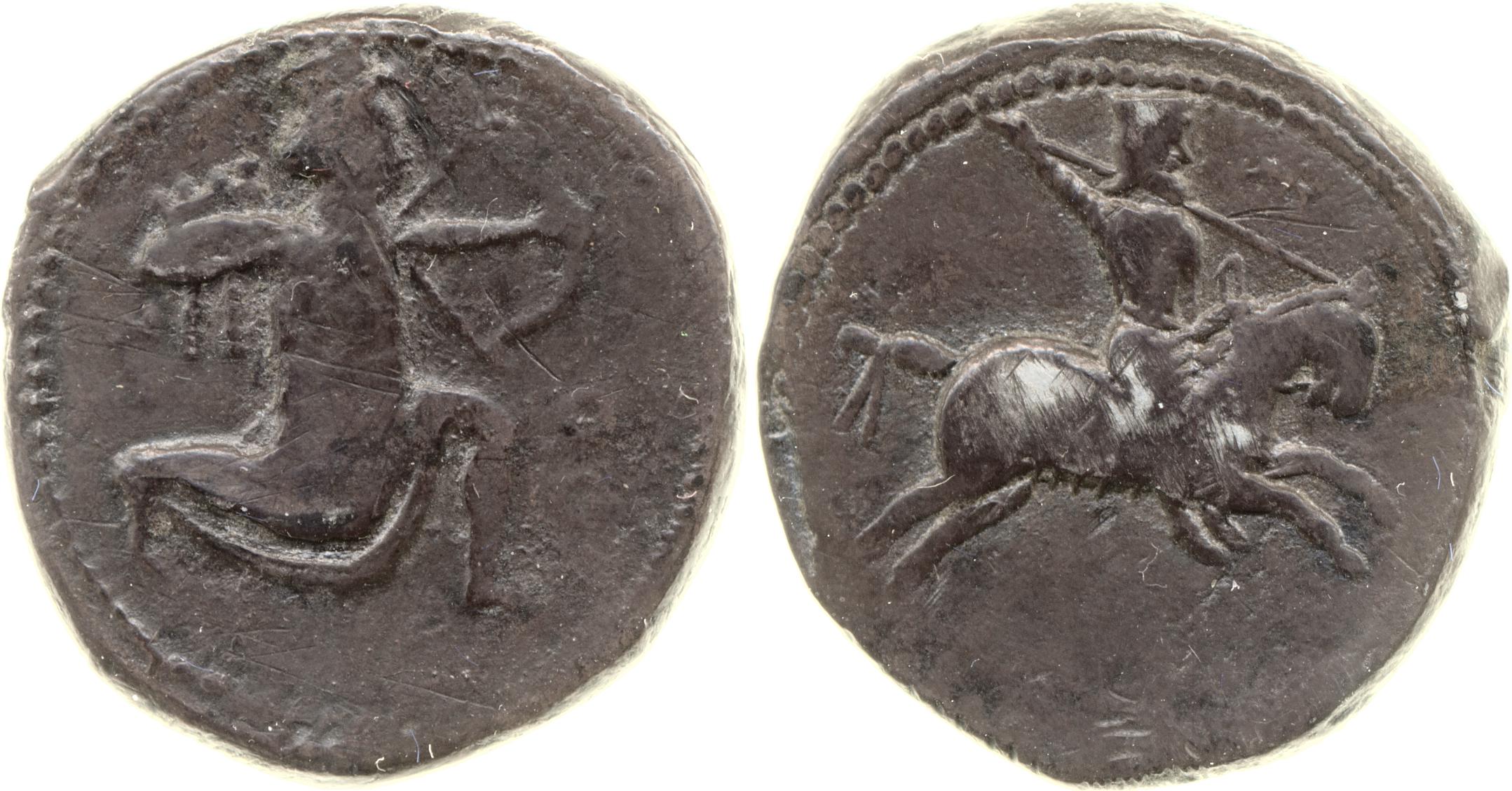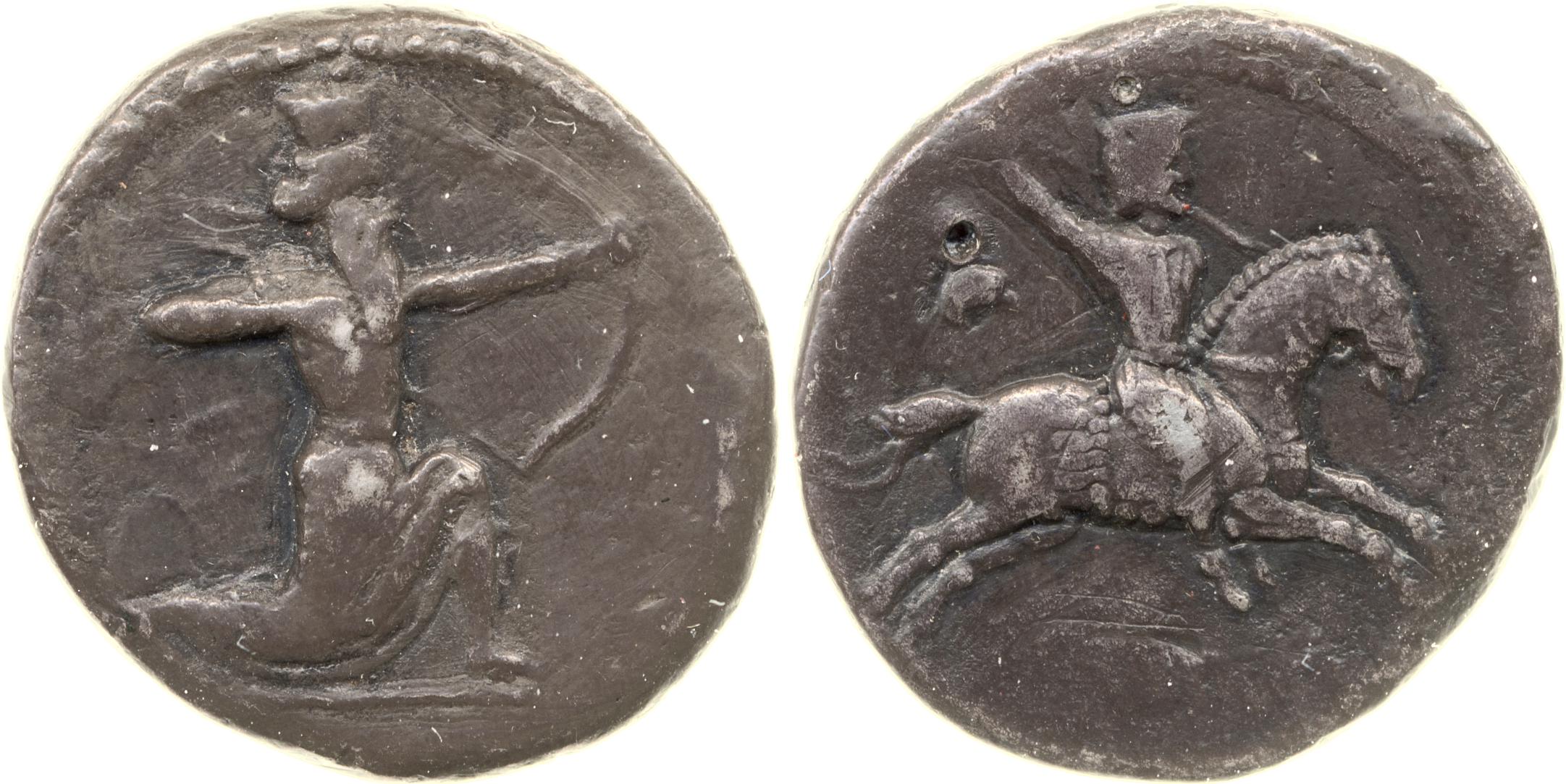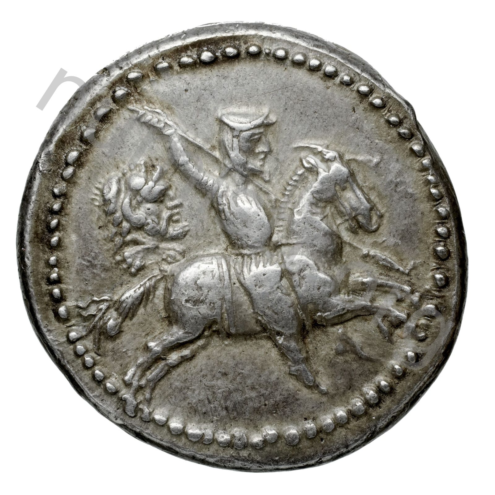 Horseman wearing a satrapal cap and a tunic brandishing a spear -[en]